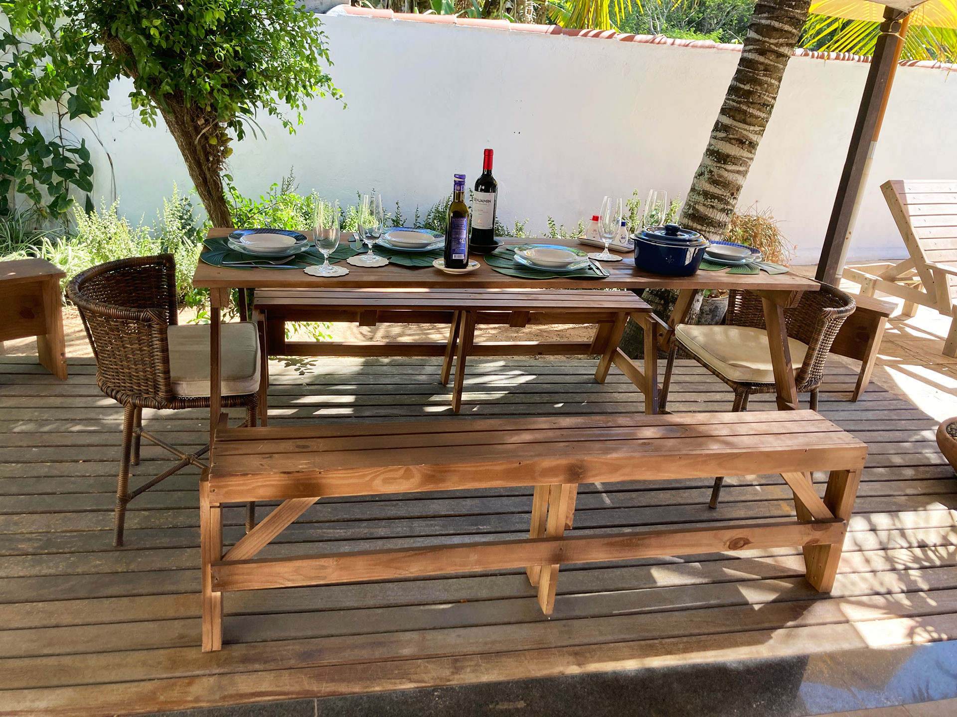 - Bela varanda com mesa e 2 cadeiras de vime