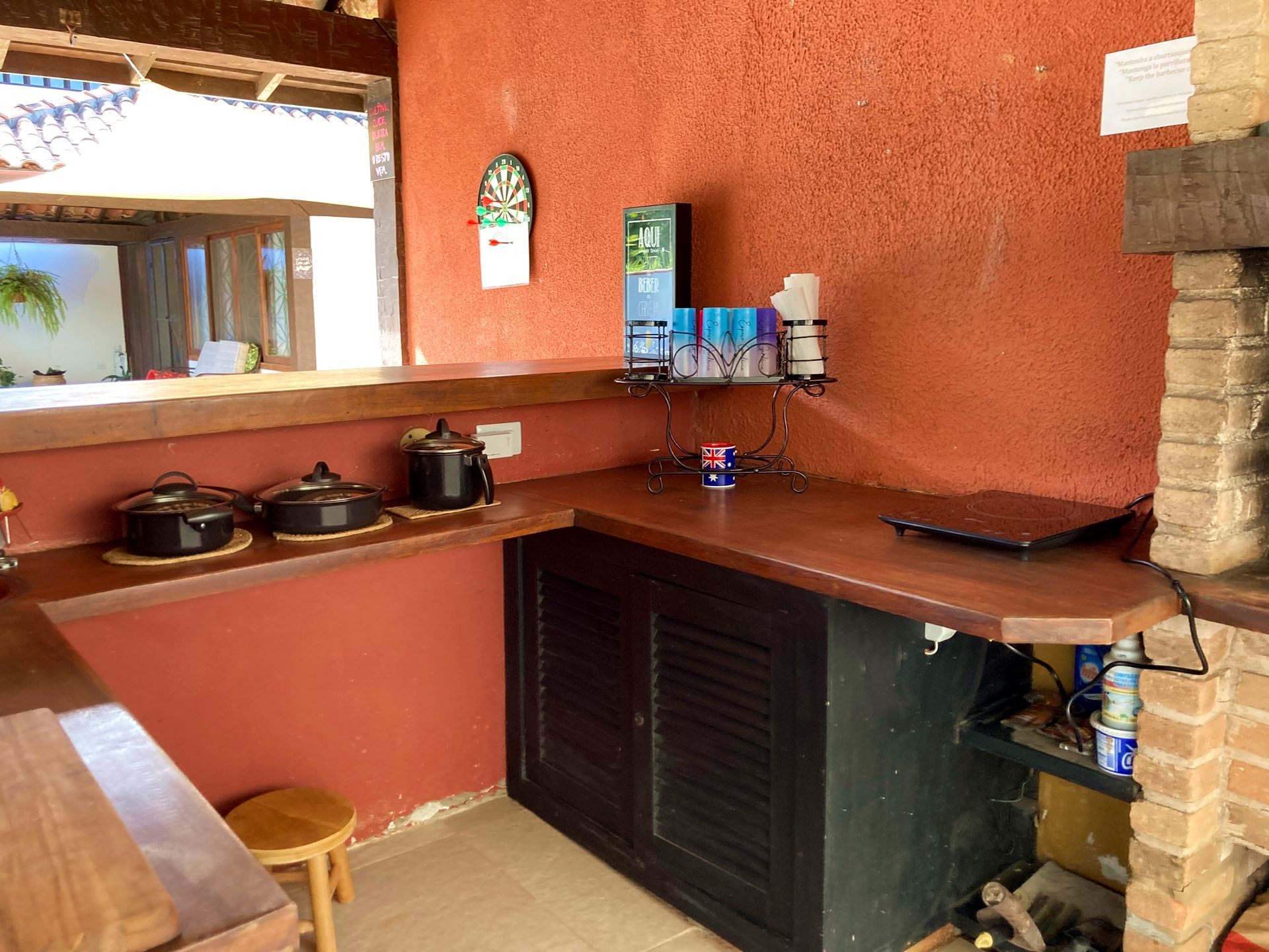 - Balcão para refeição com 2 bancos e banco fixo na parede para 3 pessoas