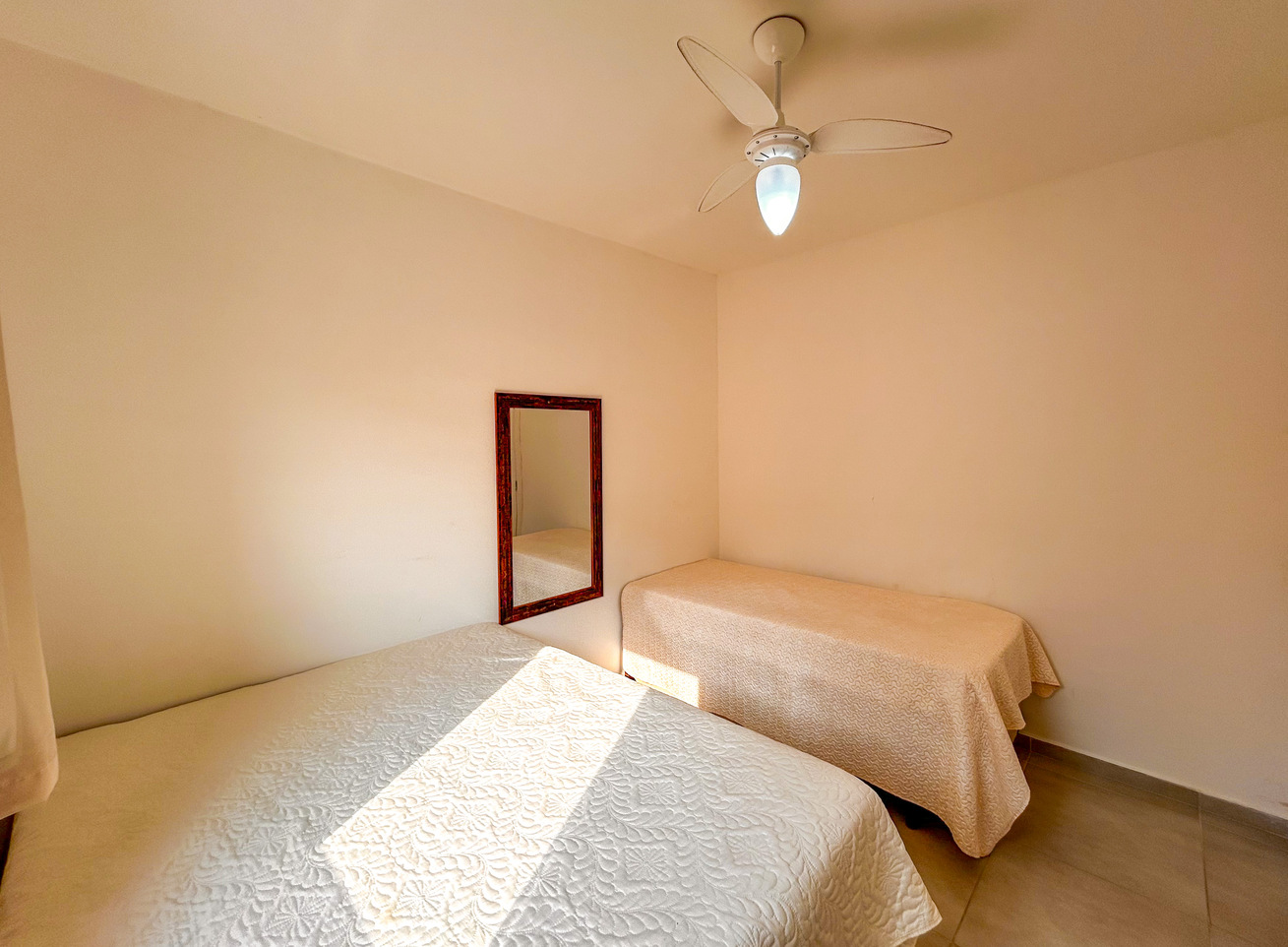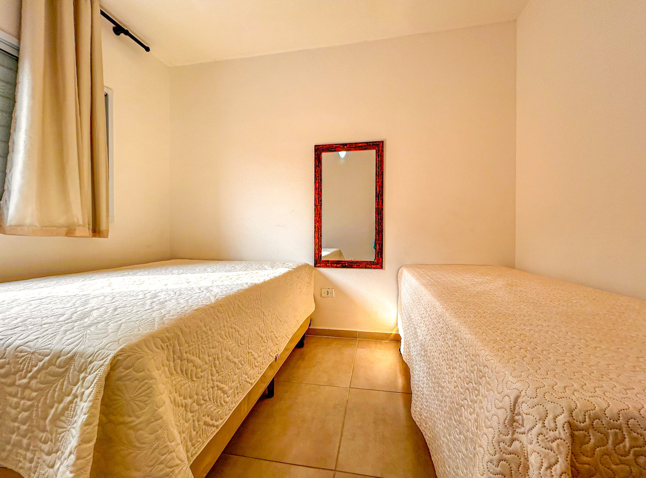- No quarto 2 há 1 cama de casal, 1 cama de solteiro e 1 colchão extra de solteiro
