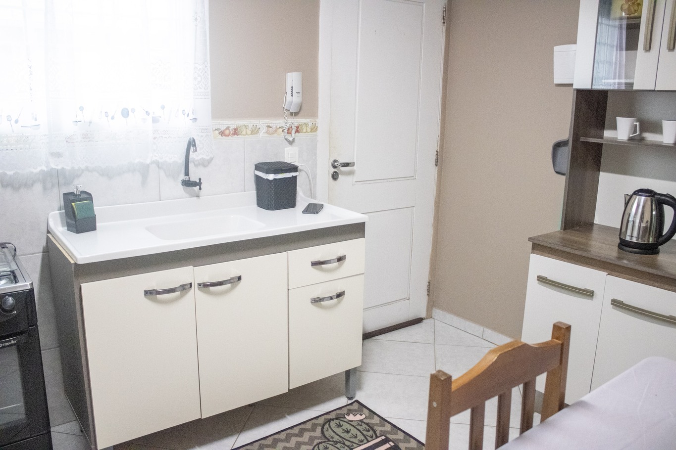 - A cozinha é equipada com diversos utensílios necessários para preparar deliciosos pratos, incluindo fritadeira, fogão, geladeira, chaleira elétrica e micro-ondas (exceto sal, pimenta e óleo)