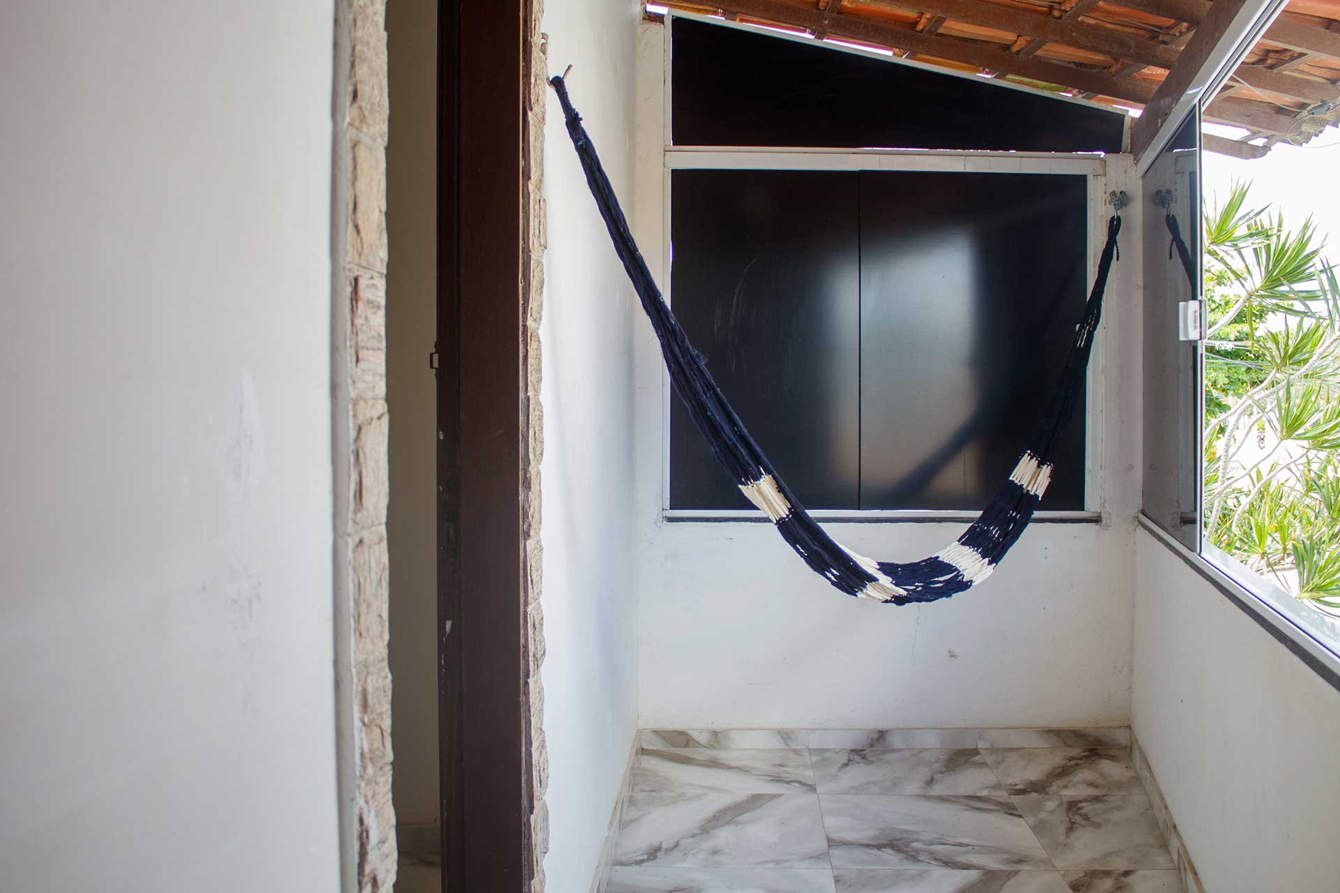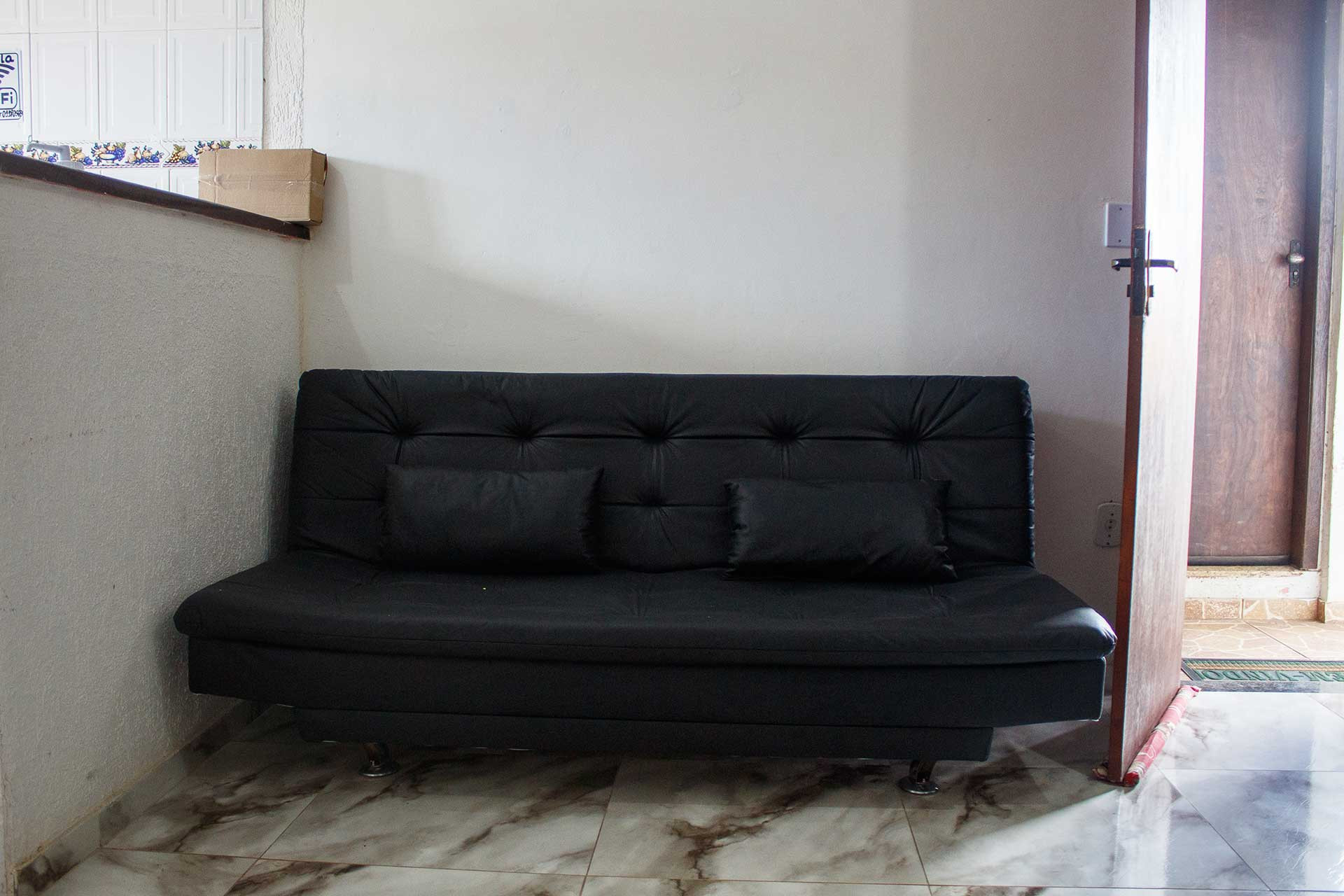 - Na sala você encontra cadeira e sofá-cama