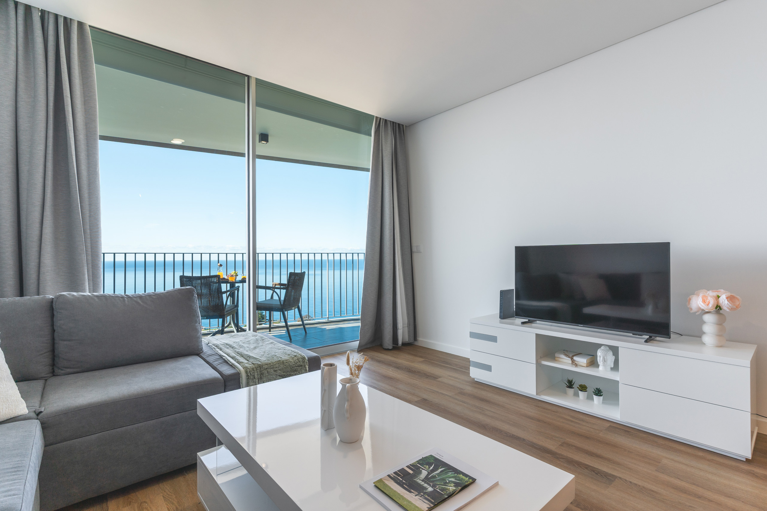 Acomodação de 100 m² acolhedor e moderno, com vistas para o mar.