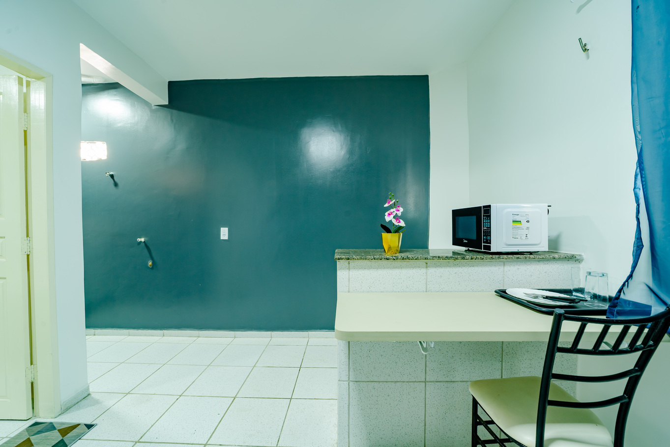 - Cozinha compacta com microondas, pratos, copos e talheres. Não disponibilizamos óleo e sal