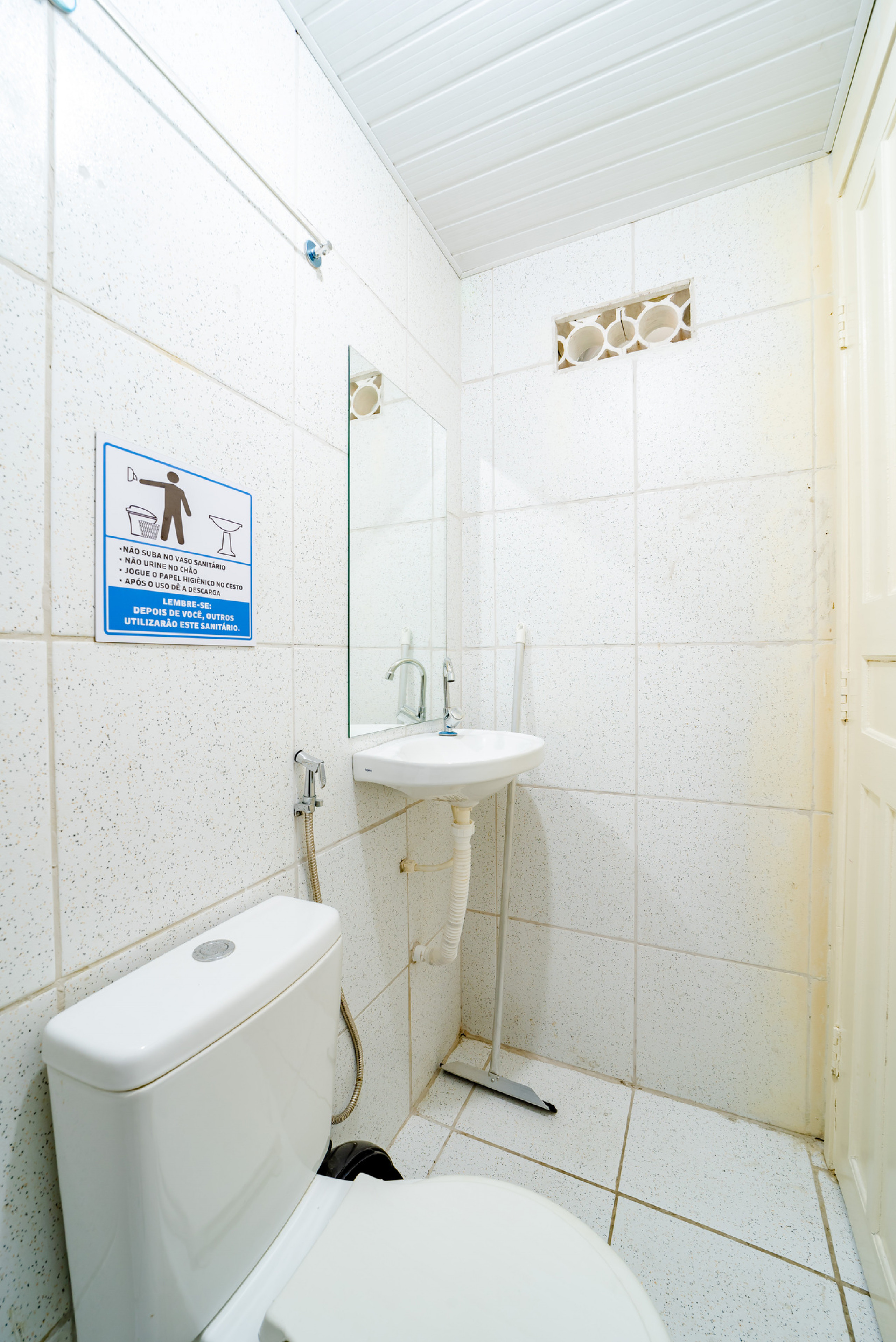 - Banheiro com chuveiro frio, pia e espelho