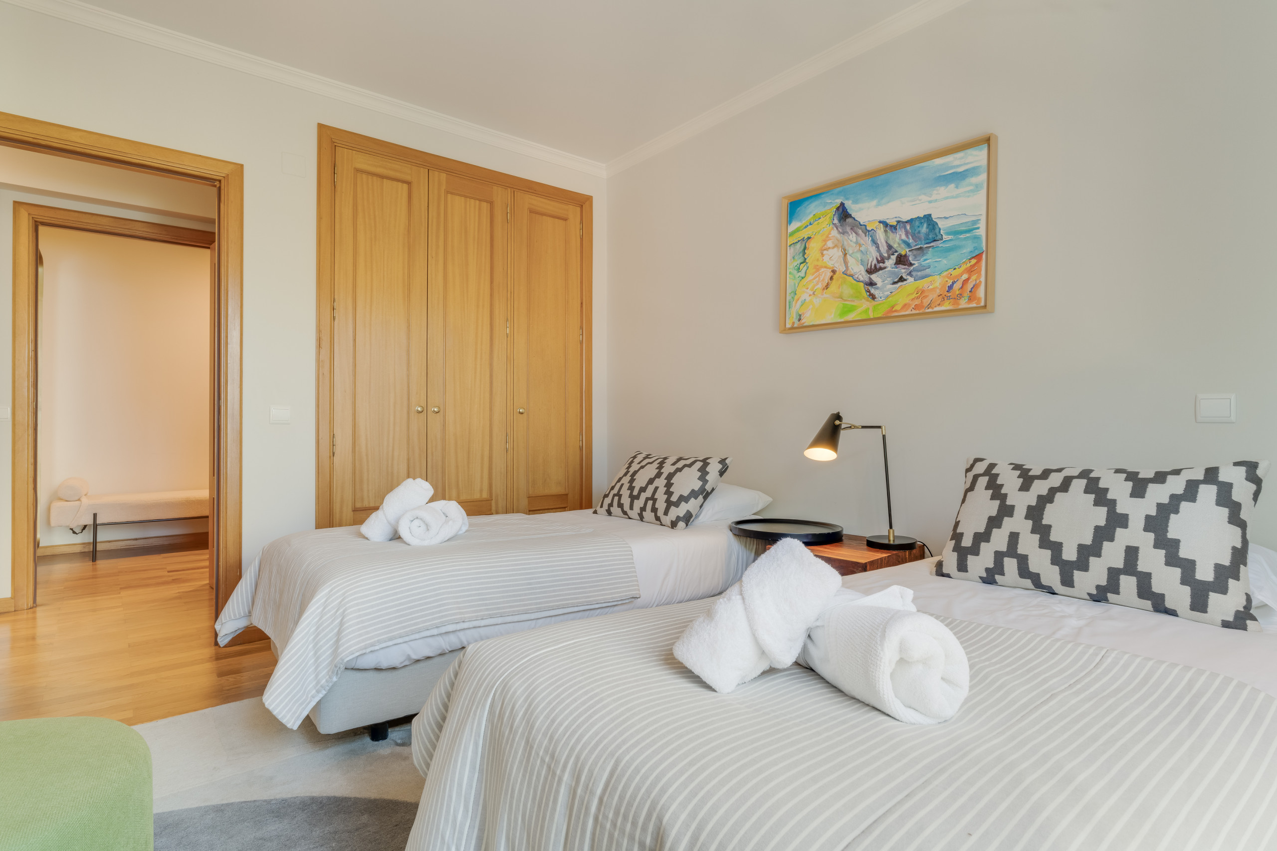 O ‘’Apartamento Elena’’ foi totalmente remodelado para um estilo mais moderno e acolhedor. Está situado no terceiro andar(possui elevador) e é composto por um Quarto de casal com casa de banho privada, um Quarto com duas camas de solteiro e um quarto com um sofá cama muito confortável. Todos os quartos possuem o seu próprio guarda-roupa. Para além da casa de banho privada, tem também uma casa de banho comum com chuveiro. Tem também um secador de cabelo. A sala de estar é composta por uma TV moderna, uma box com diversos canais de televisão ao seu dispor e Internet WiFi rápida com 200Mbps.