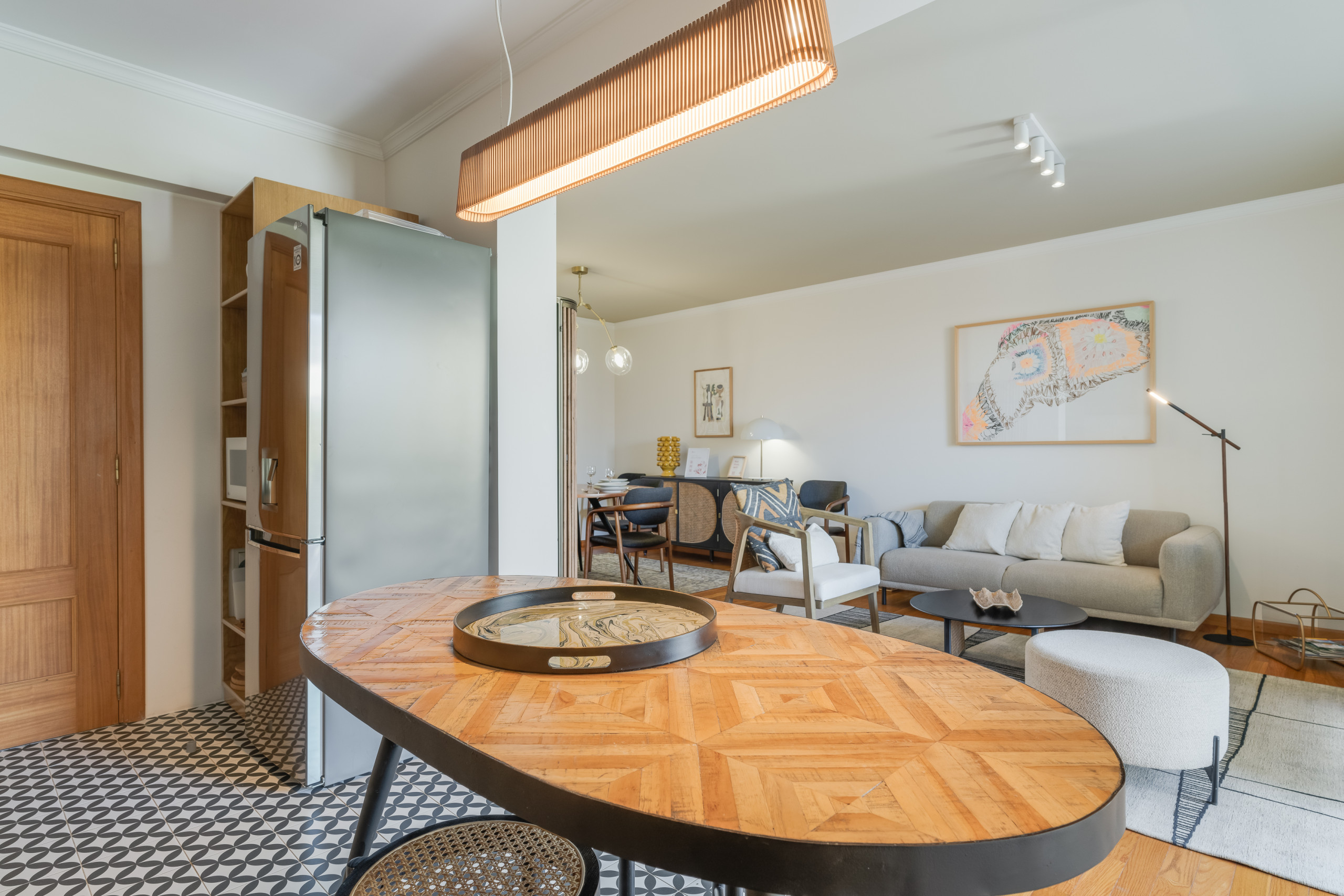 Ao lado da cozinha temos também uma Lavandaria, com a máquina de lavar roupa, Ferro de engomar e um estendal.