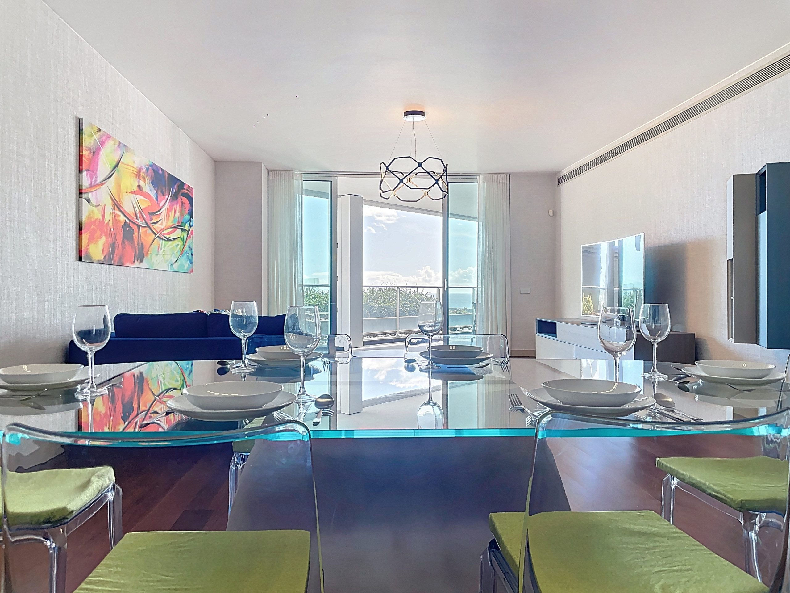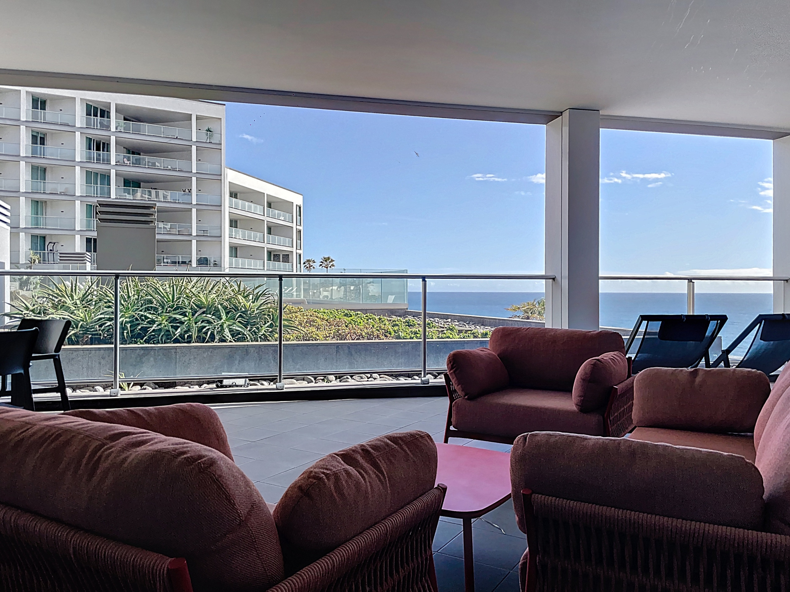 Acomodação de 130 m² acolhedor e moderno, com vistas para o mar e jardim.