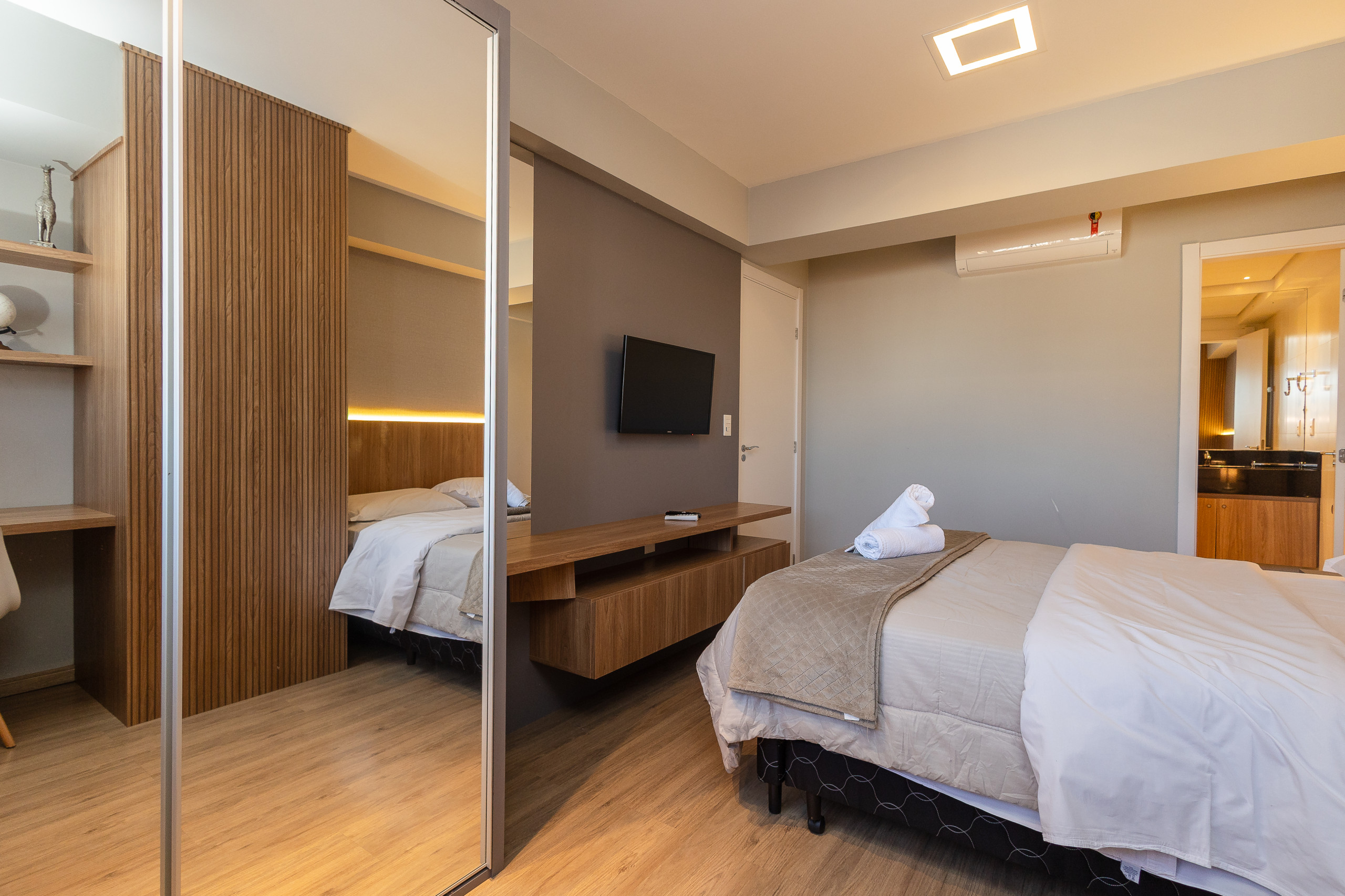 2 suítes, lavabo. Todos os ambientes são equipados com smart TV e ar-condicionado quente/frio. Acomoda até 6 pessoas. Uma vaga de garagem. Imóvel muito bonito e confortável!