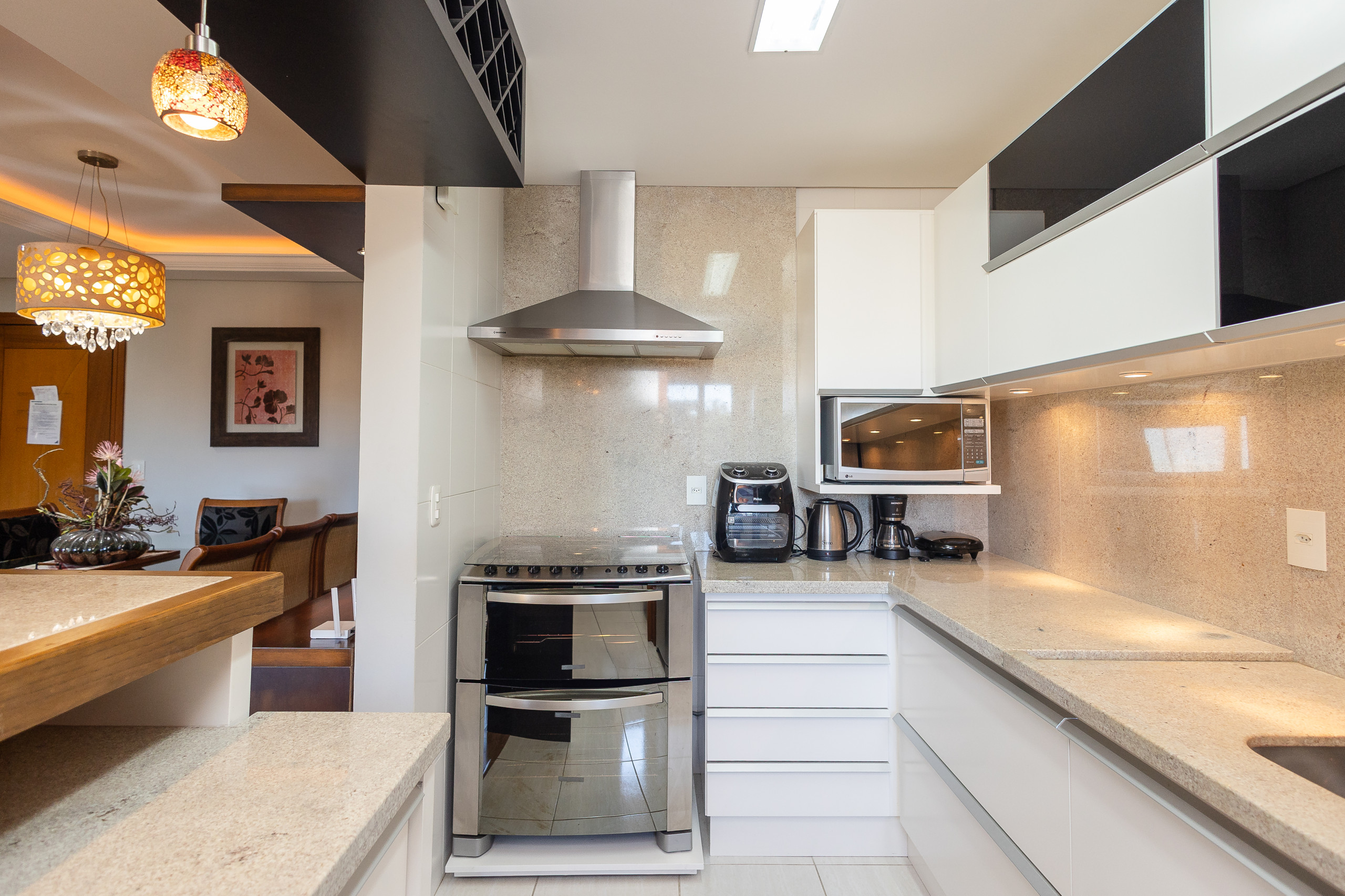 Na cozinha completa você terá a sua disposição lava louças, forno e fogão, geladeira com congelador, airfryer, sanduicheira e liquidificador!
