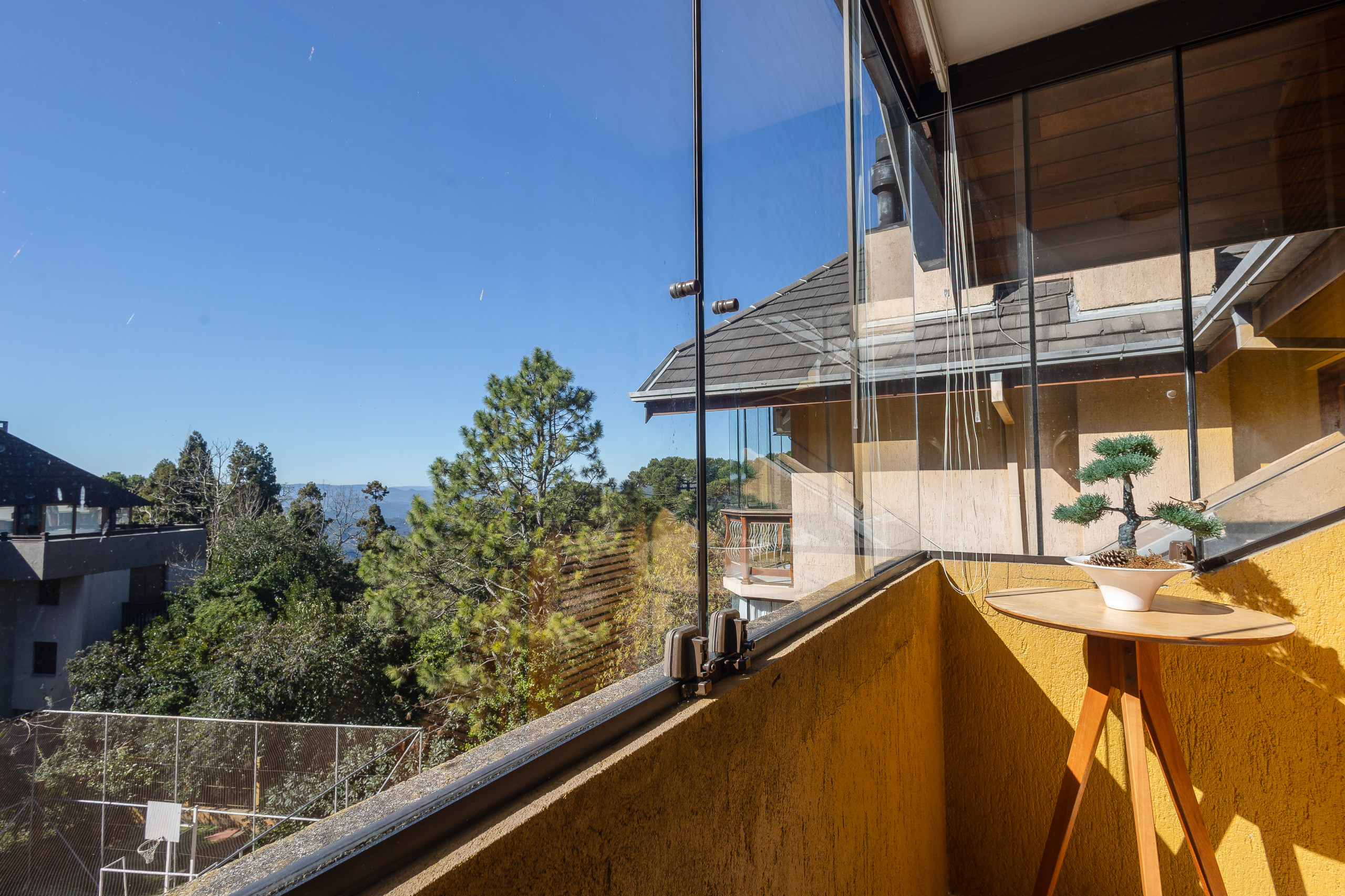 Aconchegante em todos sentidos, o apartamento conta com dois quartos, uma suíte e banheiro social completo! Na área social voce terá um espaçoso living com 3 ambientes (estar, jantar e cozinha) com varanda fechada, churrasqueira e lareira! Imagine apreciar de momentos com uma das melhores vistas do Vale do Quilombo!
