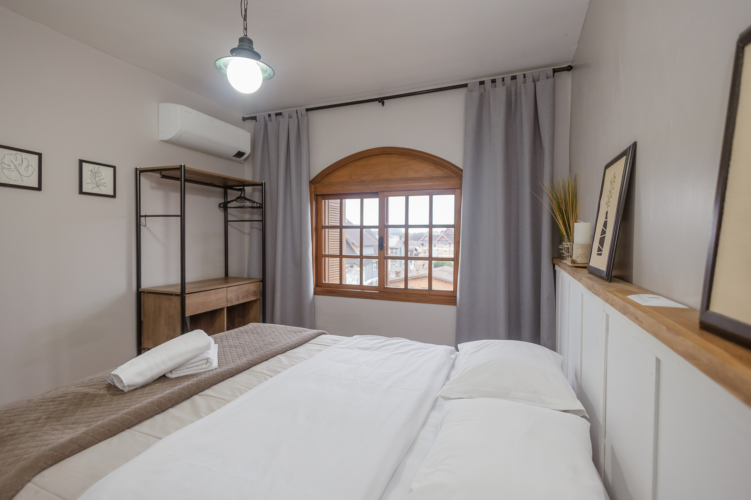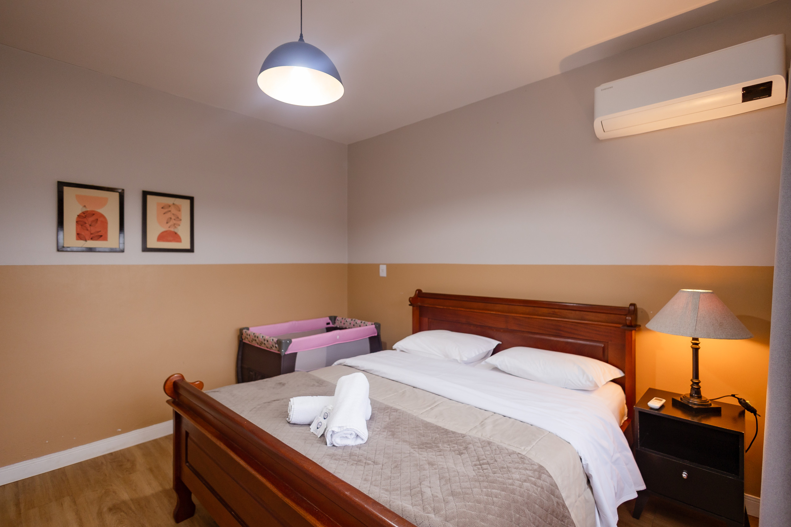 Para o conforto dos hóspedes, o apartamento possui ar-condicionado (Q/F) no living e nos dormitórios e uma aconchegante lareira para momentos especiais. A conexão Wi-Fi e uma TV garantem entretenimento durante a estadia.