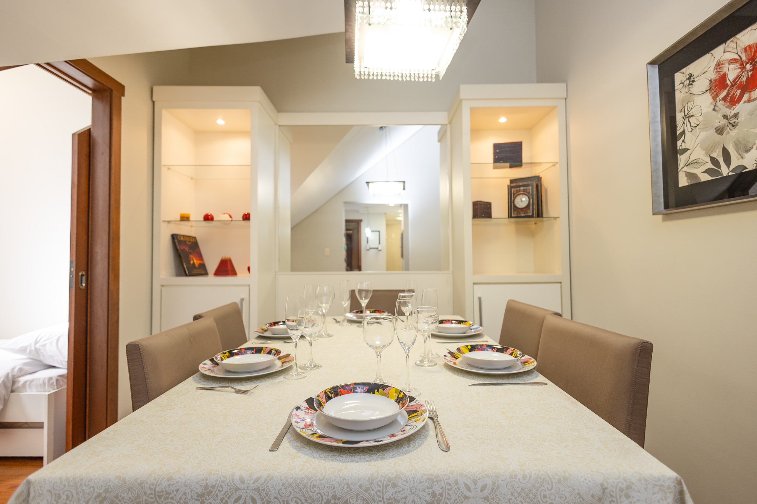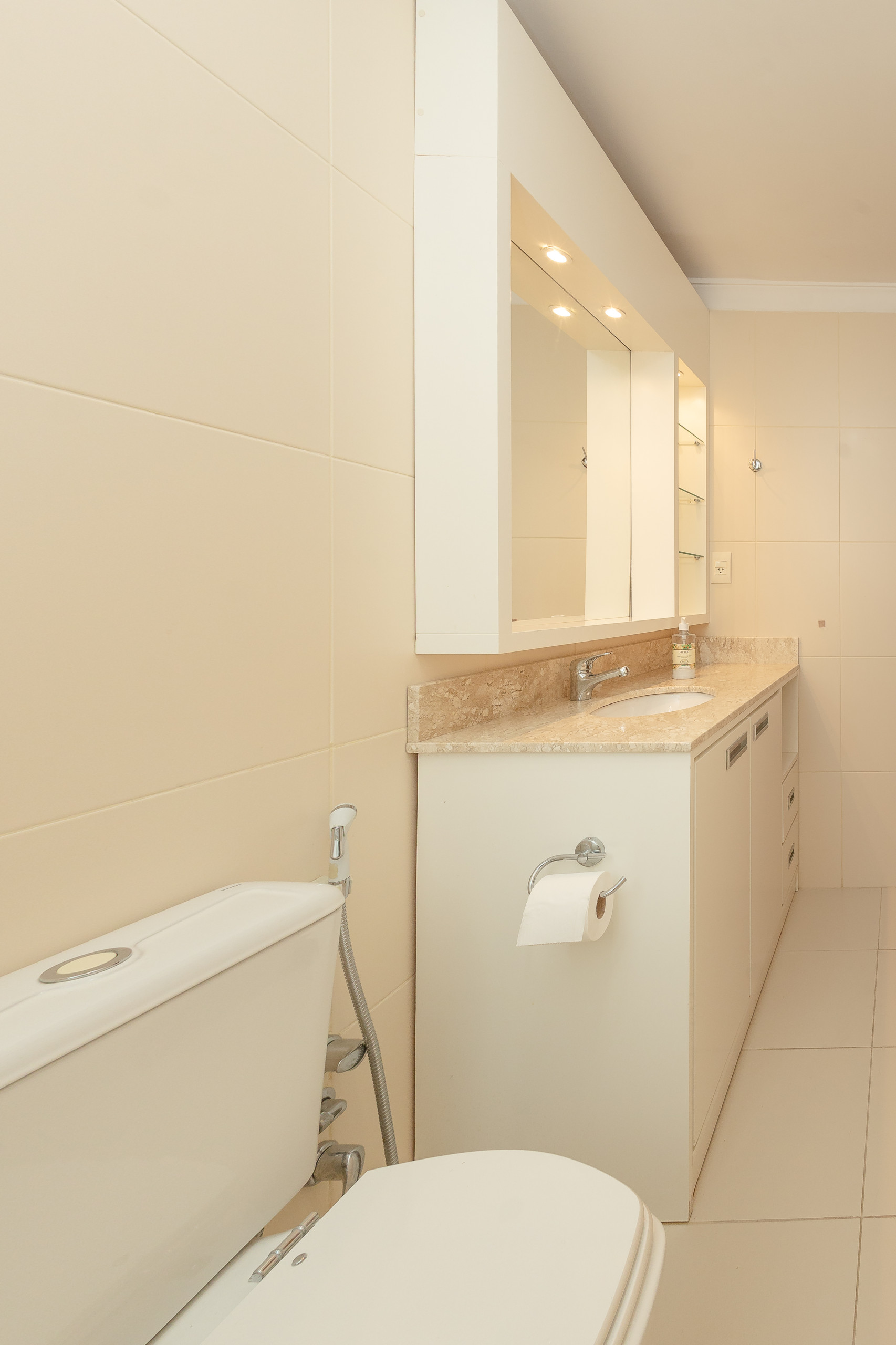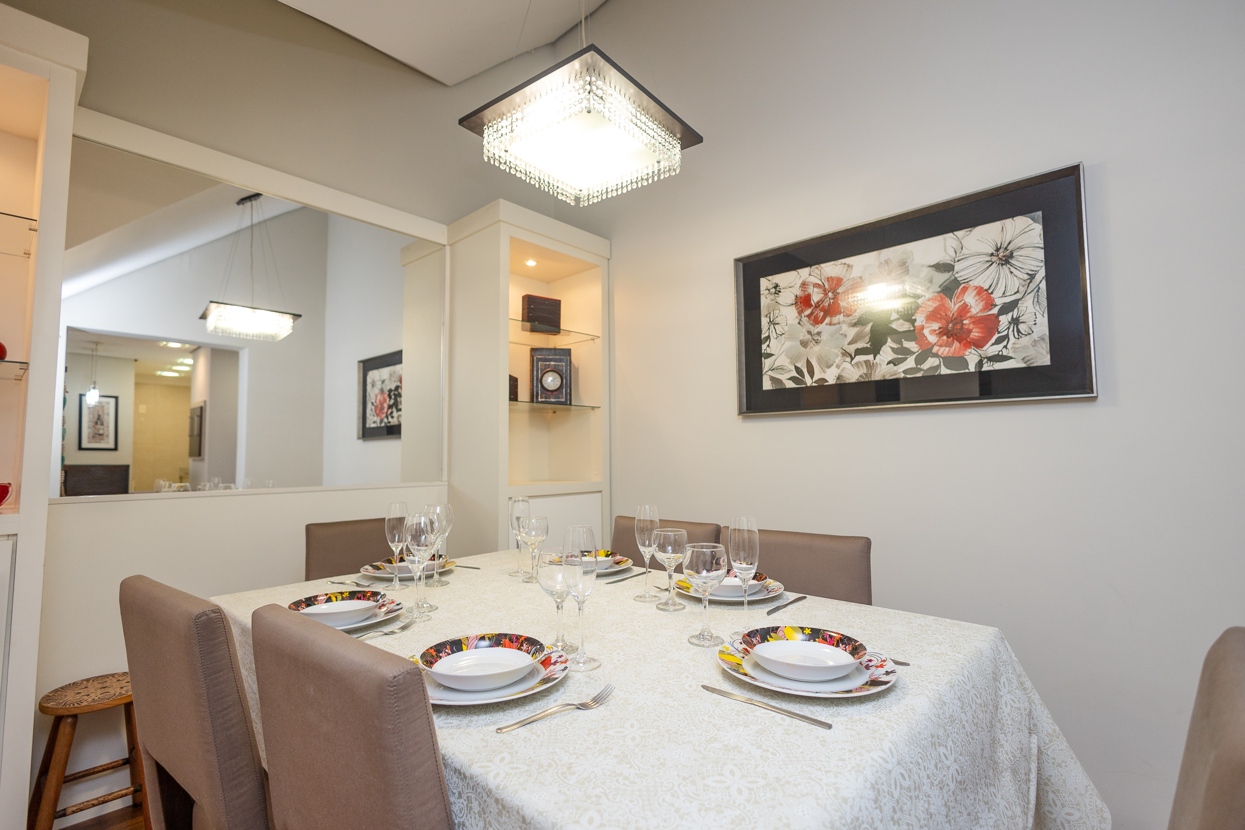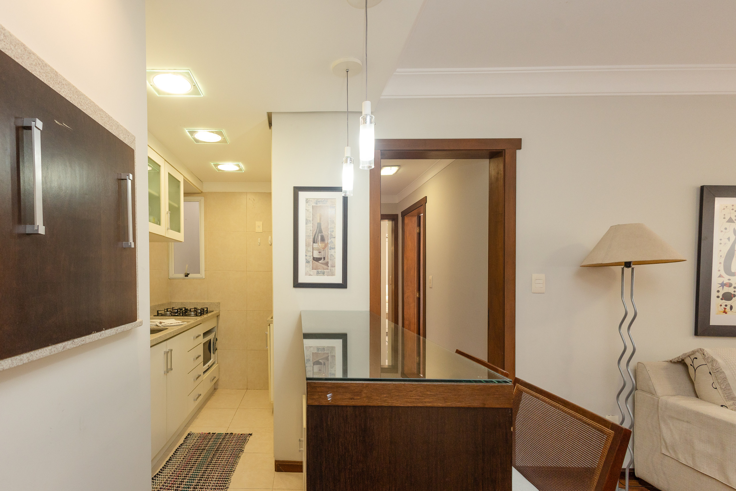 A cozinha americana, equipada com geladeira, freezer, fogão a gás, micro-ondas, cafeteira, utensílios e tudo o que você precisa para preparar refeições, facilita o dia a dia. O apartamento também conta com Wi-Fi, TV e ferro de passar roupa.