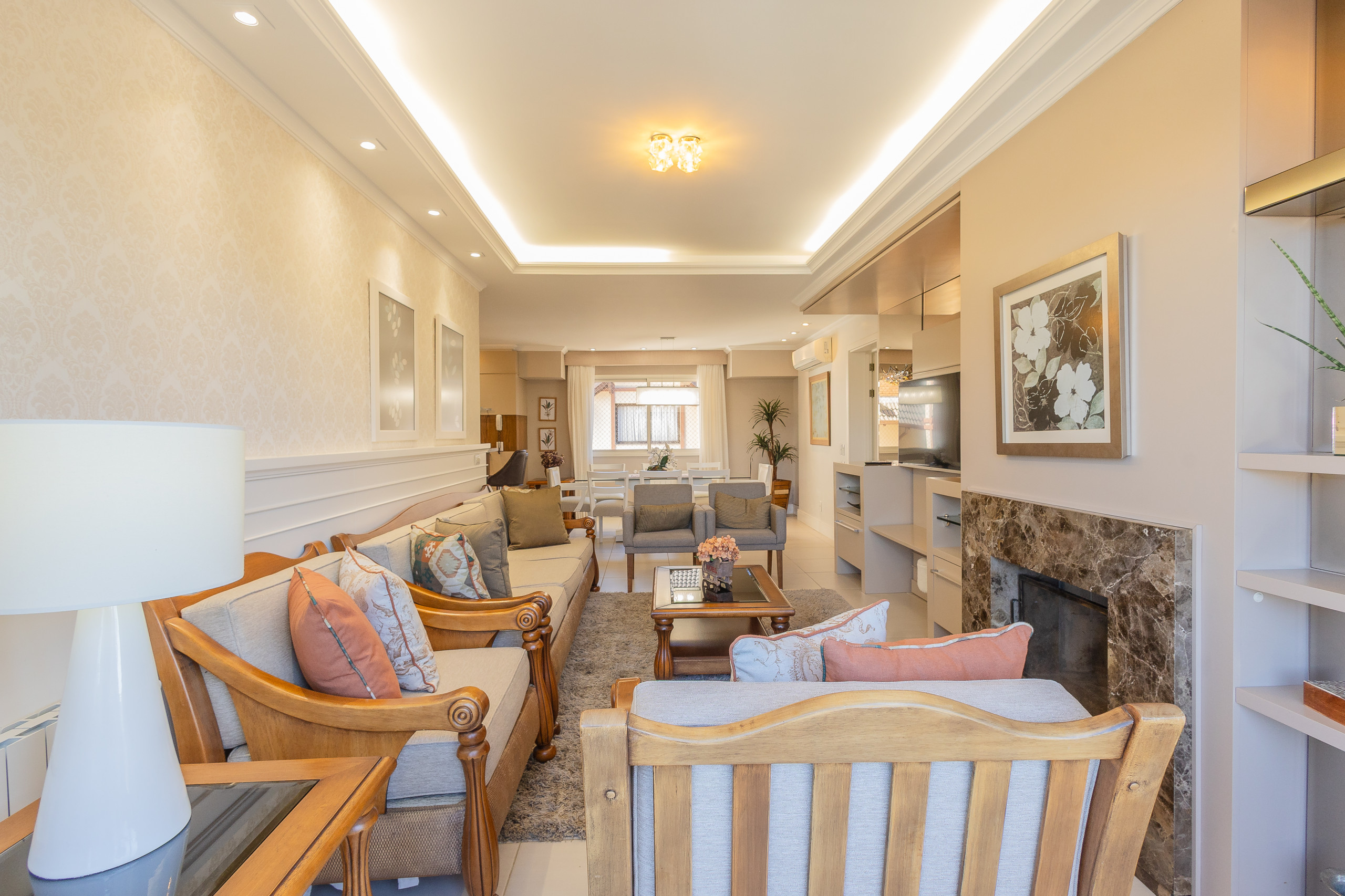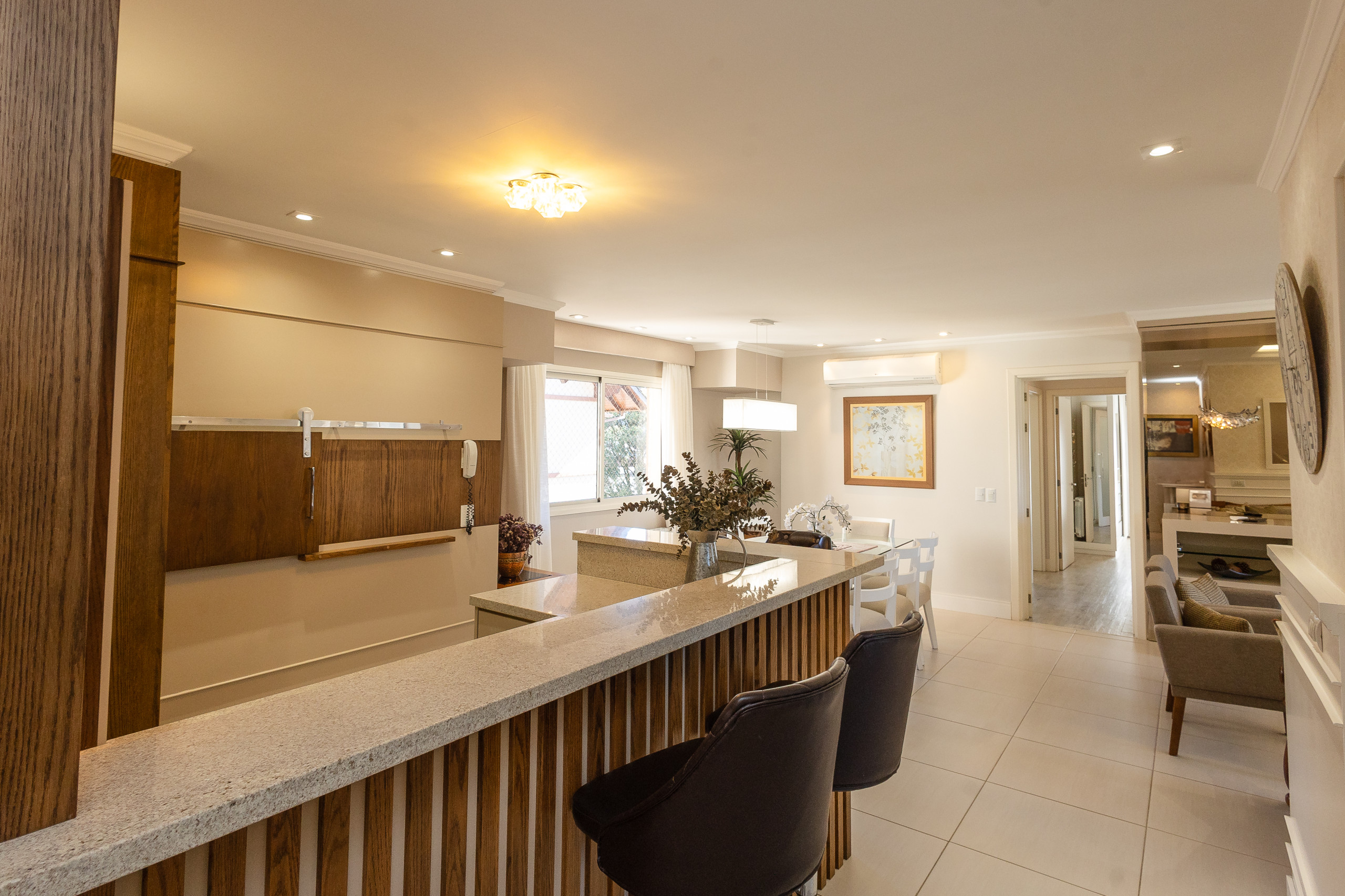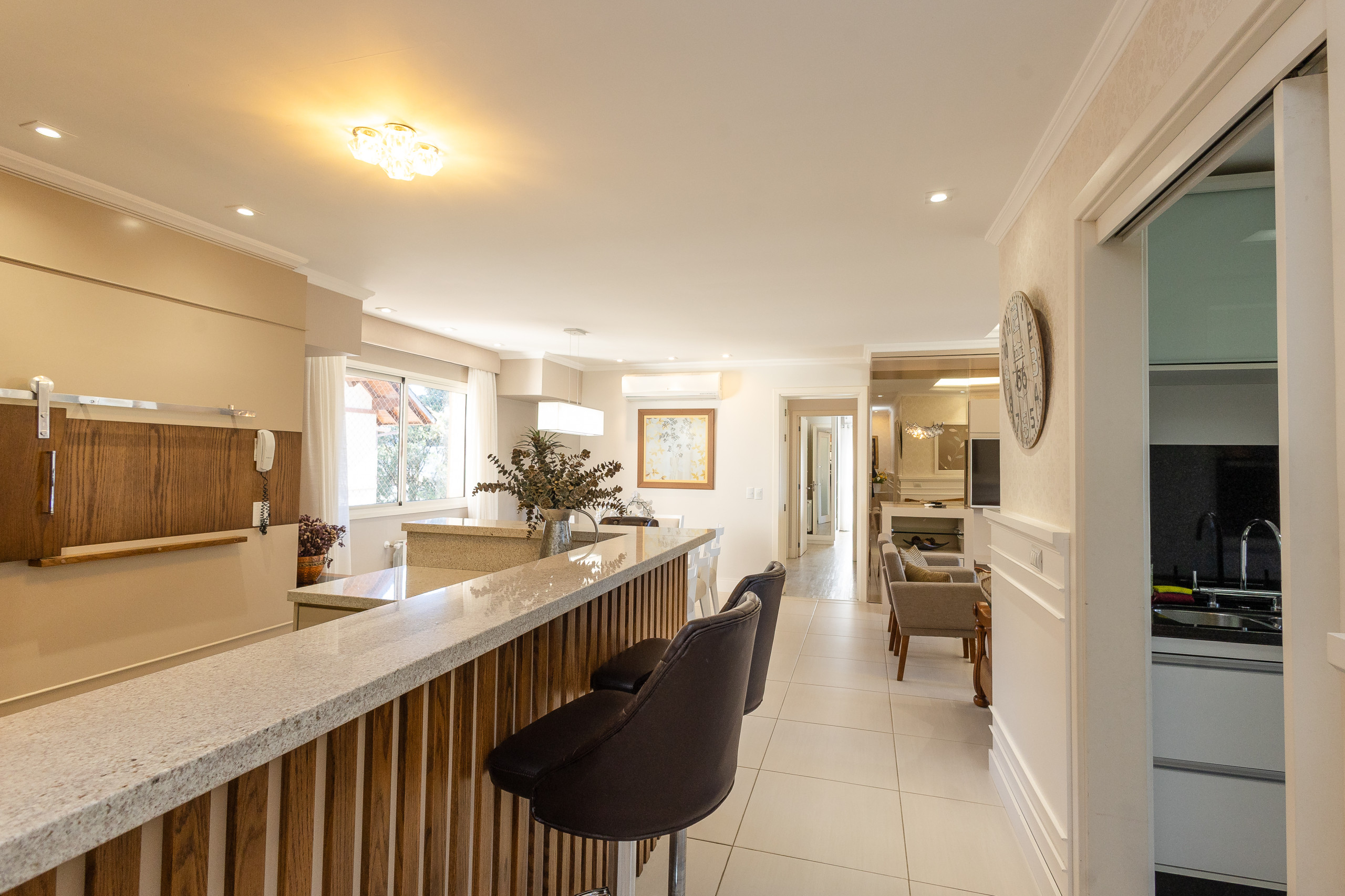 São 3 suítes (duas com varanda) preparadas com o enxoval para sua estadia. Ainda conta com um amplo living integrado de estar e jantar com bar, churrasqueira gourmet, split Q/F, lareira e banheiro social. Conta com jantar íntimo, cozinha e lavanderia, todos prontos para você.