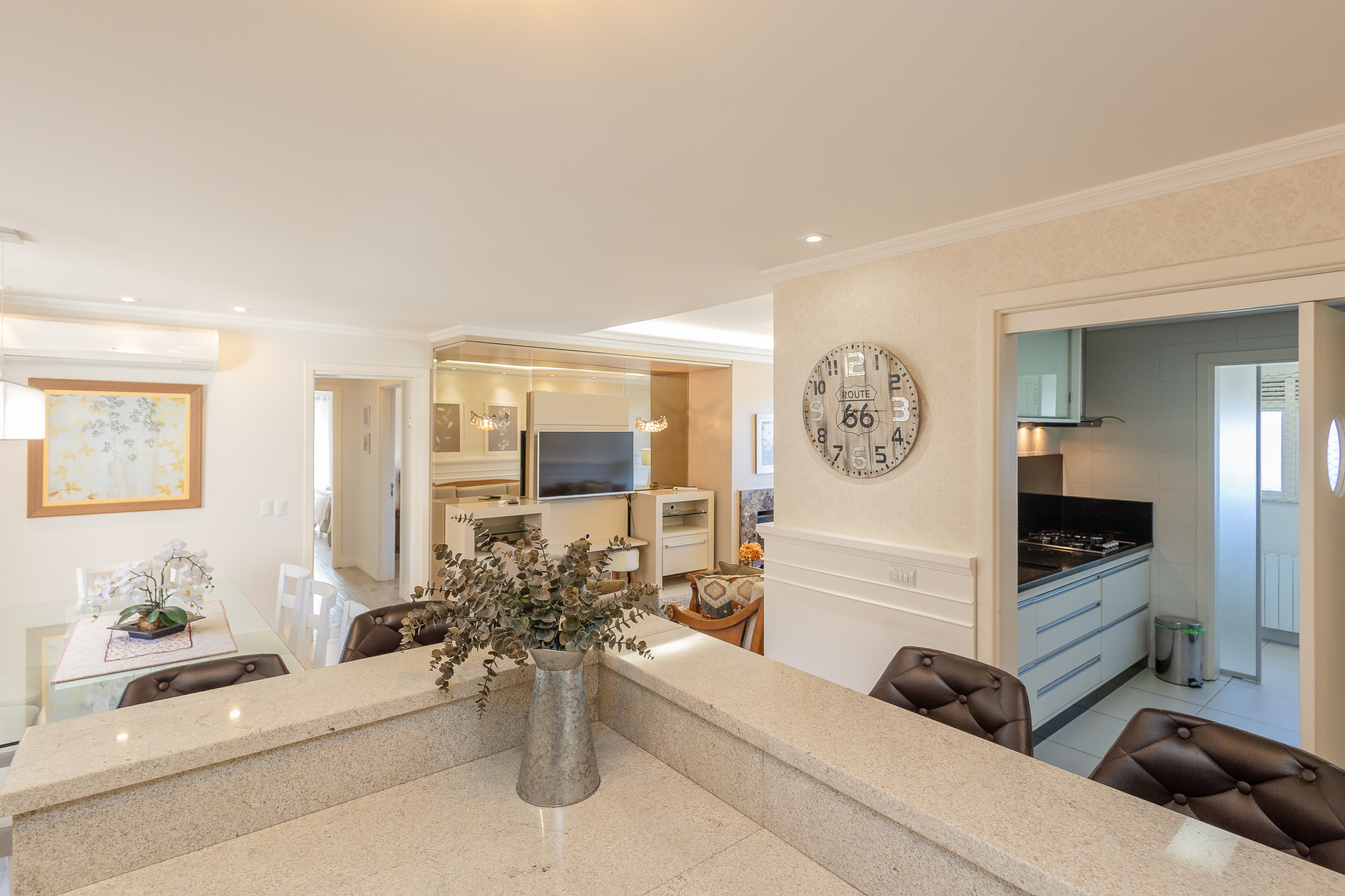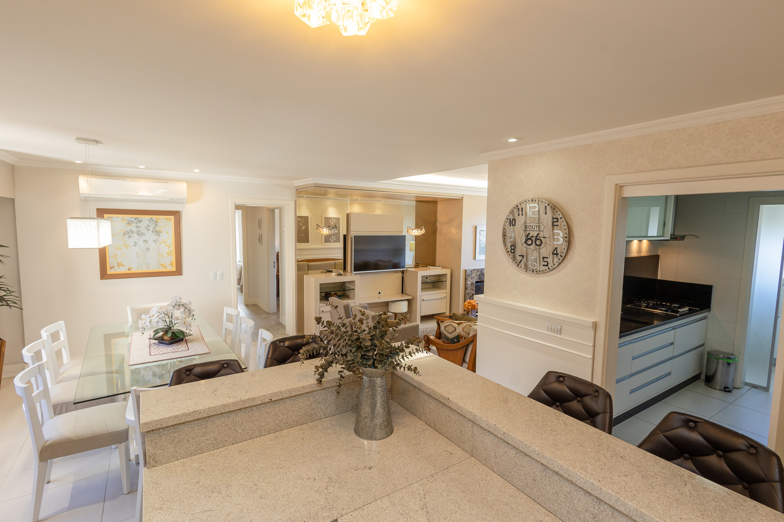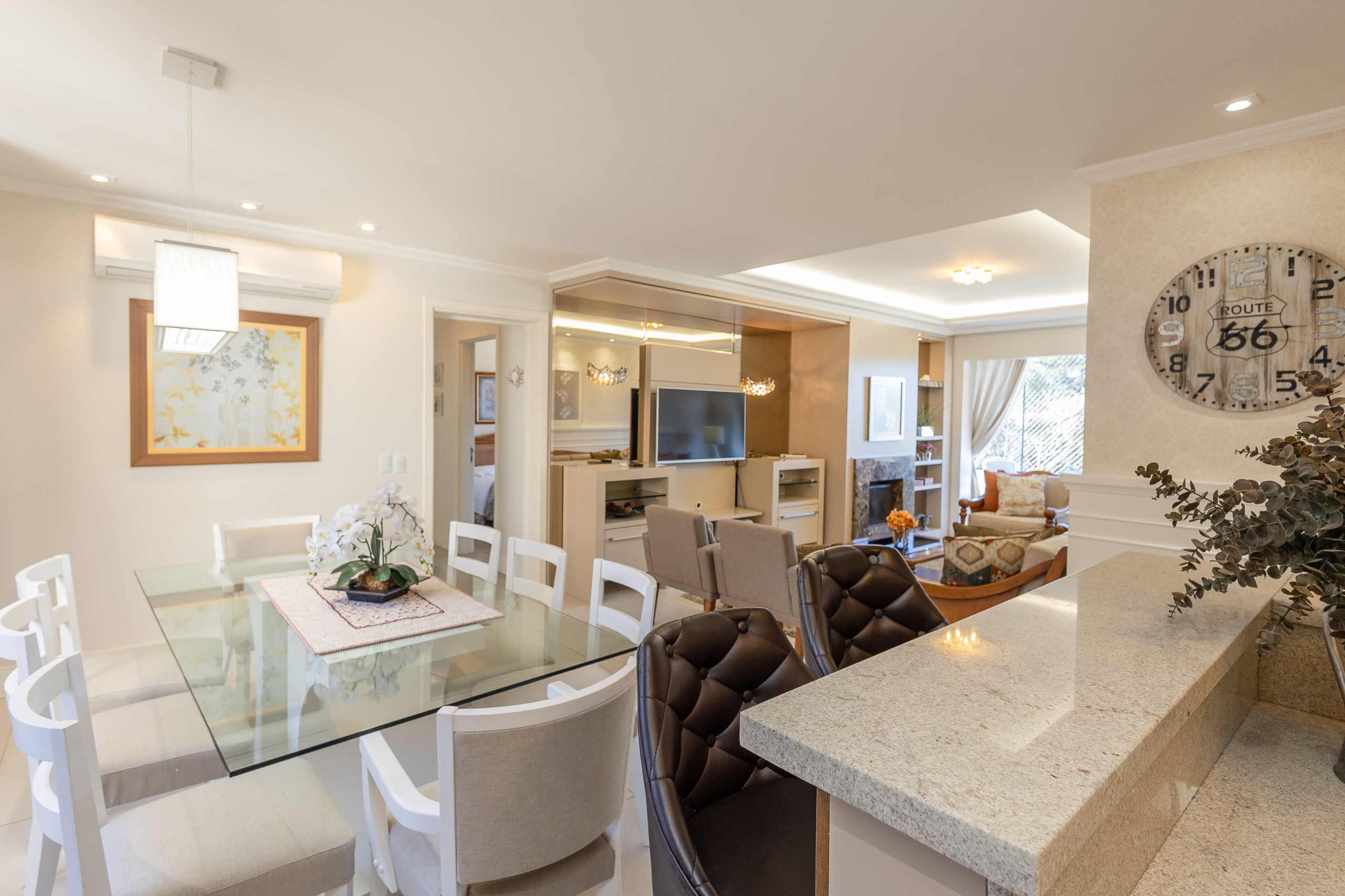 São 3 suítes (duas com varanda) preparadas com o enxoval para sua estadia. Ainda conta com um amplo living integrado de estar e jantar com bar, churrasqueira gourmet, split Q/F, lareira e banheiro social. Conta com jantar íntimo, cozinha e lavanderia, todos prontos para você.