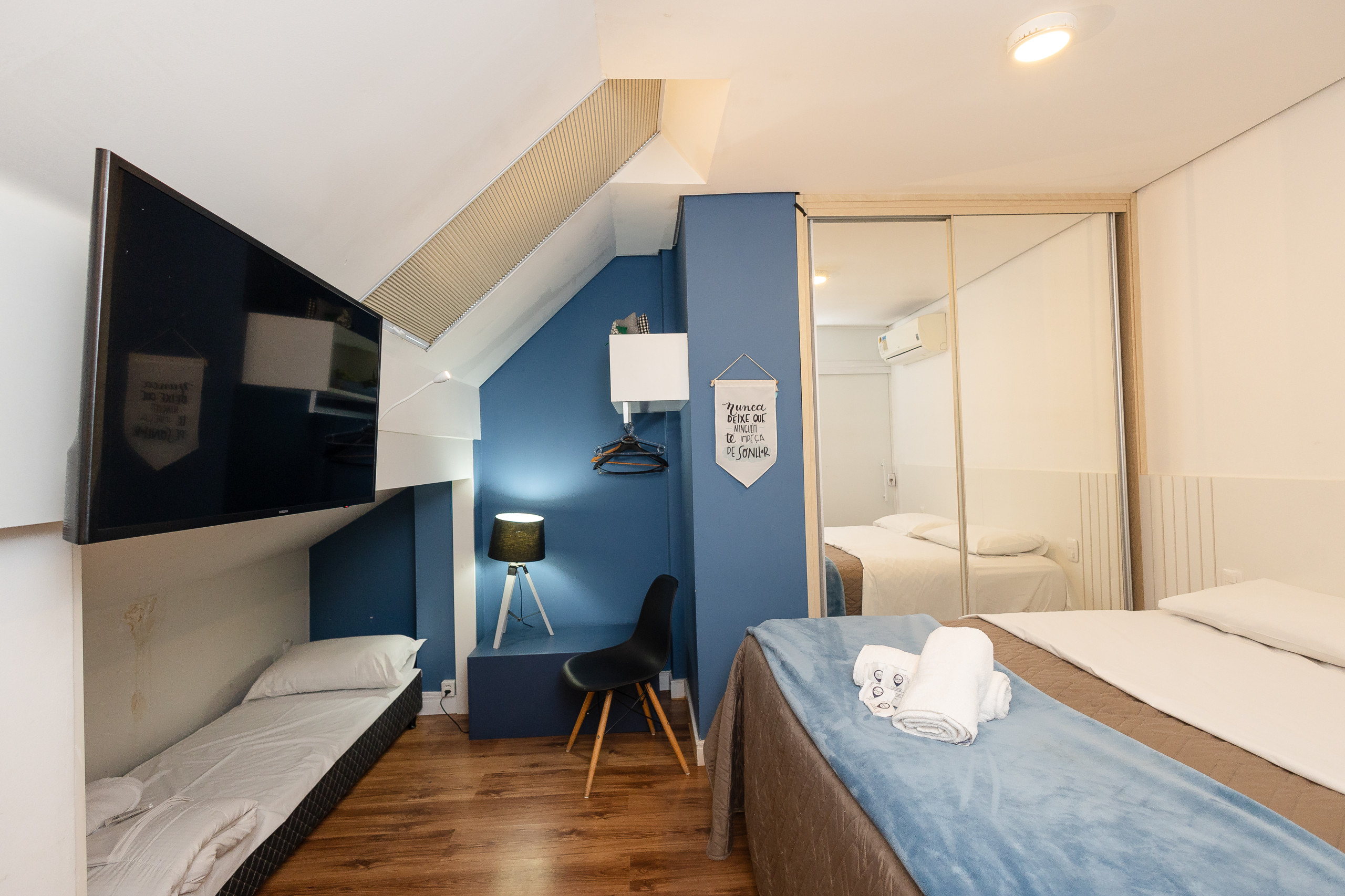 O check-in é gratuito das 15h às 22h e o check-out, das 8h às 11h. Esses horários poderão ser alterados mediante disponibilidade e taxa de recepção (R$100,00).