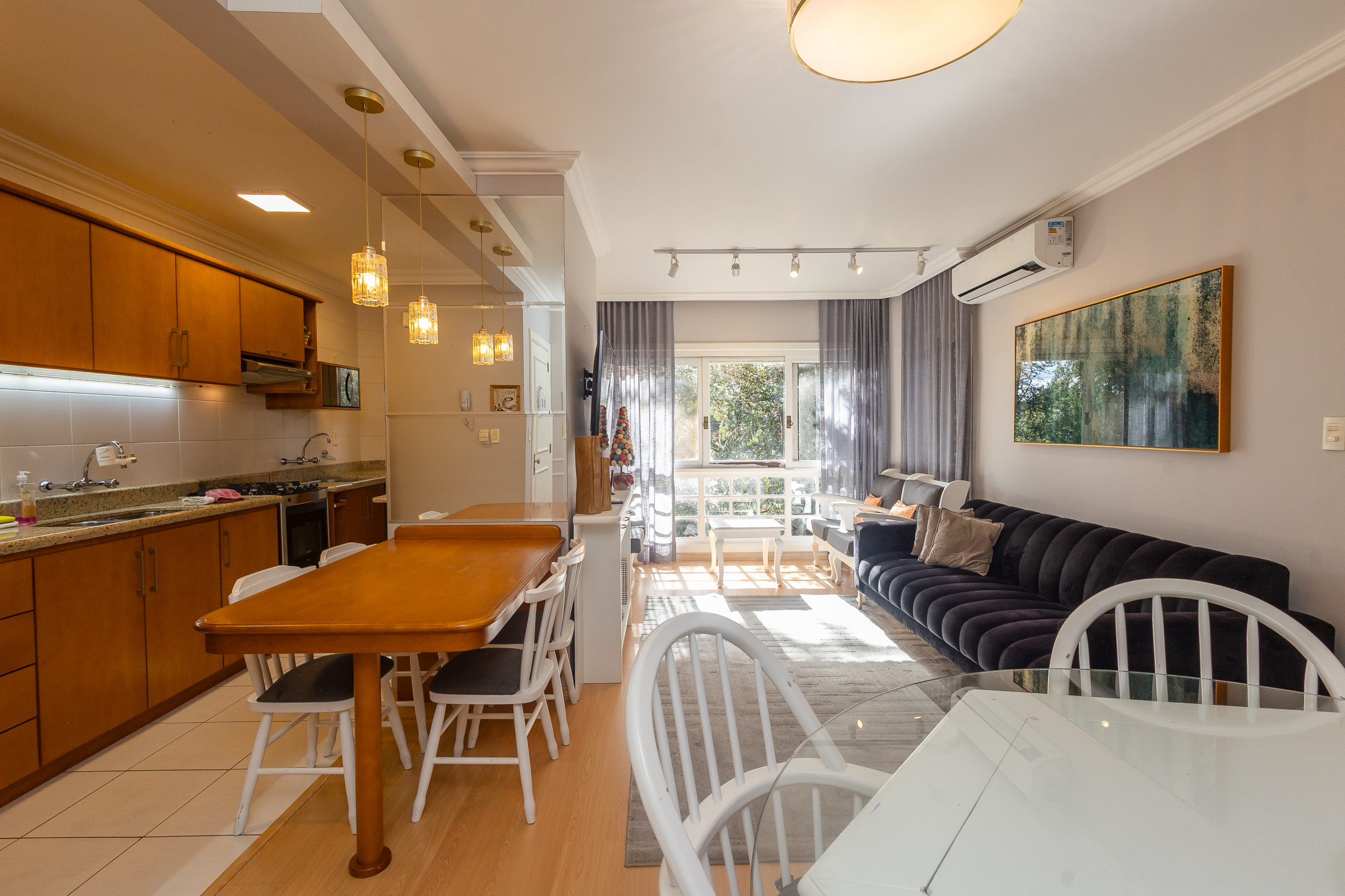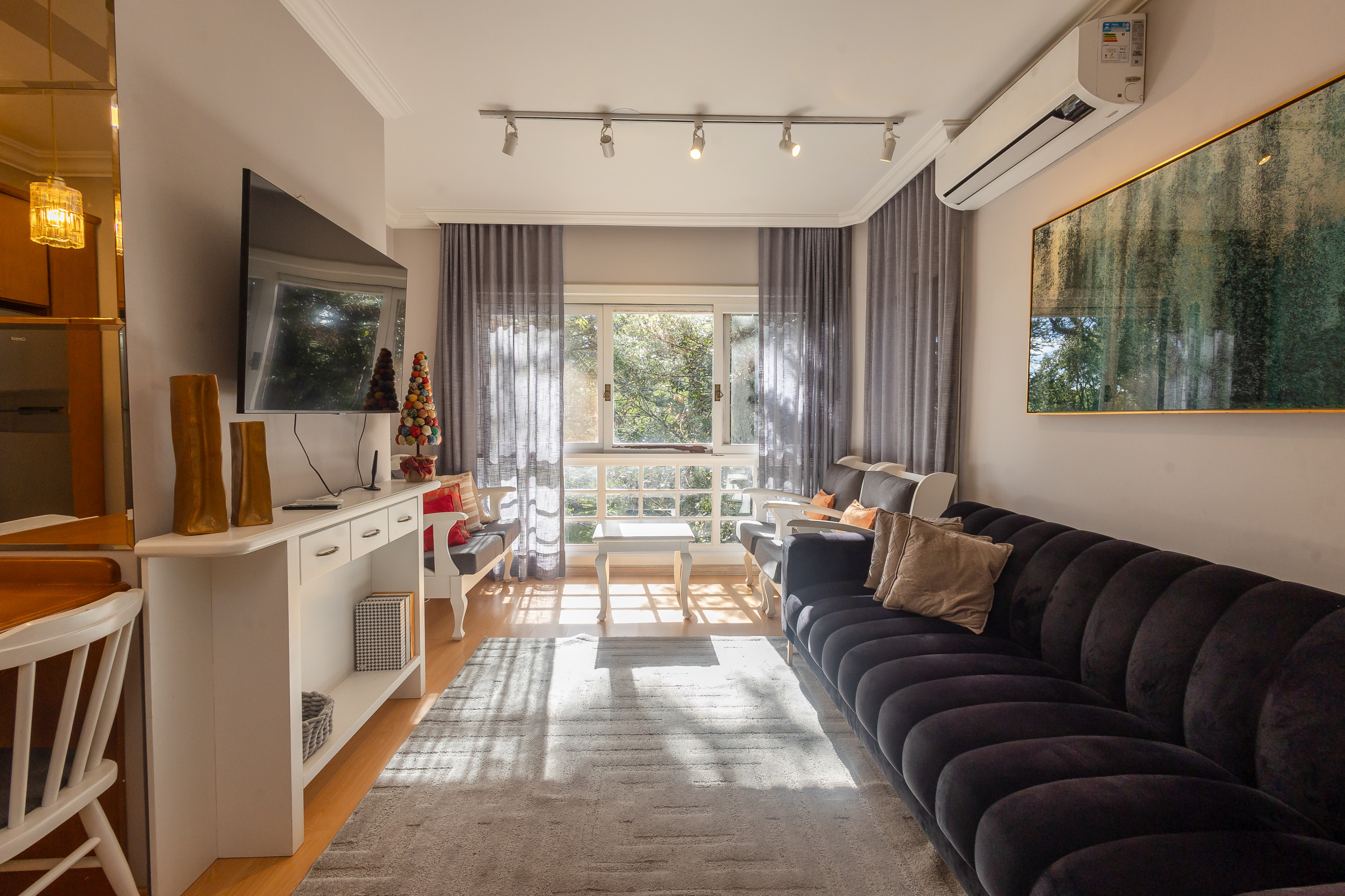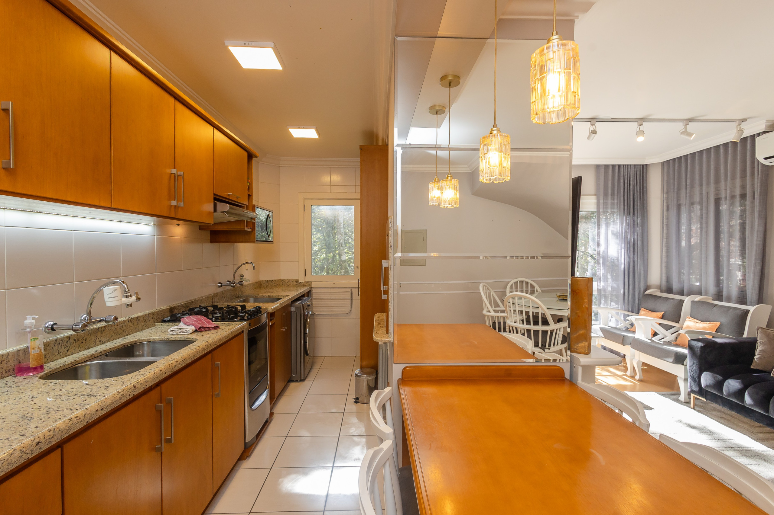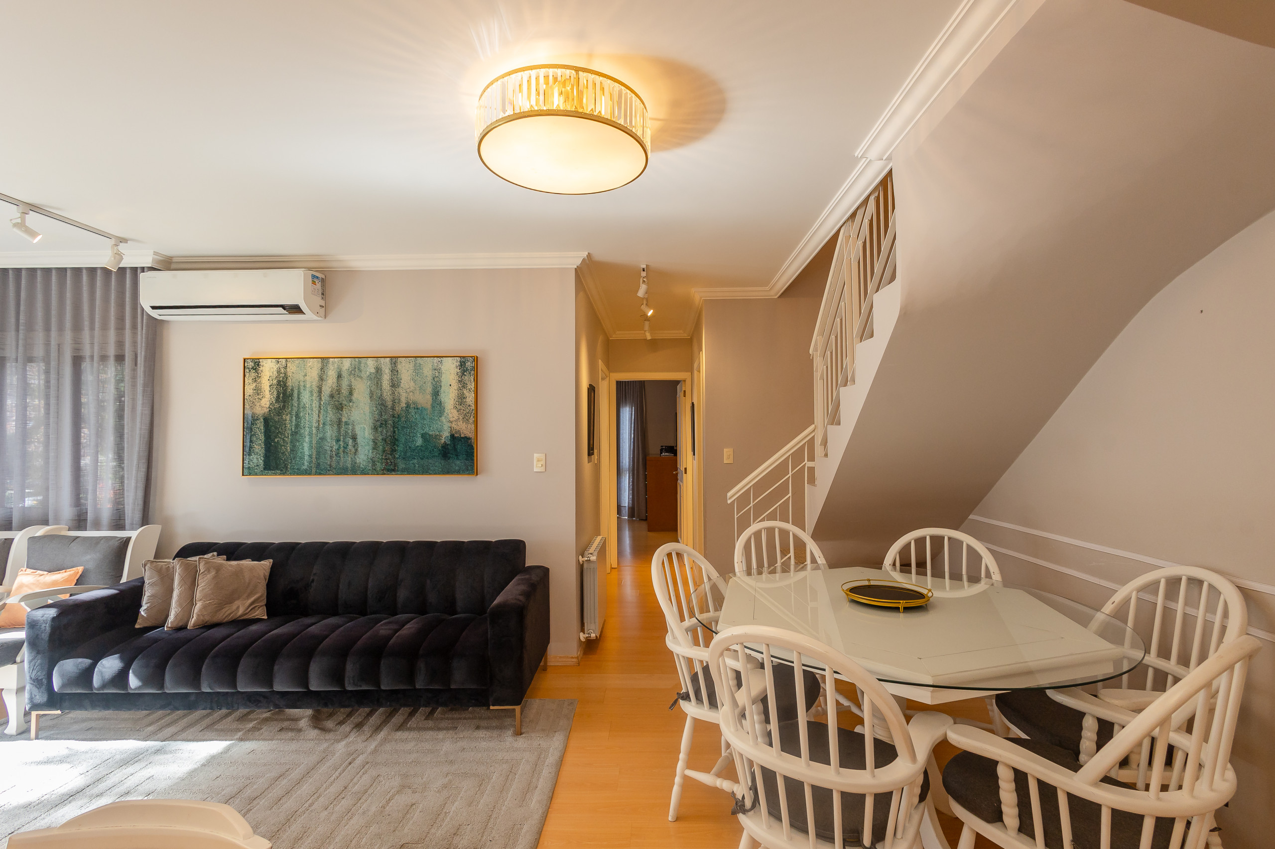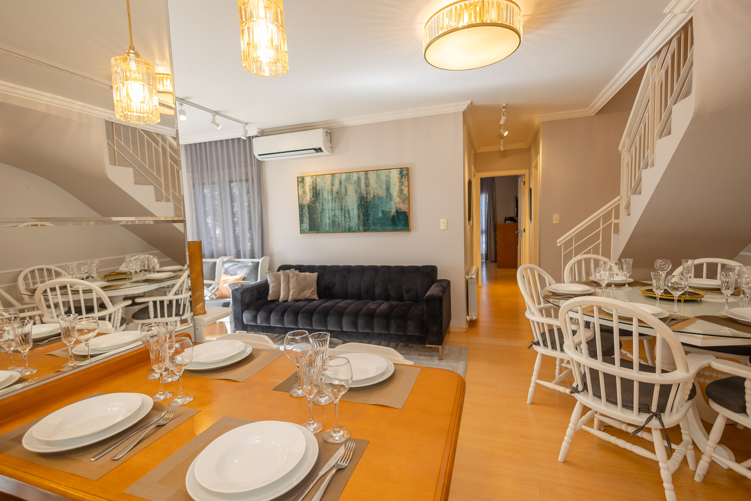 Belíssima cobertura duplex com amplo living integrado ao jantar e à cozinha americana completa com churrasqueira, área de serviço com lava/seca. Possui 5 dormitórios, sendo 3 suítes, e dois banheiros completos. Dispõe smart TVs e split Q/F em todos os cômodos, e duas vagas de garagem. Localizado a cerca de 800m da Rua Coberta e rodeado por restaurantes, lojas, supermercado, farmácia, etc, permite que você aproveite as facilidades e delícias que a cidade oferece em pequenas caminhadas, deixando os carros na garagem!