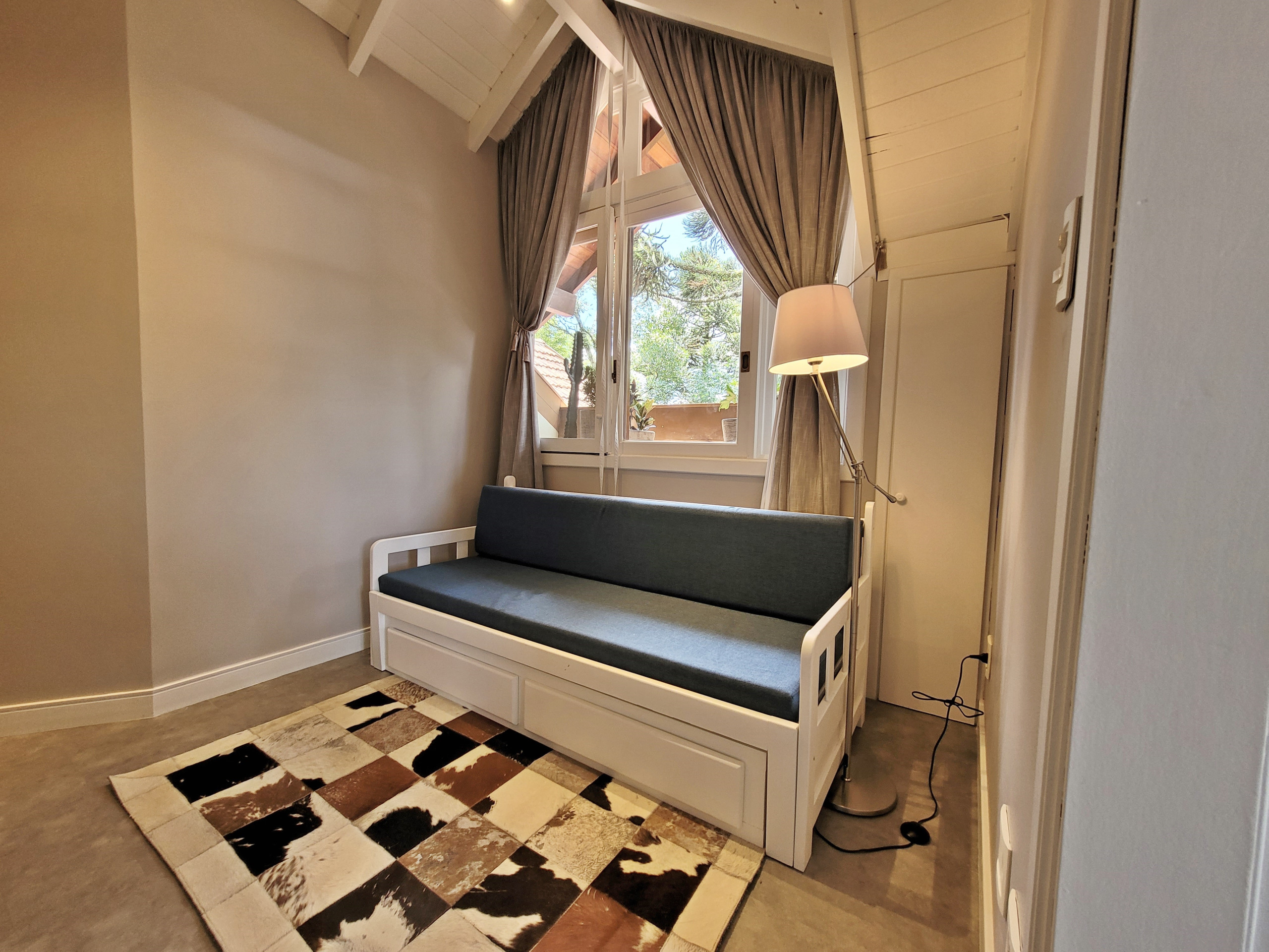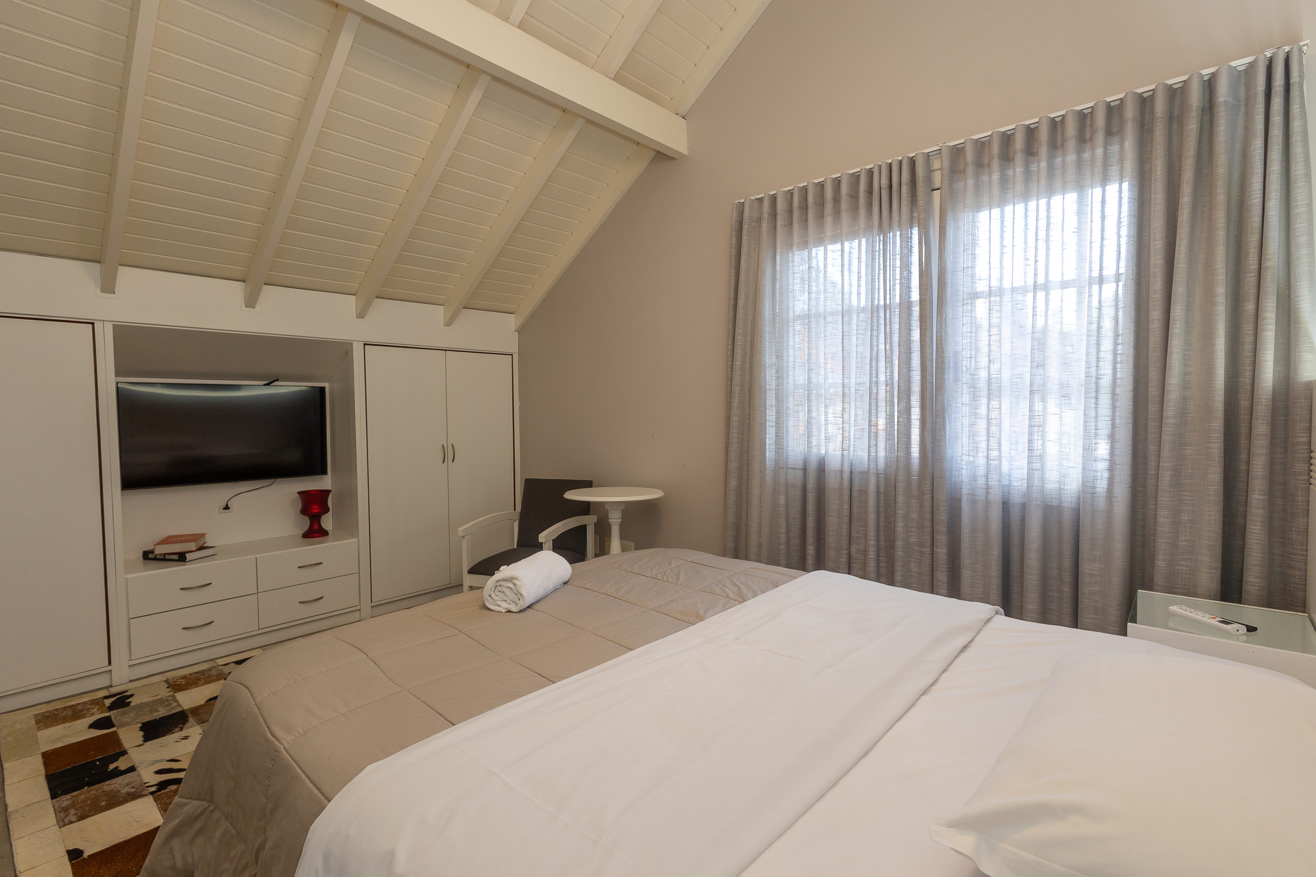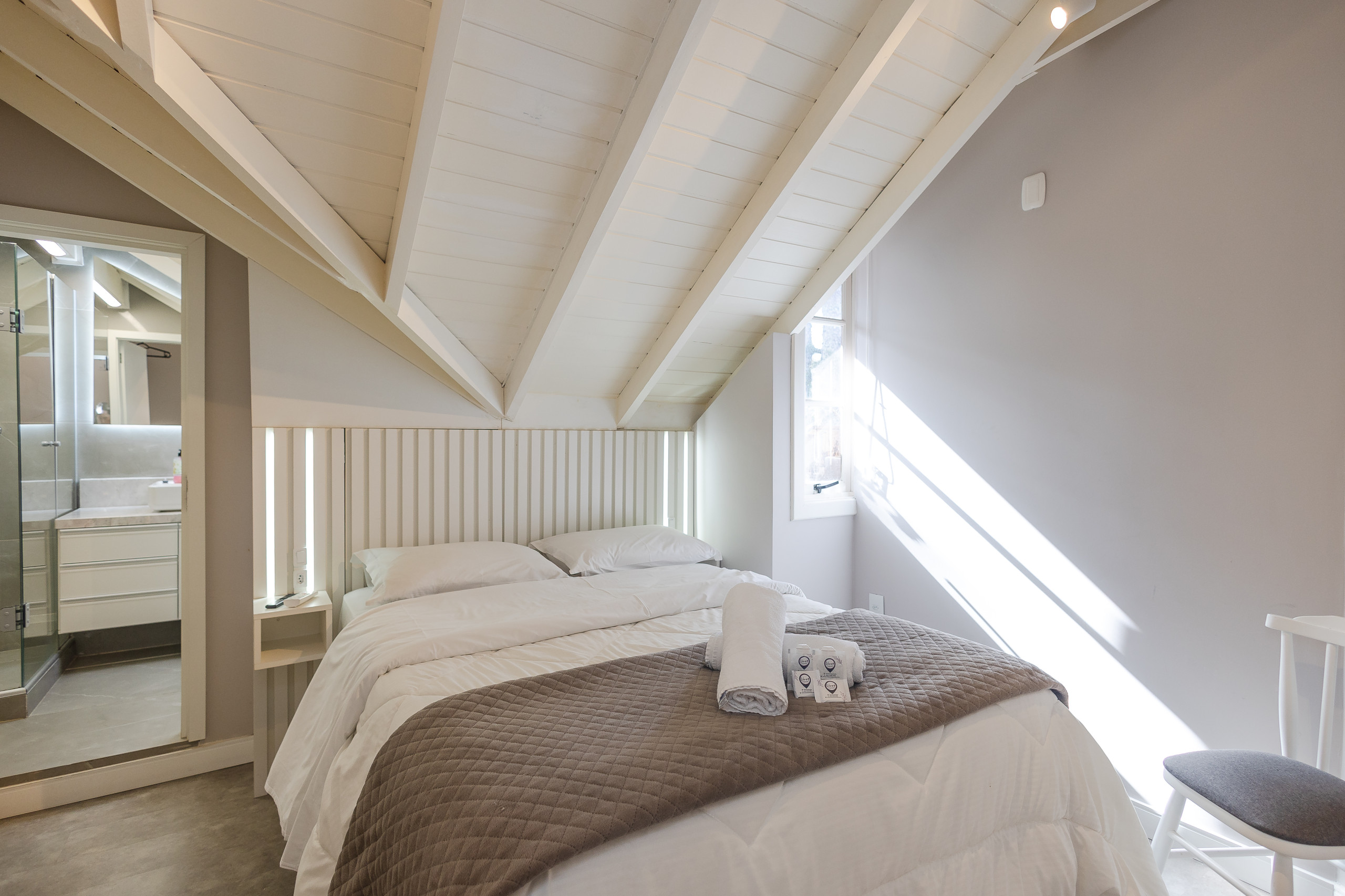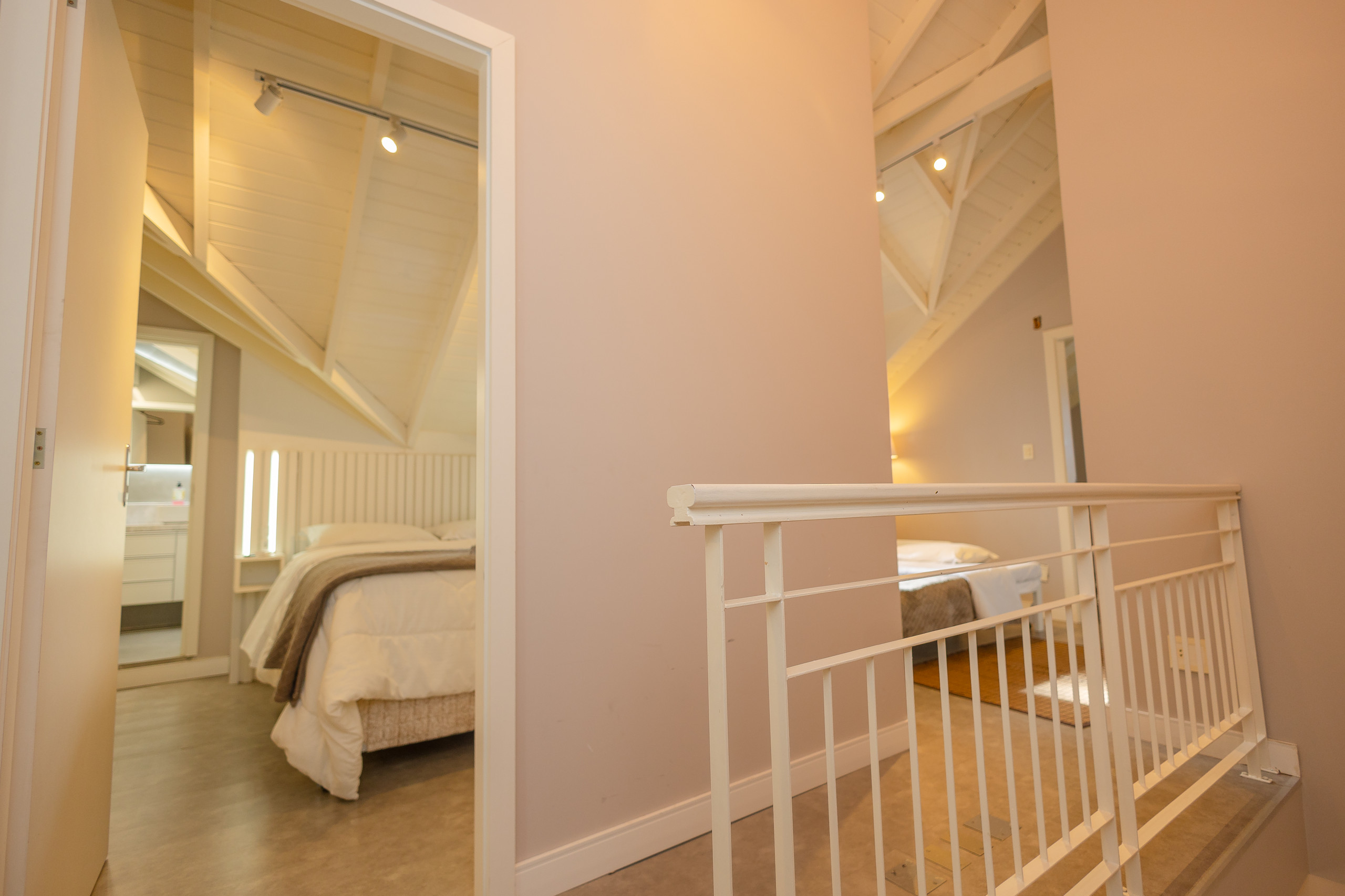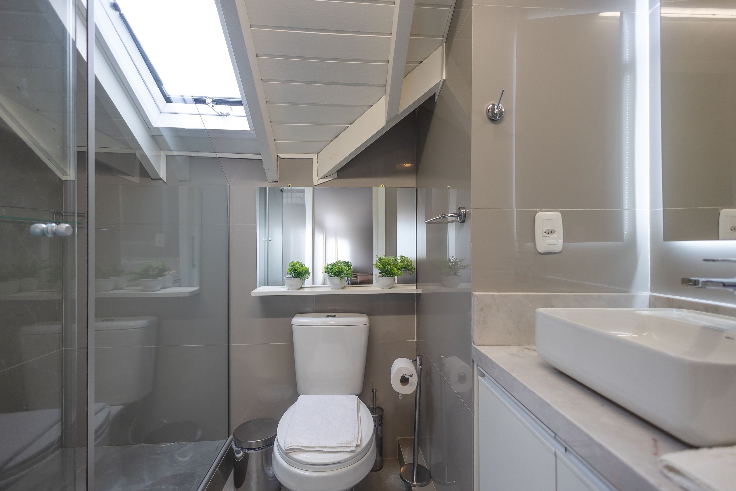No andar superior, encontramos estar íntimo com sofá-cama, duas suítes, e banho completo para atender ao outro dormitório.