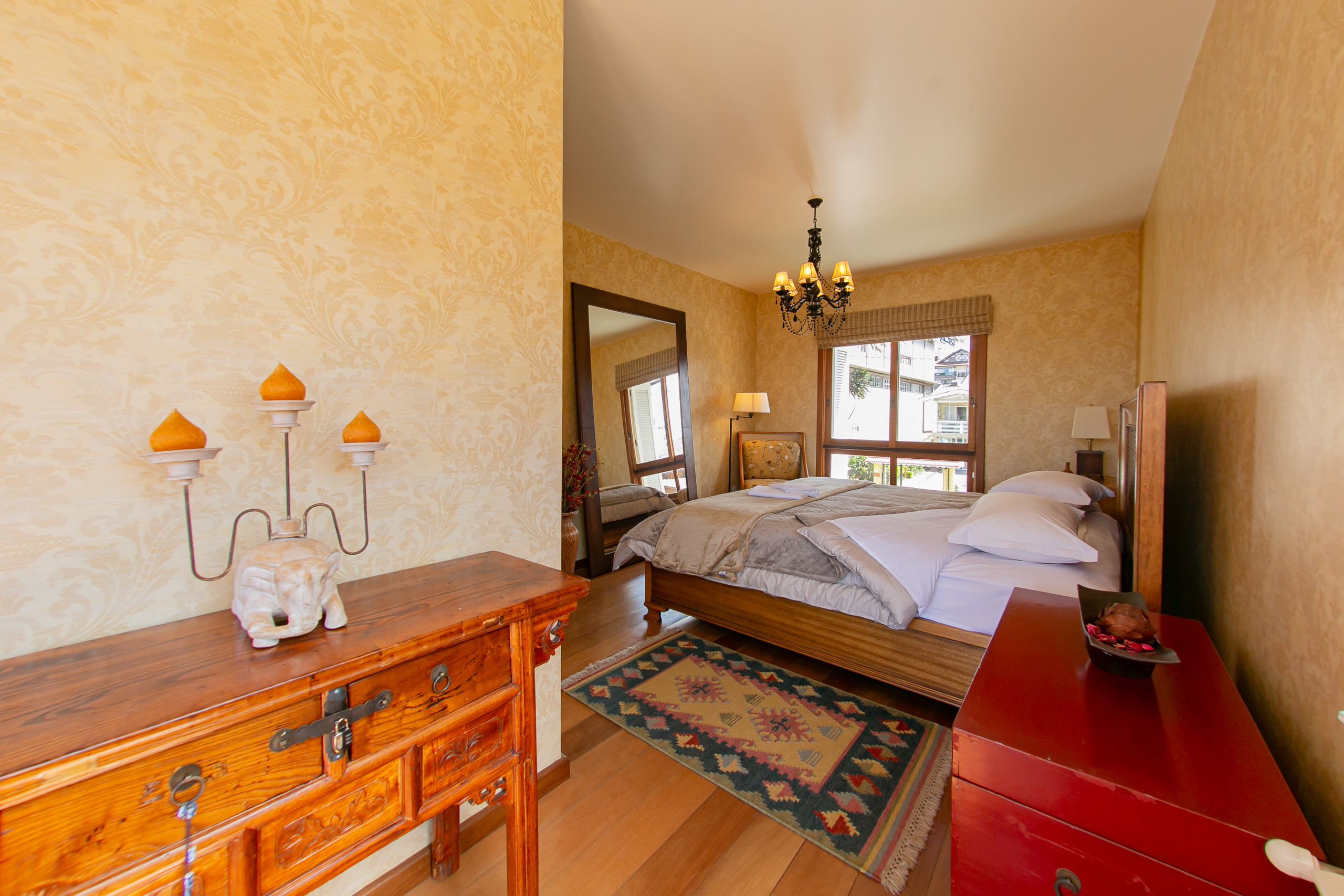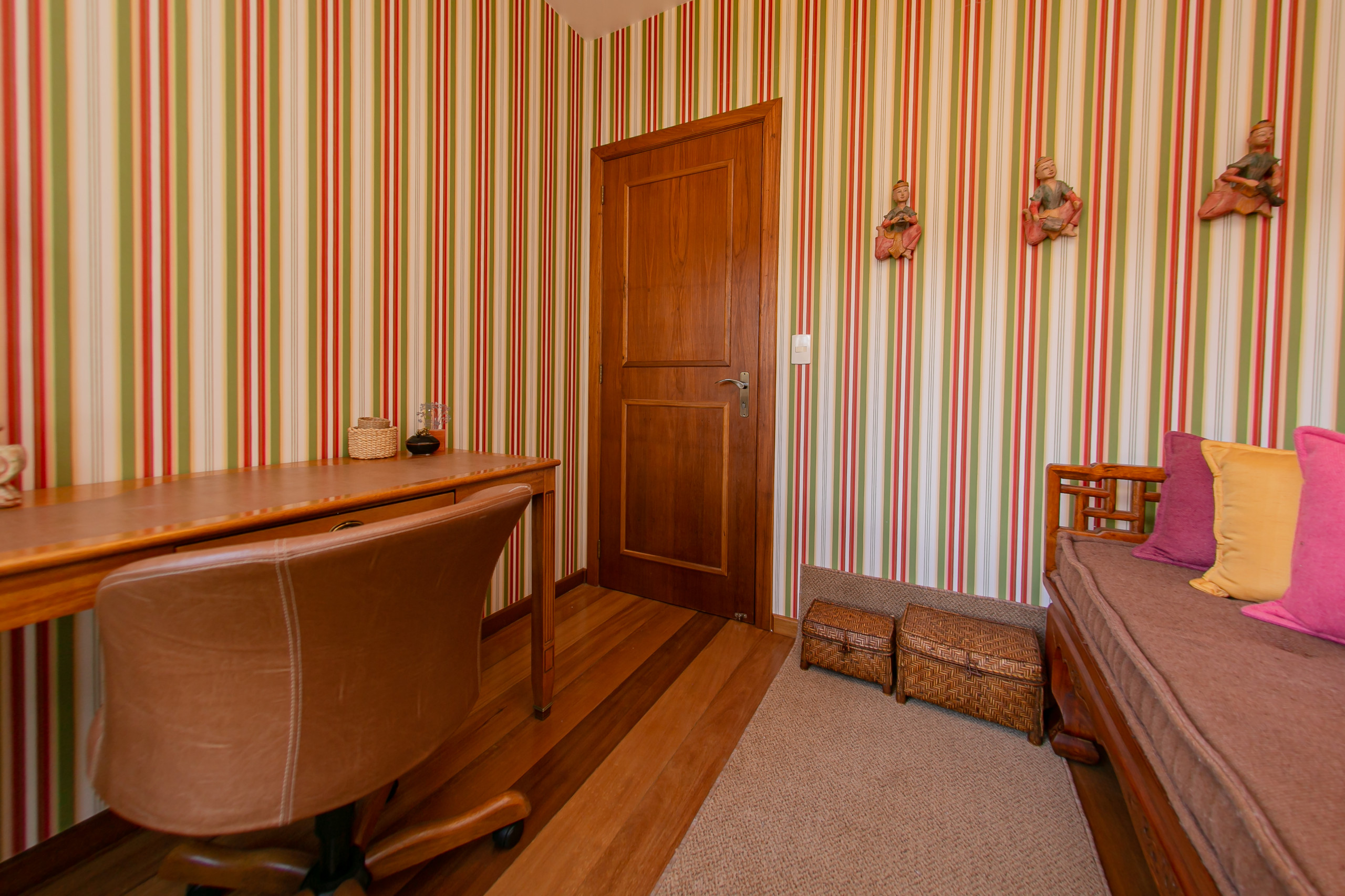 Amplo apartamento duplex térreo com 200m², com 3 suítes. No andar principal, o apartamento ainda conta com um dormitório, lavabo, cozinha independente completa, lavanderia com lavadora e secadora de roupas, living com três ambientes (estar, jantar e churrasqueira gourmet) com vista para o Vale do Quilombo. No andar superior estão as três suítes: todas contam com closet, sendo que a das rosas dispõe de banheira e a master tem vista para o Vale e cama king. Neste mesmo andar ainda há uma segunda sala de estar com TV.