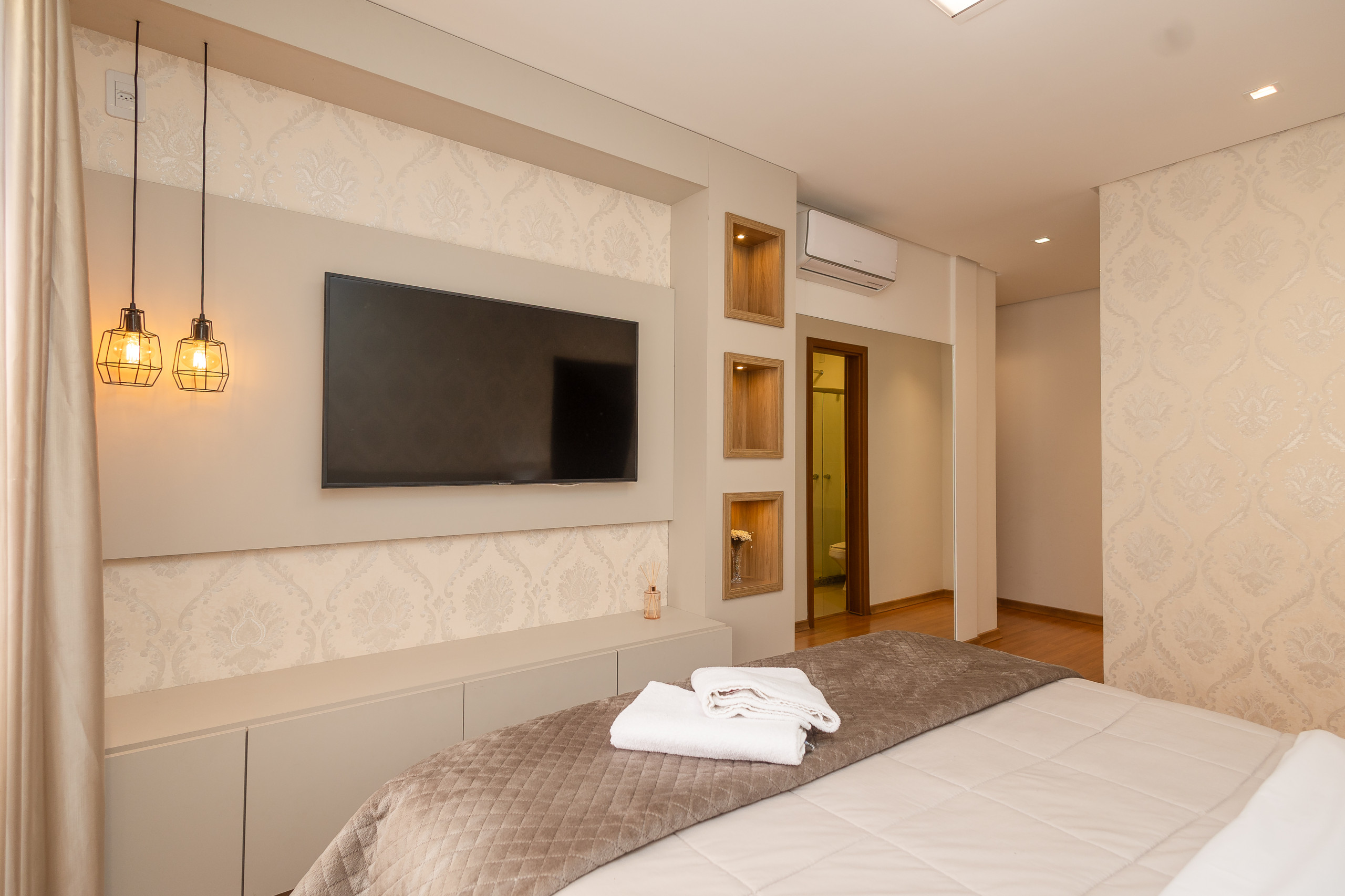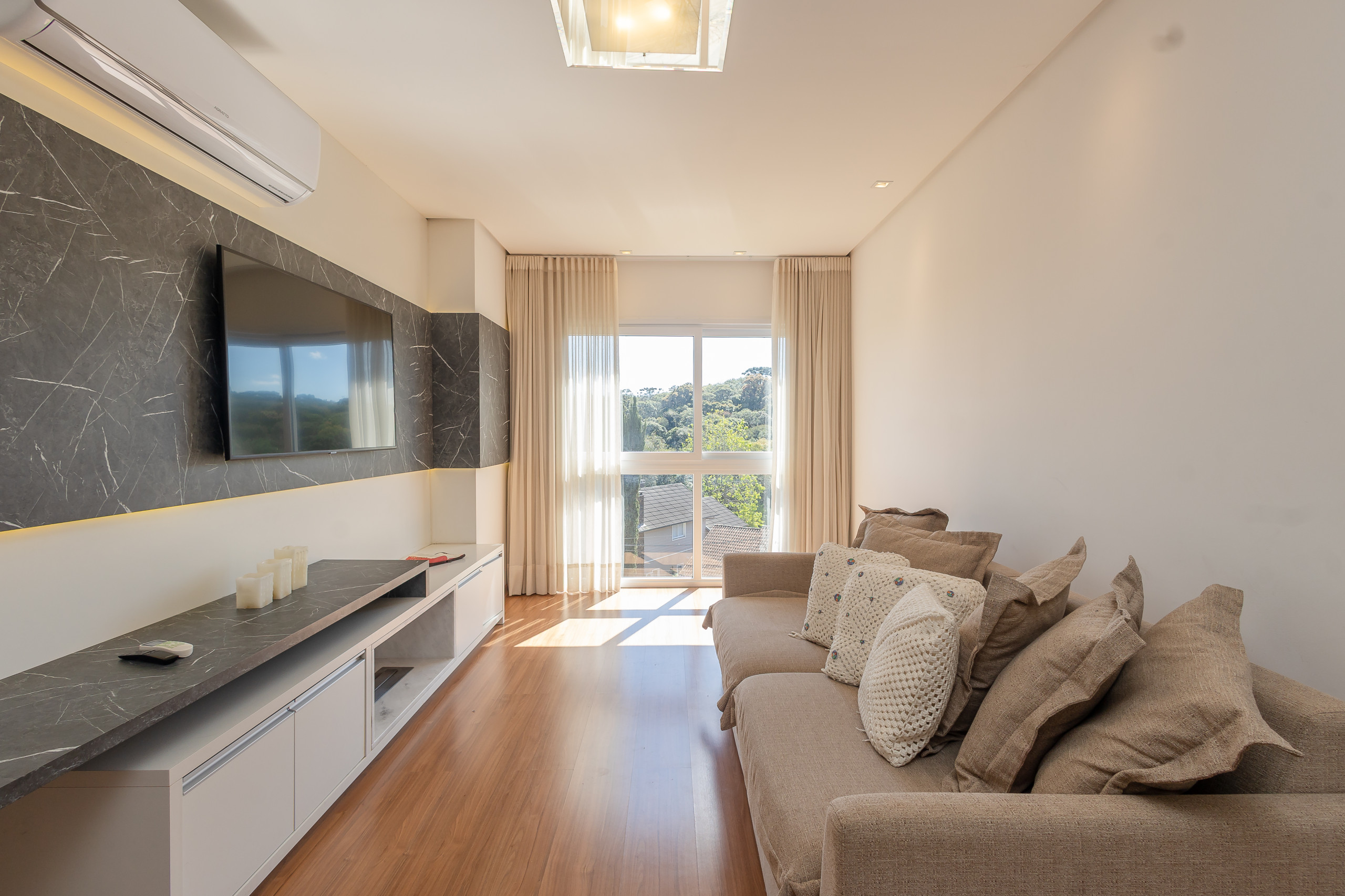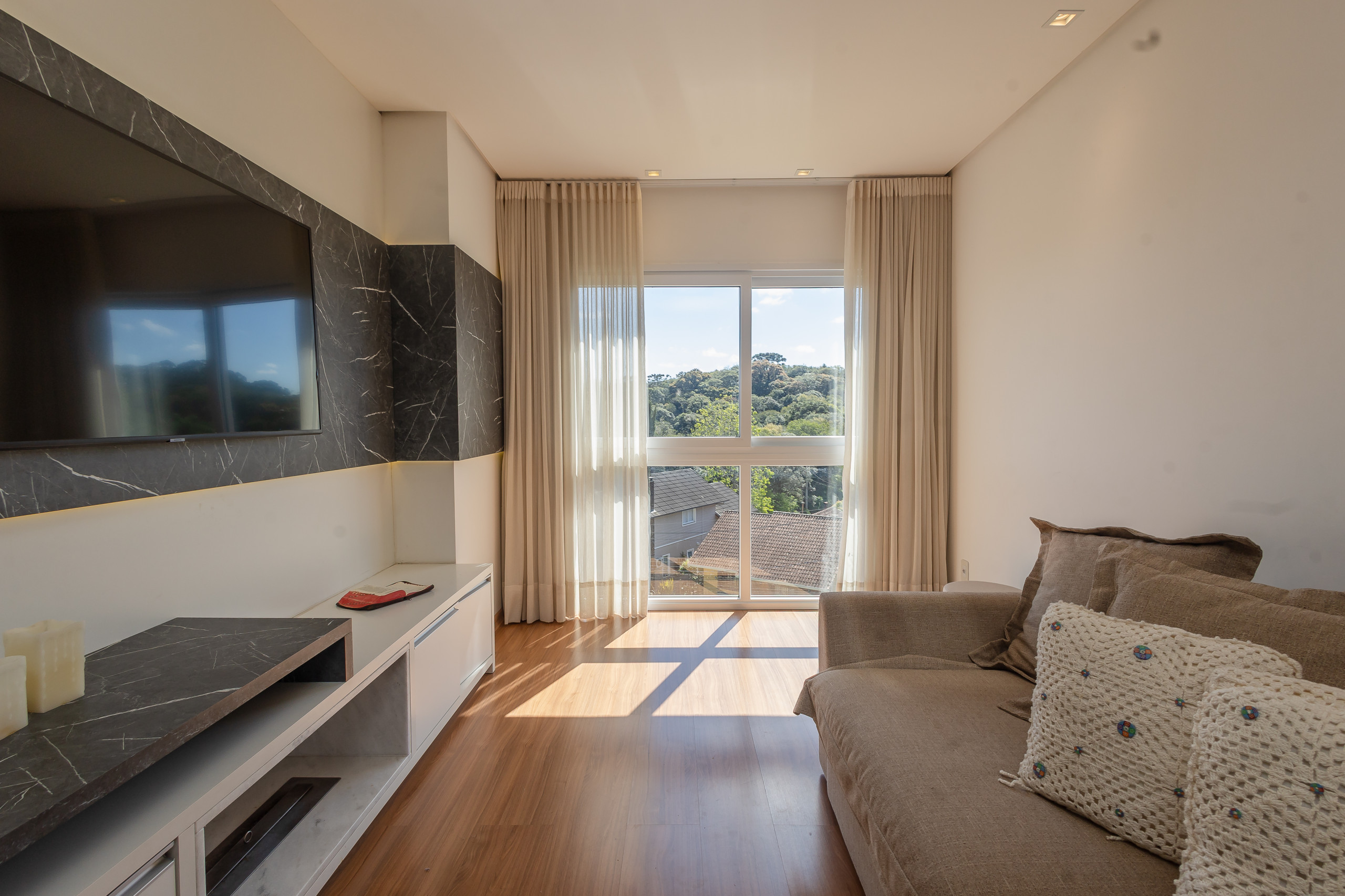 Amplo apartamento de alto padrão com 2 suítes, localizado próximo ao centro de Gramado, junto a mercados, museus e restaurantes.