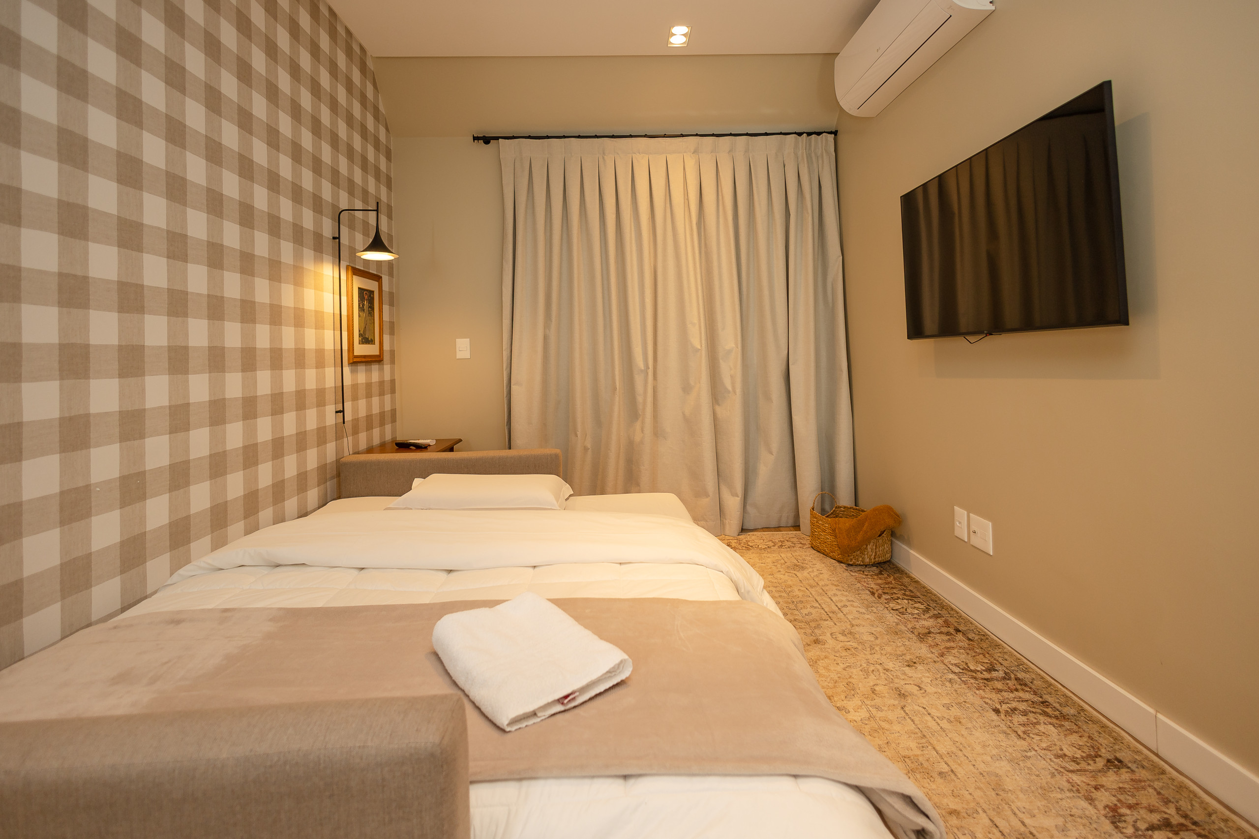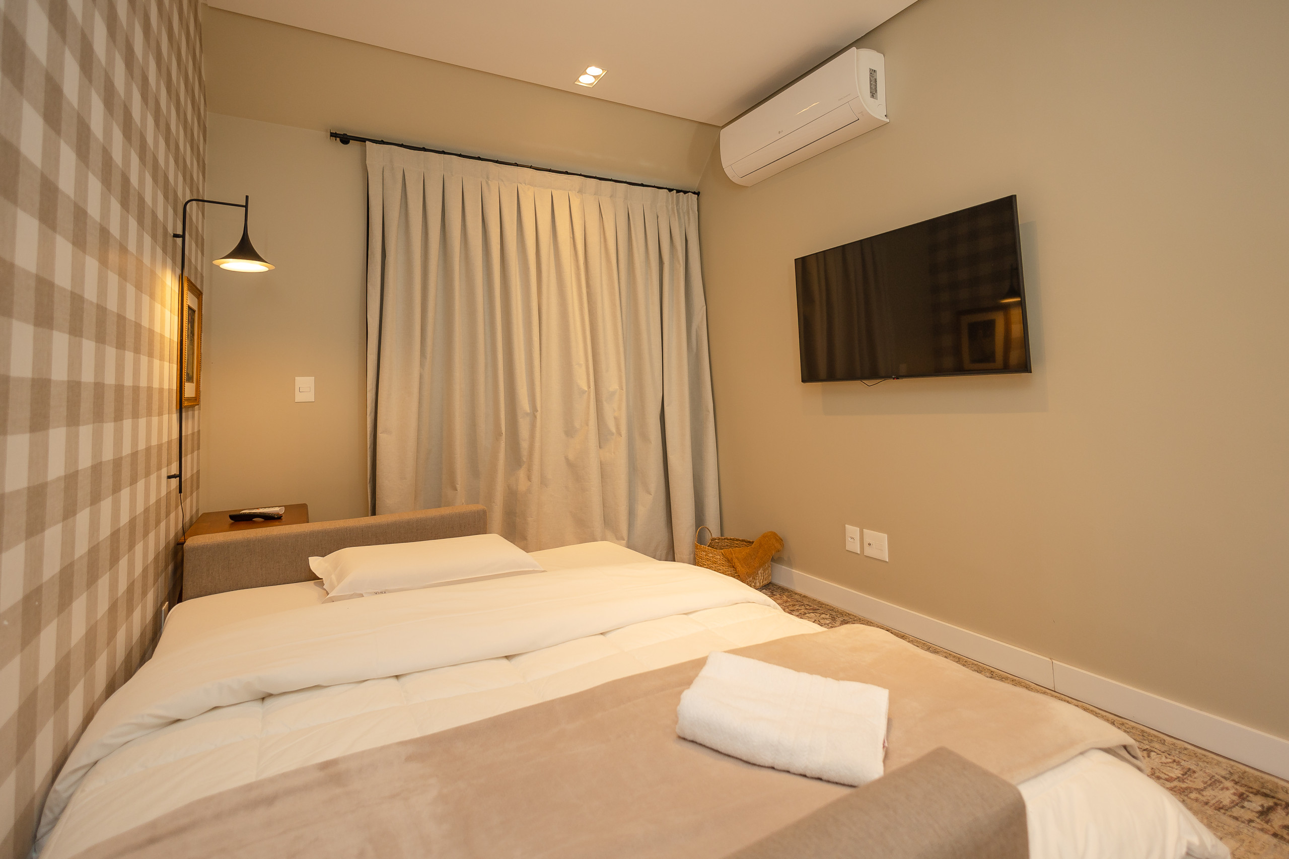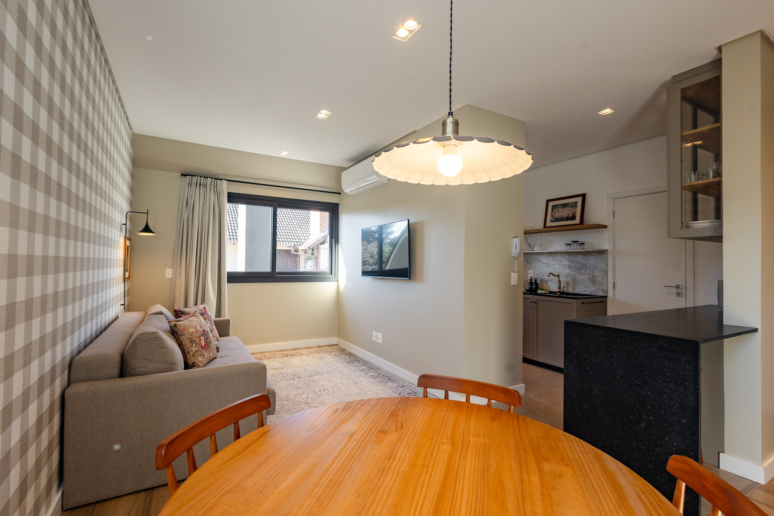 Bem-vindo ao nosso moderno apartamento de um dormitório, no coração de Gramado, a poucos passos das principais atrações da cidade. Com suíte e lavabo, o imóvel oferece todo o conforto para uma estadia sem preocupações, com cama queen, sofá-cama de casal, Smart TVs, lava e seca, ar-condicionado quente/frio, e enxoval de luxo. Além disso, conta com vaga de garagem. Aproveite a localização central e reserve agora para viver o melhor de Gramado!
