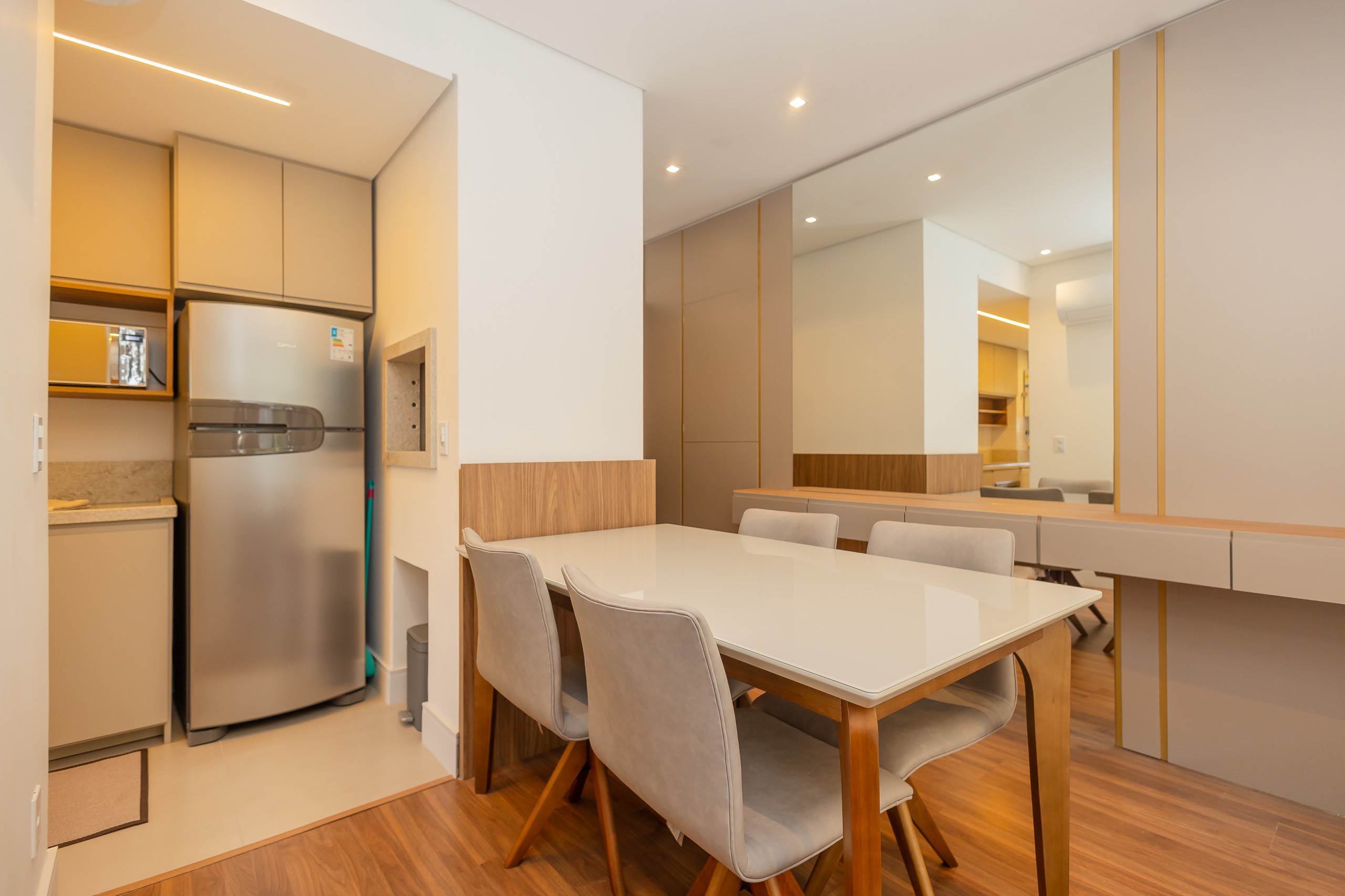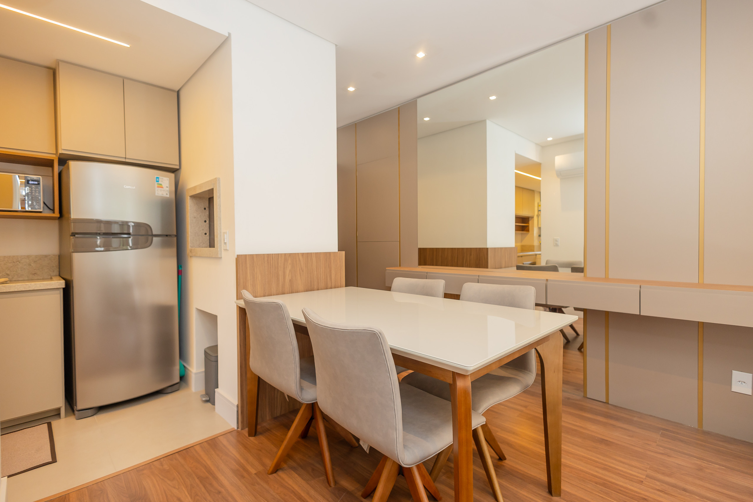 Ainda conta com inteernet de alta velocidade, enxoval completo e uma vaga de garagem!