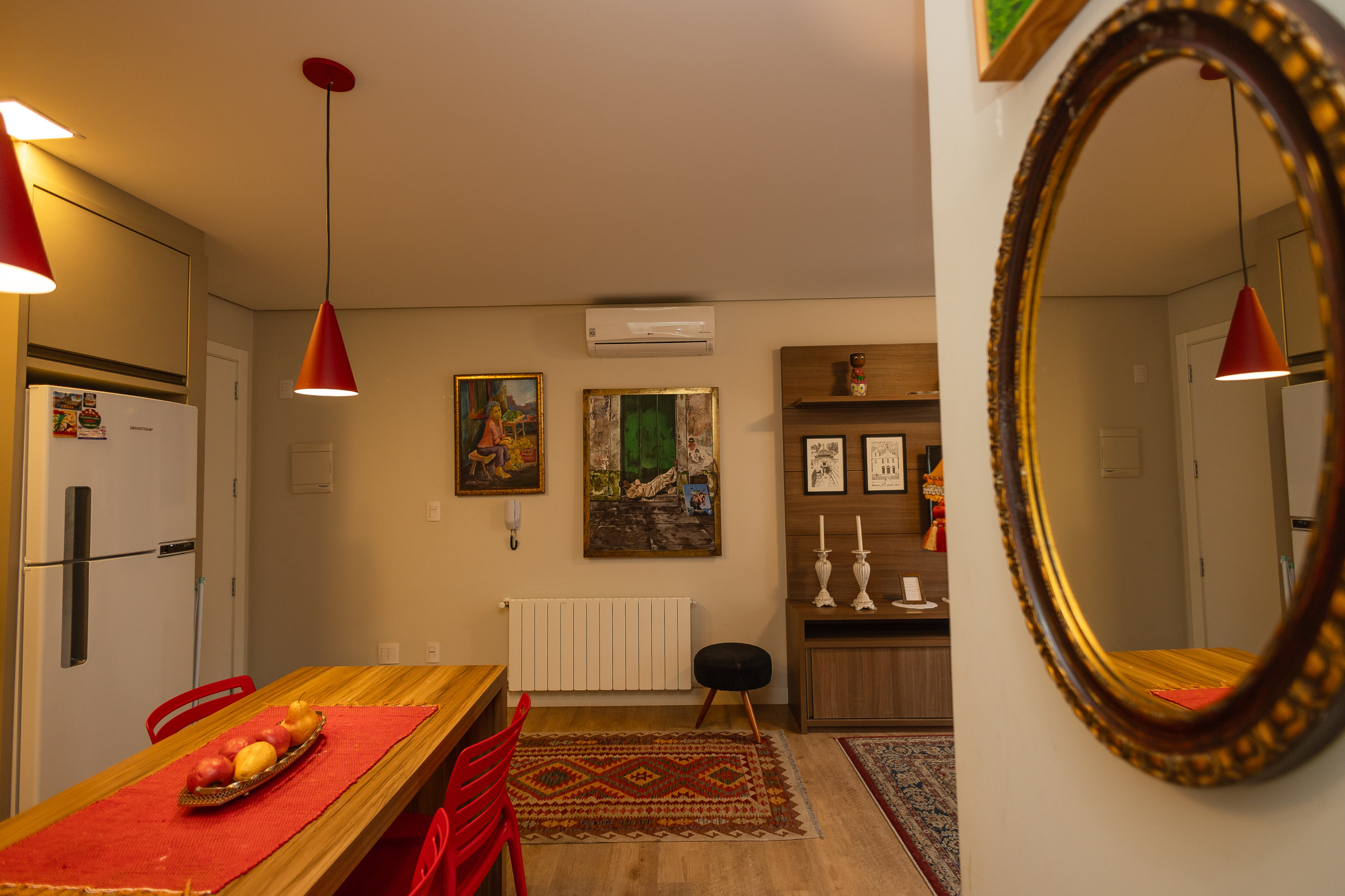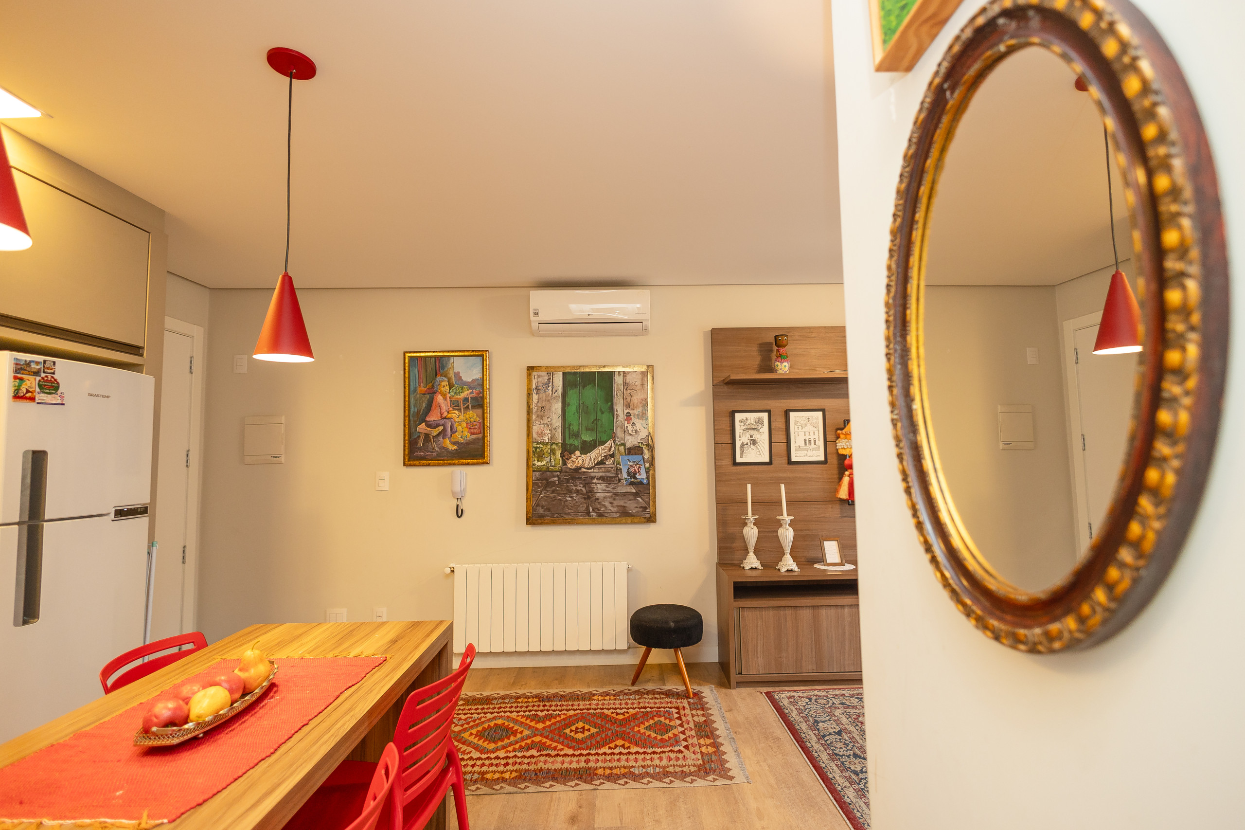 O living conta com três ambientes (cozinha, estar e jantar) com churrasqueira e vai proporcionar um espaço para que aproveitem os momentos de descontração em grupo, com muito bom gosto! Além de split Q/f também conta calefação, tornando especiais os dias de verão e inverno!