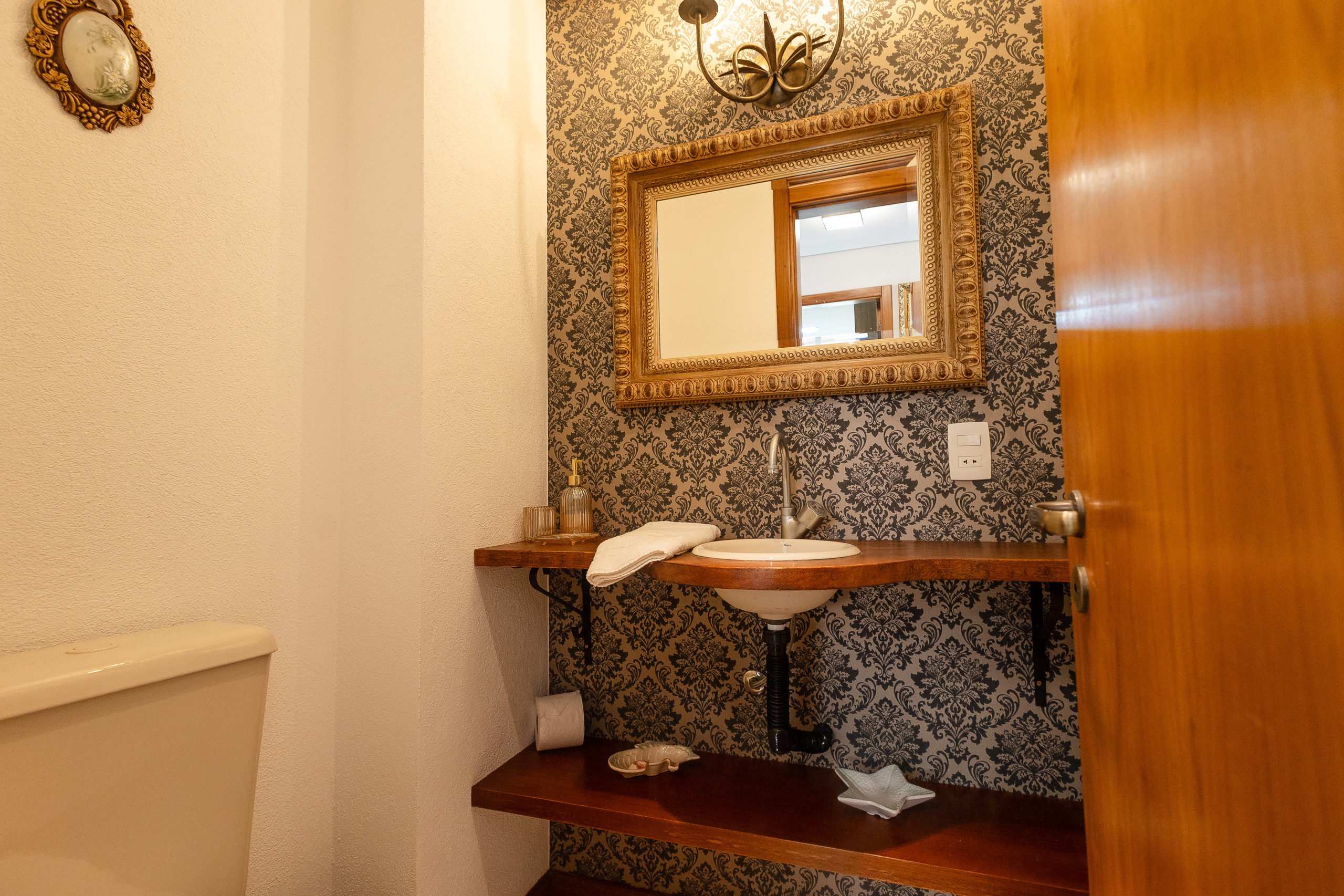 Com dois banheiros - sendo um completo e um lavabo - o apartamento garante praticidade para todos os hóspedes. O PlayStation, o Wi-Fi de alta velocidade e a TV mantêm todos conectados e entretidos.