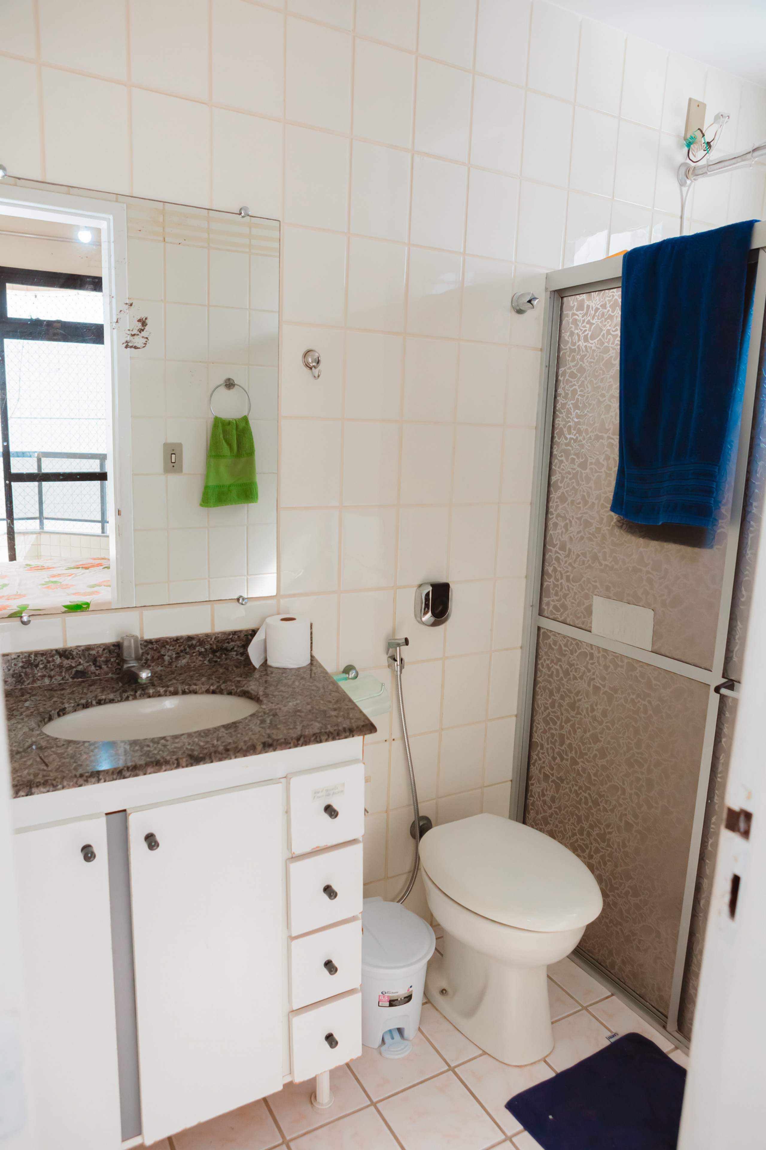 - Os banheiros possuem chuveiro elétrico e box de vidro/acrílico