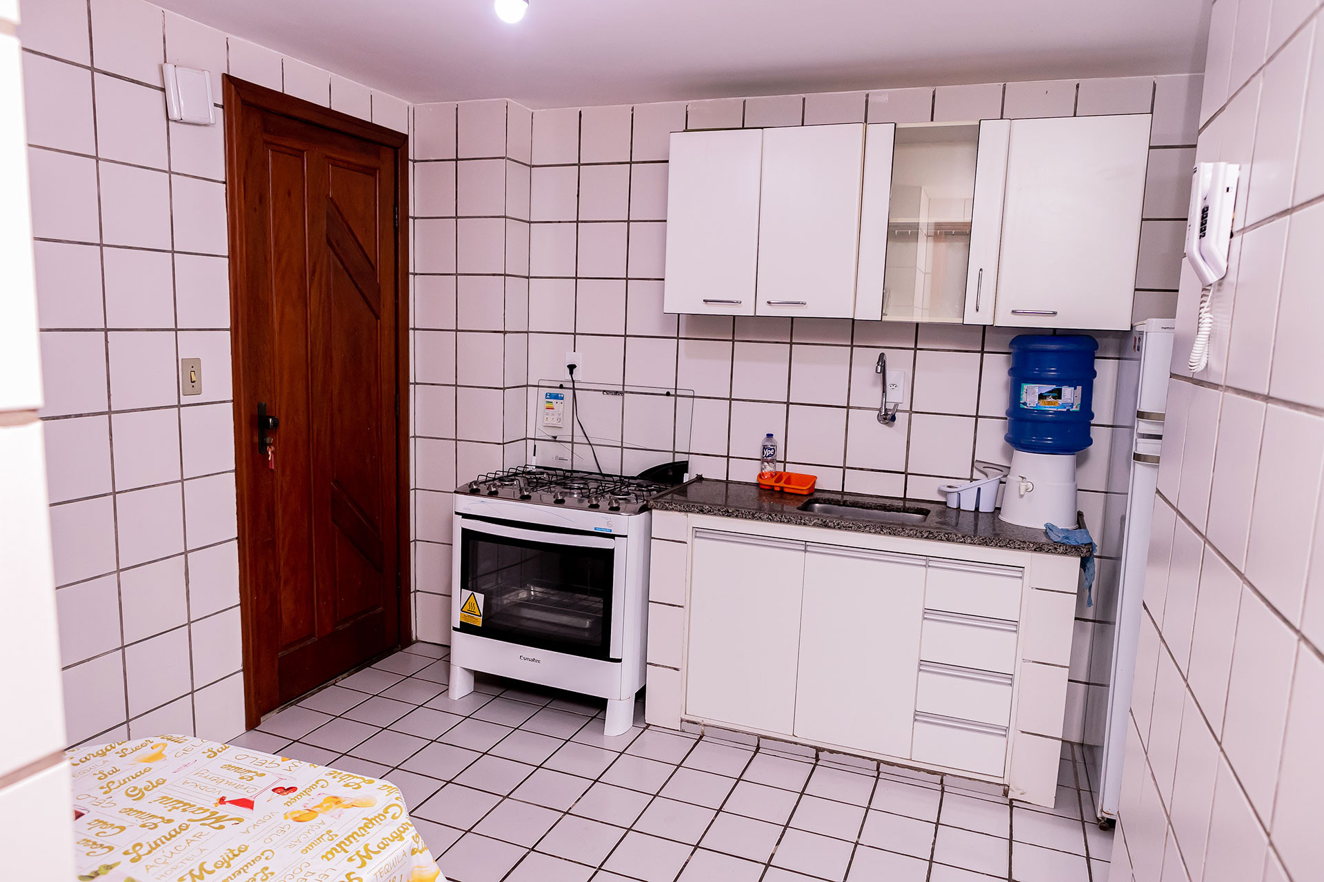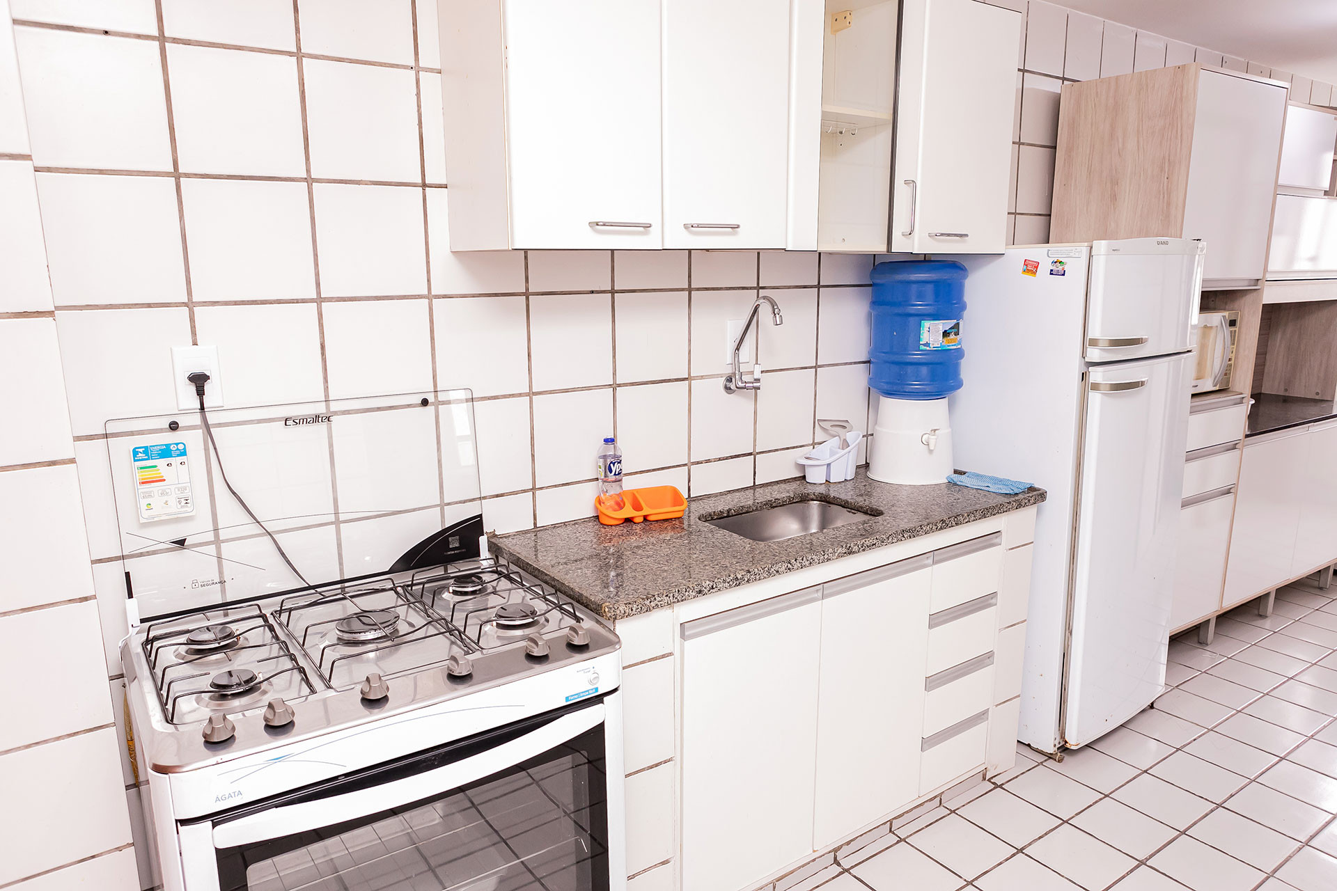 - A cozinha oferece diversos utensílios para preparar refeições, incluindo fogão, forno, geladeira, liquidificador e micro-ondas