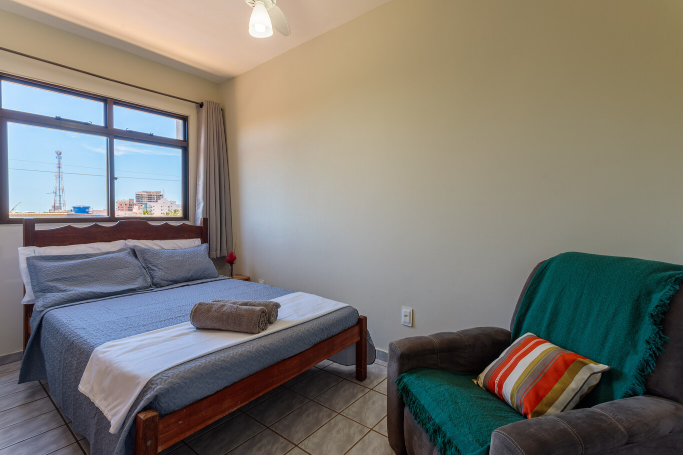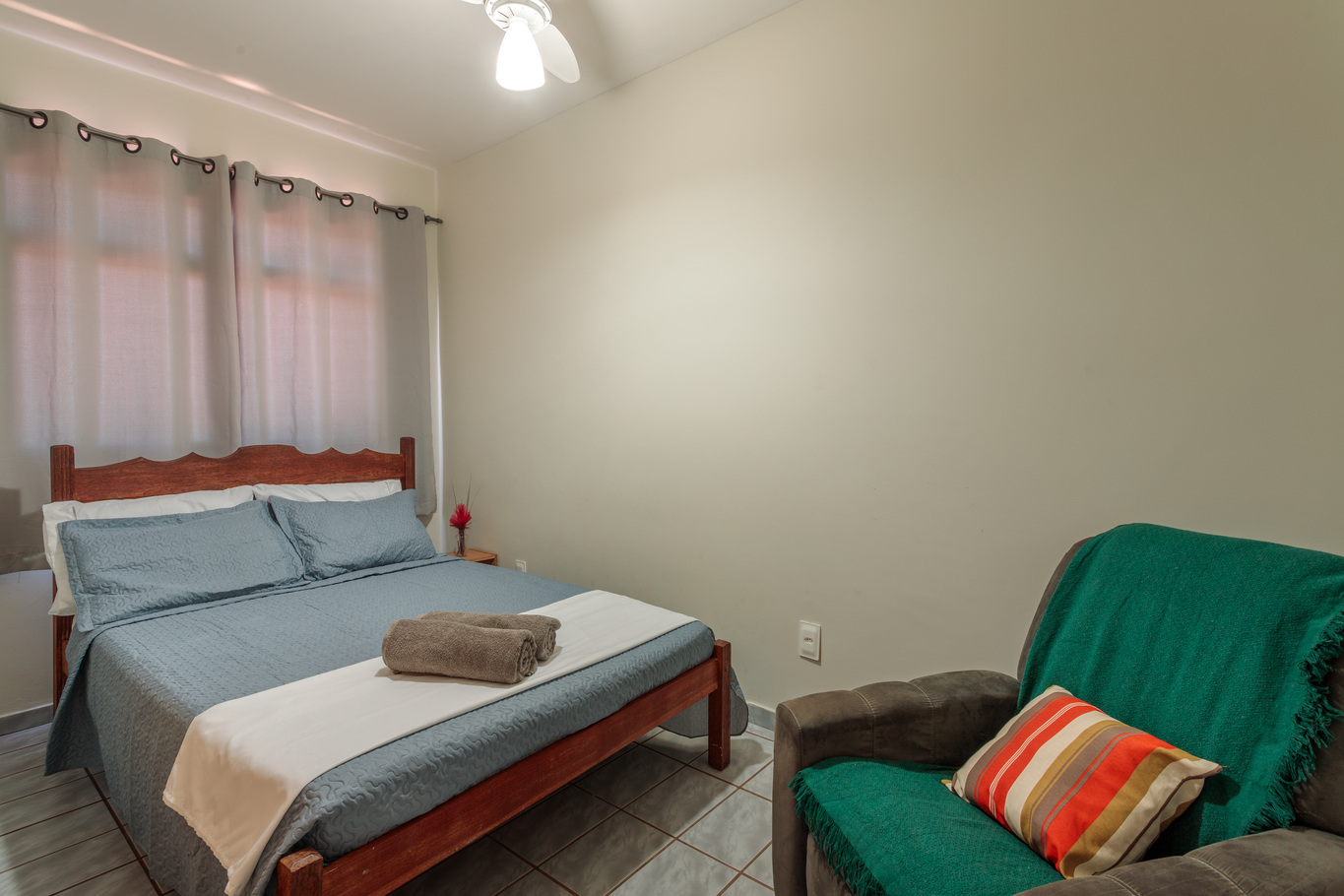 - Os dormitórios têm armário, edredom / cobertor e ventilador de teto