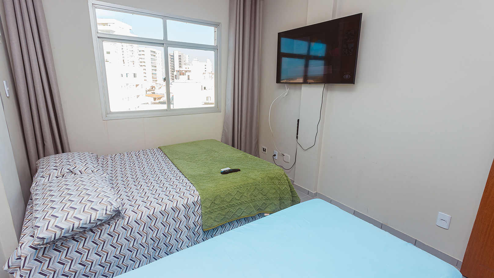 - Quarto 2: cama de casal, cama de solteiro, ar-condicionado e Smart TV 45”