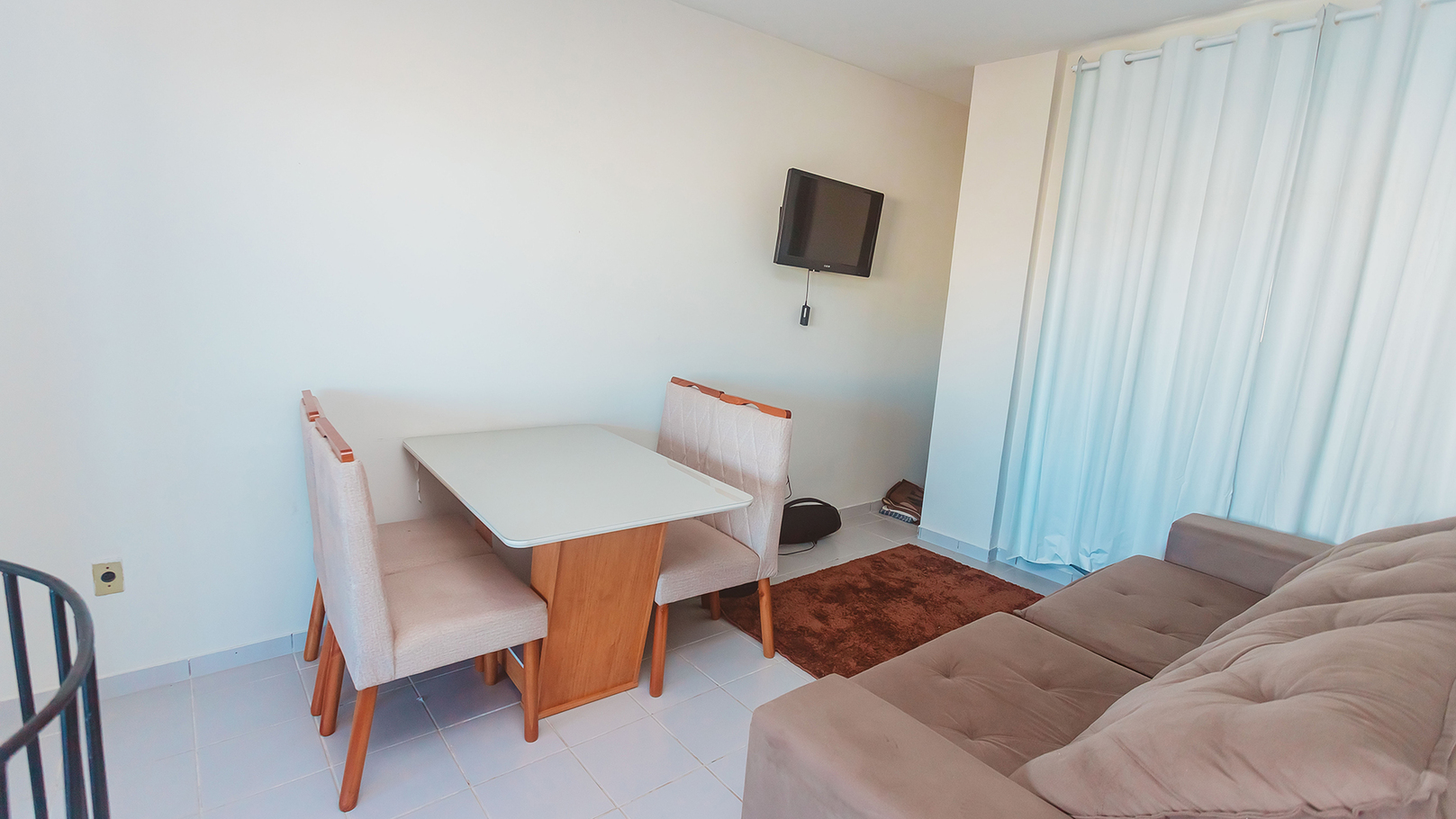 - Duas salas de estar com Smart TV, sofá-cama e ventiladores. A do 2º andar possui mesa de jantar