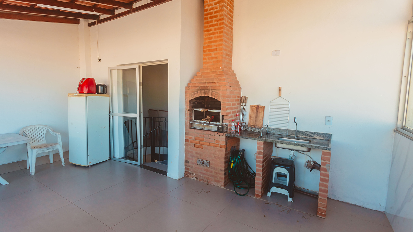 - Área gourmet no 2º andar com churrasqueira, pia, geladeira e itens para churrasco