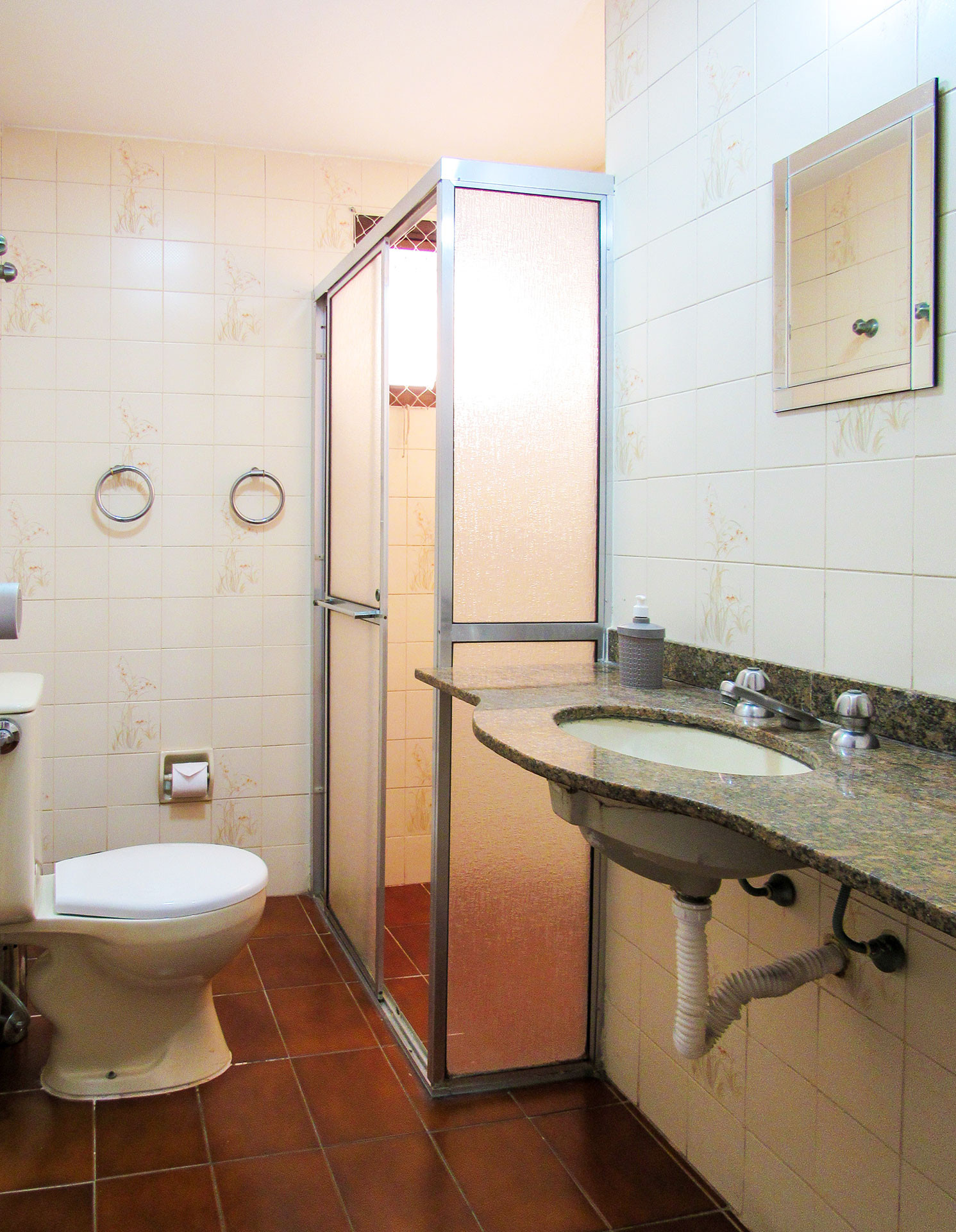 - Banheiros equipados com chuveiro a gás e box de acrílico