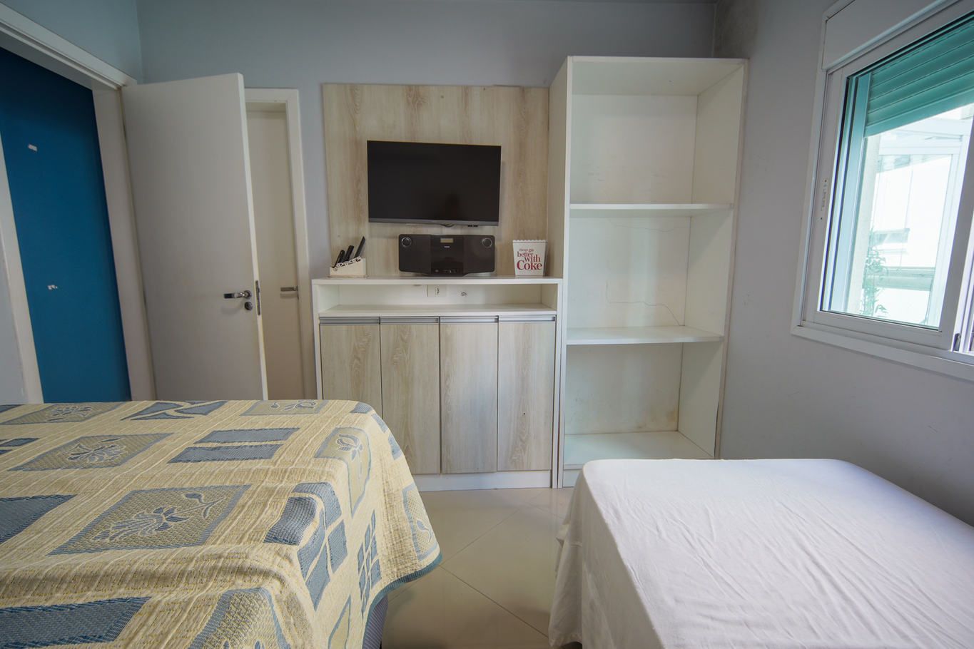 - Suíte 2: 1 cama de casal, 1 cama de solteiro, ar-condicionado, armário, edredom/cobertor e protetor de colchão
