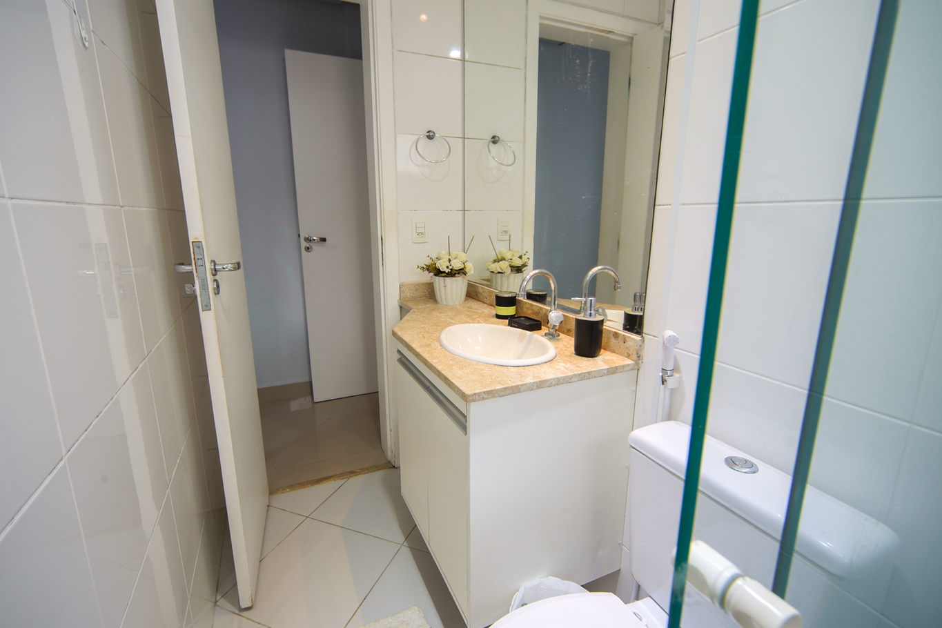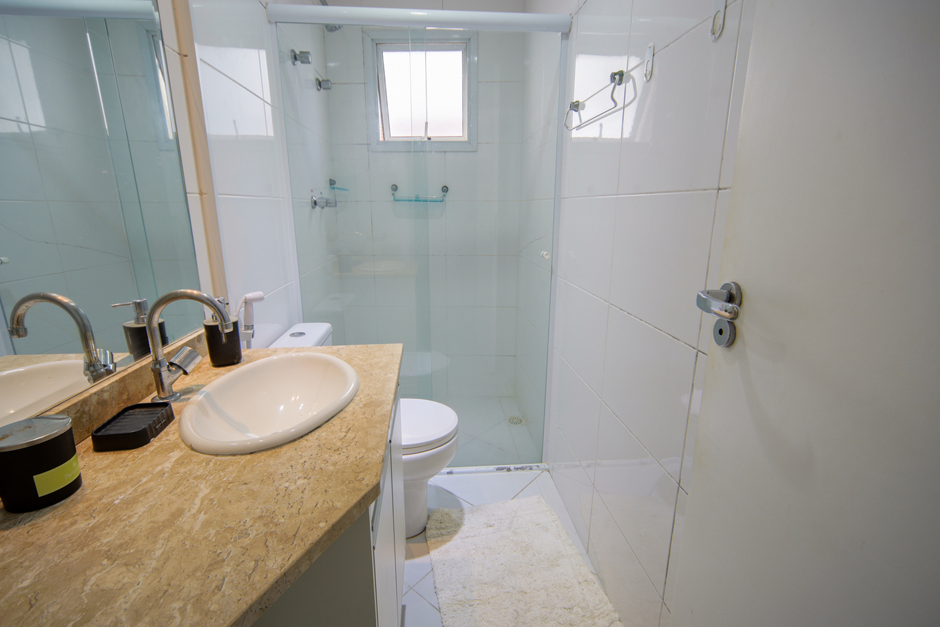 - 2 Banheiros, sendo 1 em cada quarto. Ambos com chuveiro a gás e box de vidro/acrílico