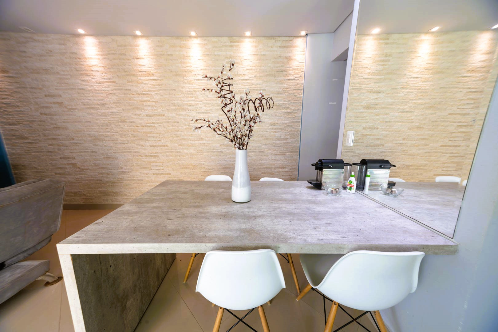 - Cozinha completa com pratos, copos, talheres, panelas, cafeteira Nespresso, freezer, fritadeira, fogão, forno, geladeira, liquidificador, microondas, torradeira e utensílios variados(exceto óleo e sal)
