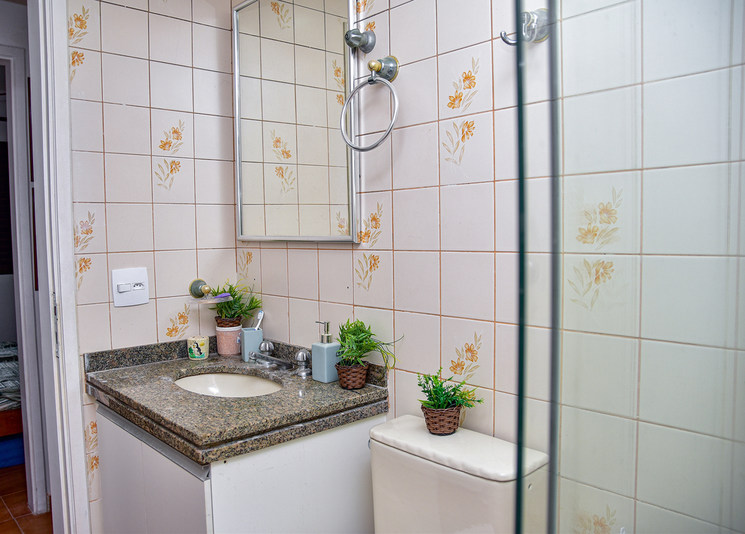 - O banheiro possui chuveiro a gás e box de vidro/acrílico