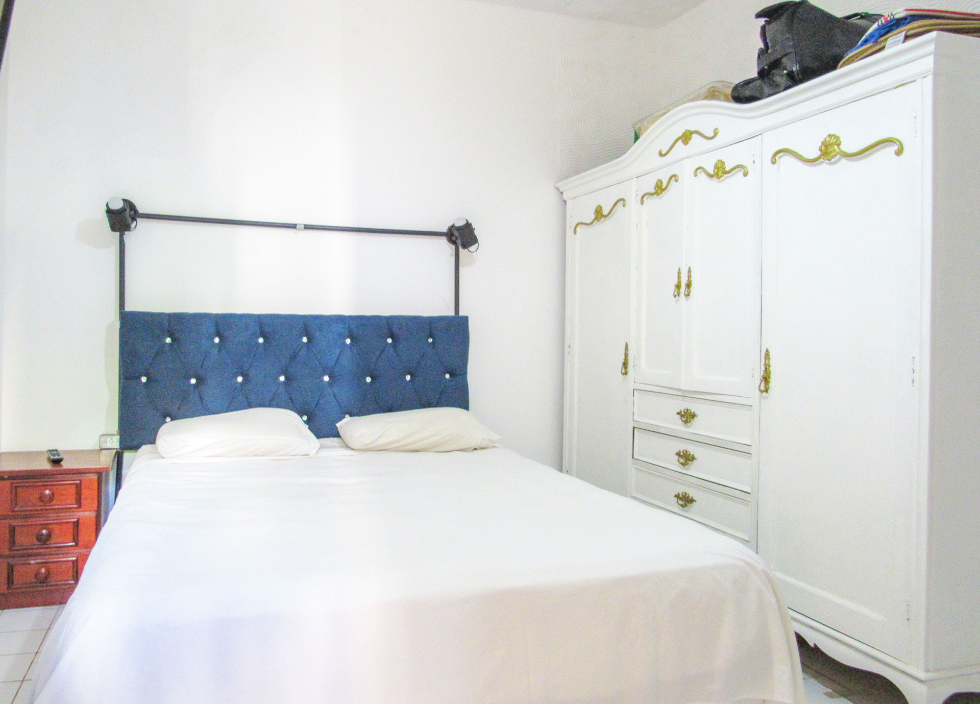 - Os quartos estão equipados com uma cama de casal (cada), além de guarda-roupas, protetor de colchão e ventilador de teto