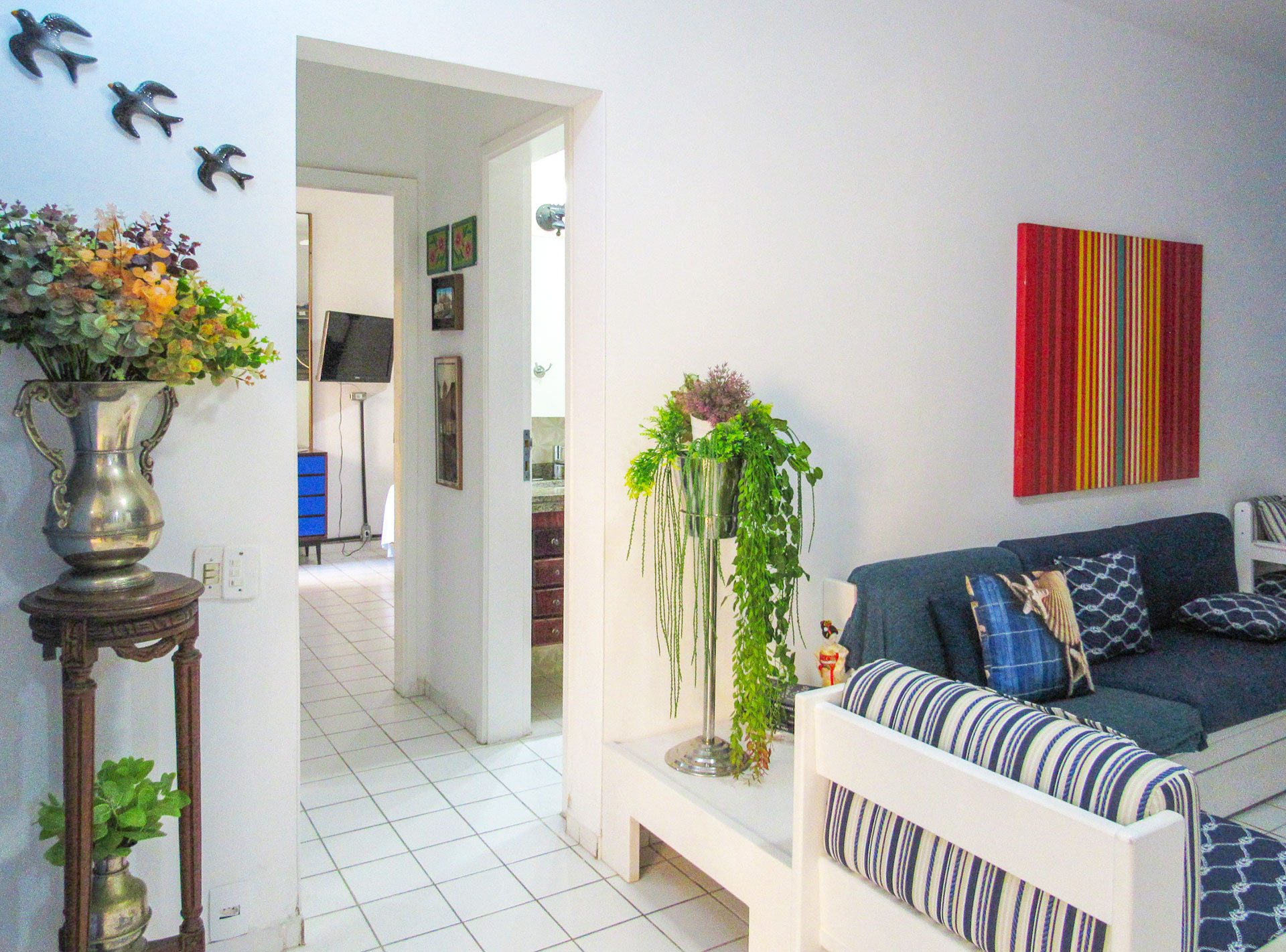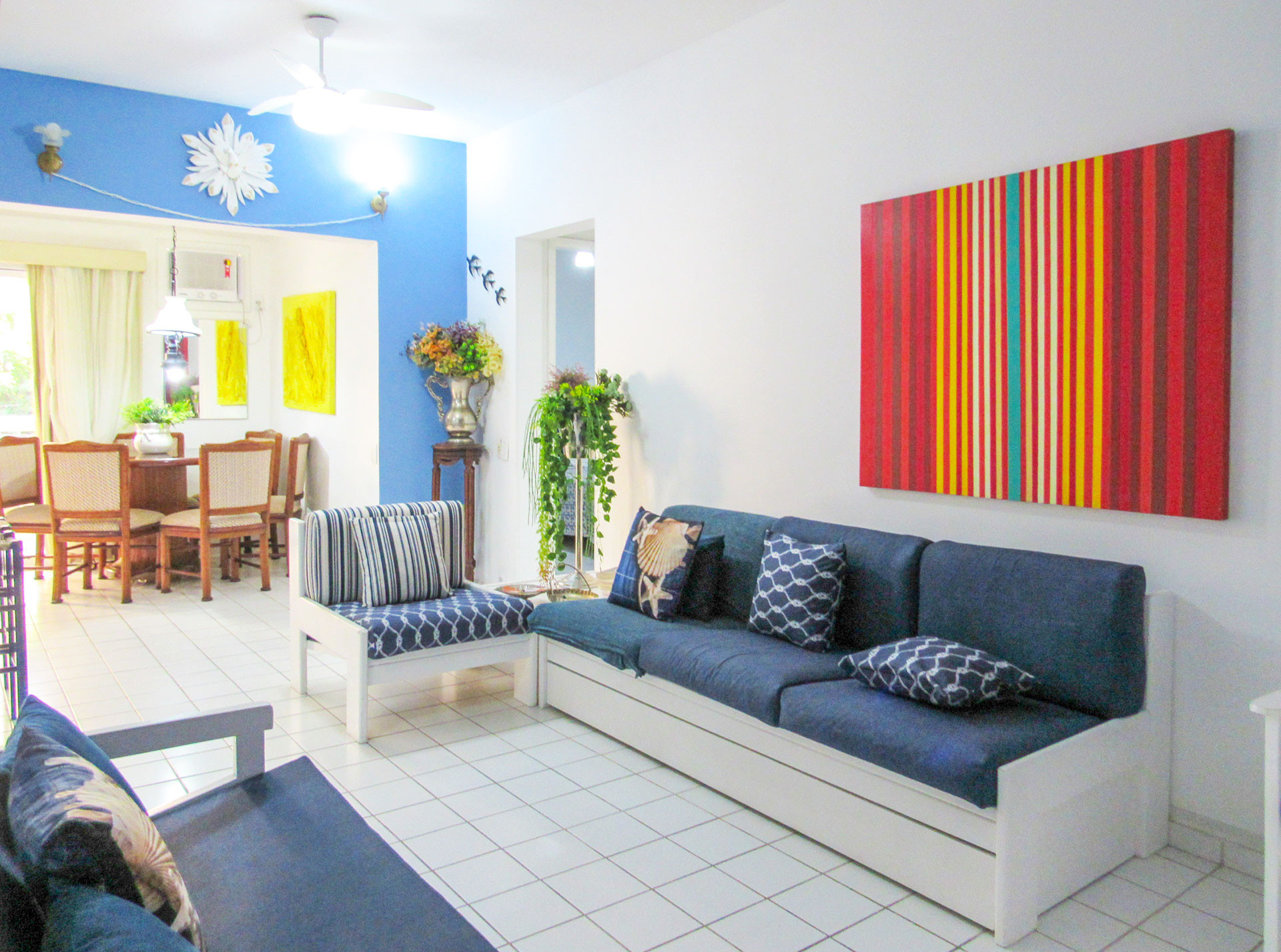 - Dois sofás aconchegantes, sendo um sofá-cama