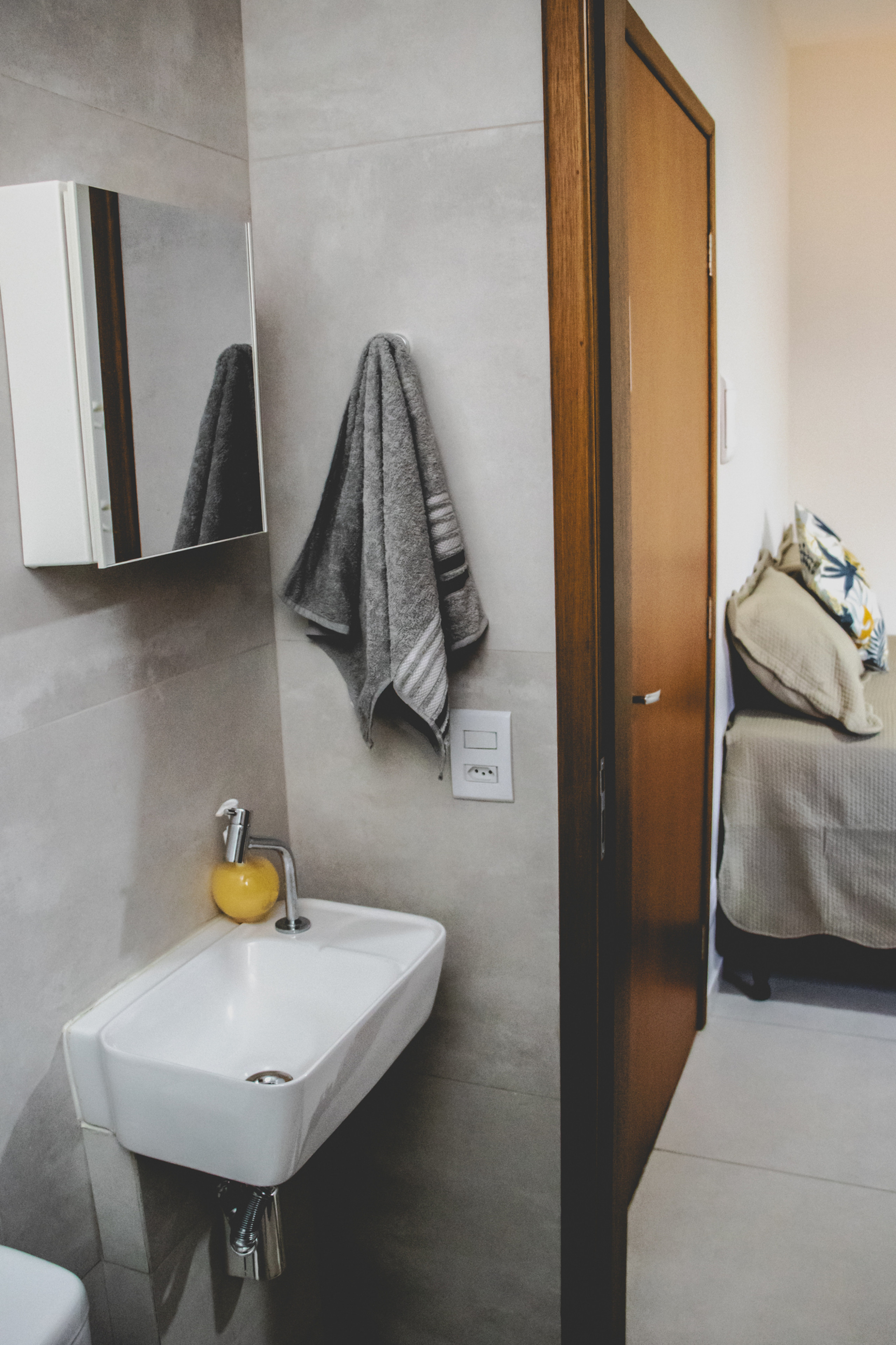 - O banheiro possui chuveiro elétrico e box de vidro