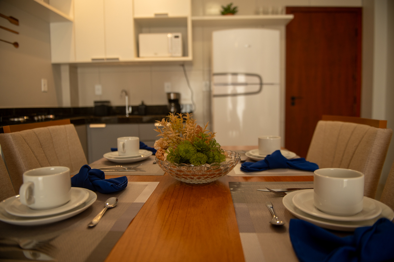 - Cozinha equipada: geladeira, fogão, forno, microondas, cafeteira e utensílios completos(exceto óleo e sal)