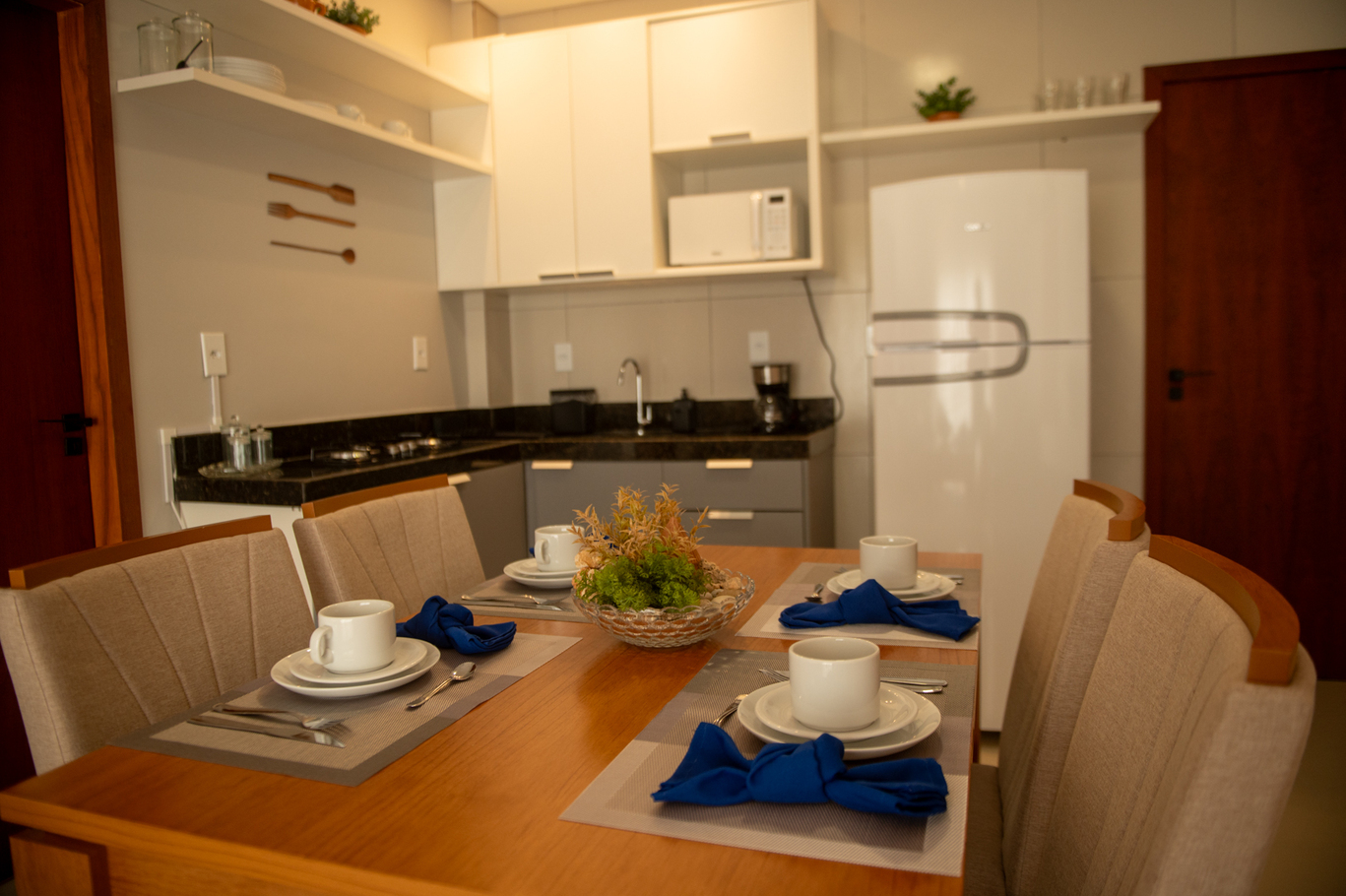 - Cozinha equipada: geladeira, fogão, forno, microondas, cafeteira e utensílios completos(exceto óleo e sal)