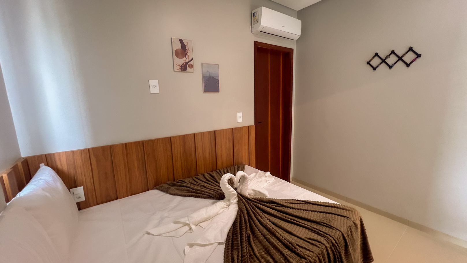 - Quarto 1(suíte): cama de casal, ar-condicionado e banheiro privativo com box de vidro