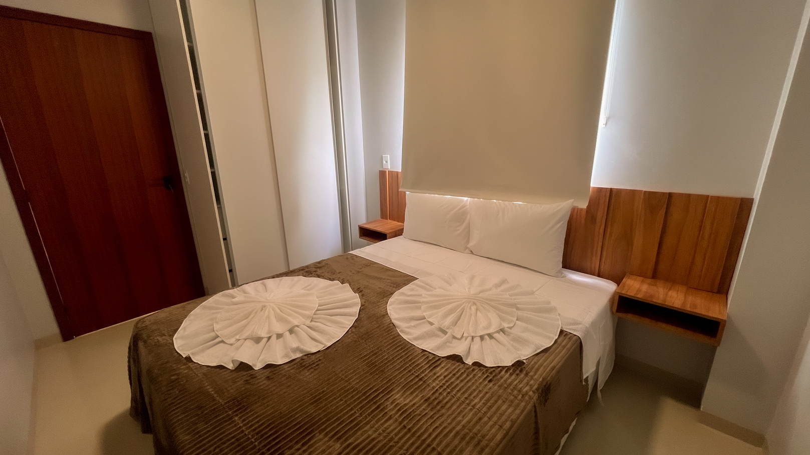 - Quarto 1(suíte): cama de casal, ar-condicionado e banheiro privativo com box de vidro