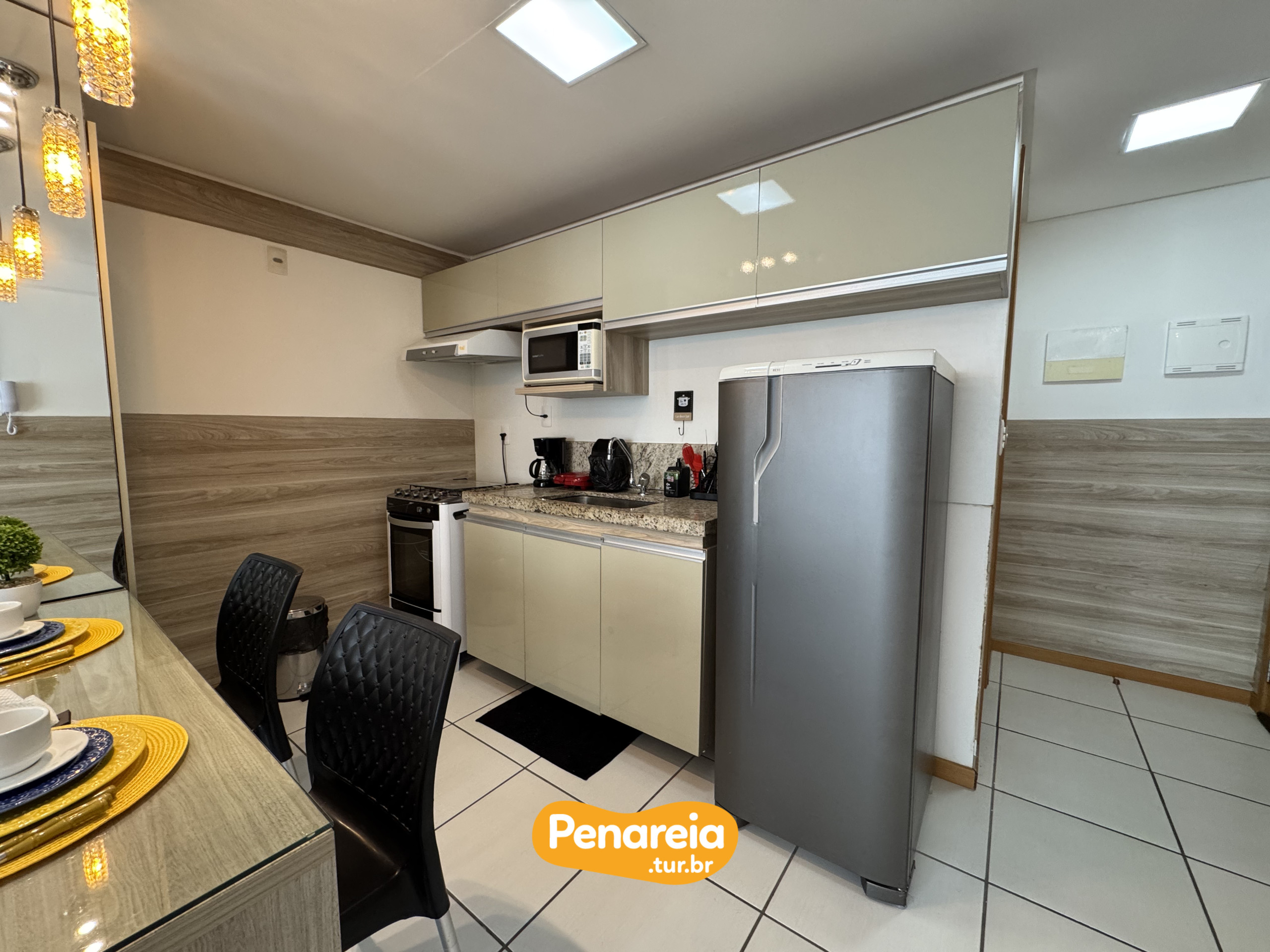 A cozinha americana totalmente equipada é um verdadeiro destaque, com todos os eletrodomésticos necessários para preparar refeições deliciosas. Desfrute de geladeira, forno, micro-ondas, máquina de café, torradeira e até um espremedor de frutas para momentos especiais.