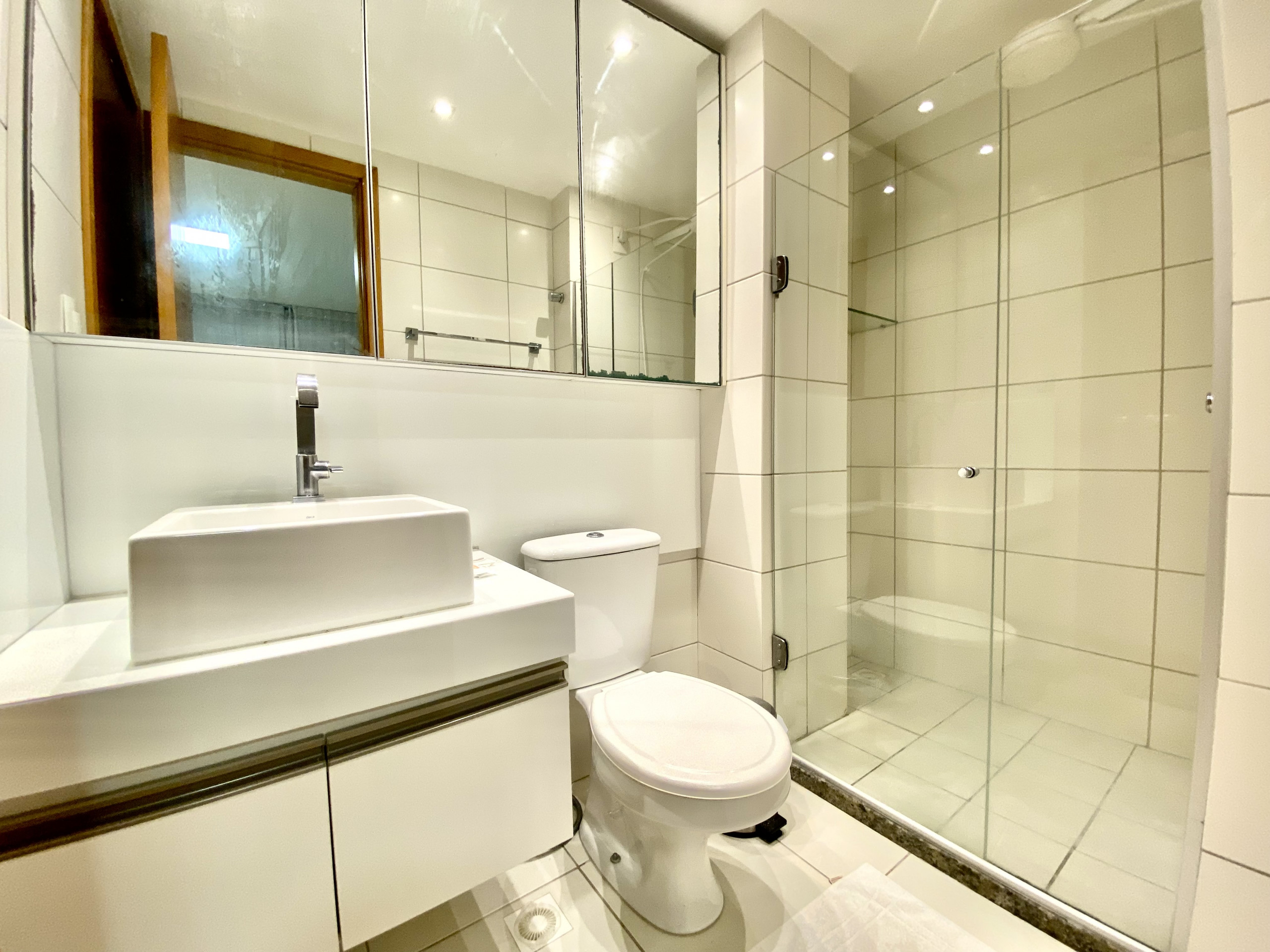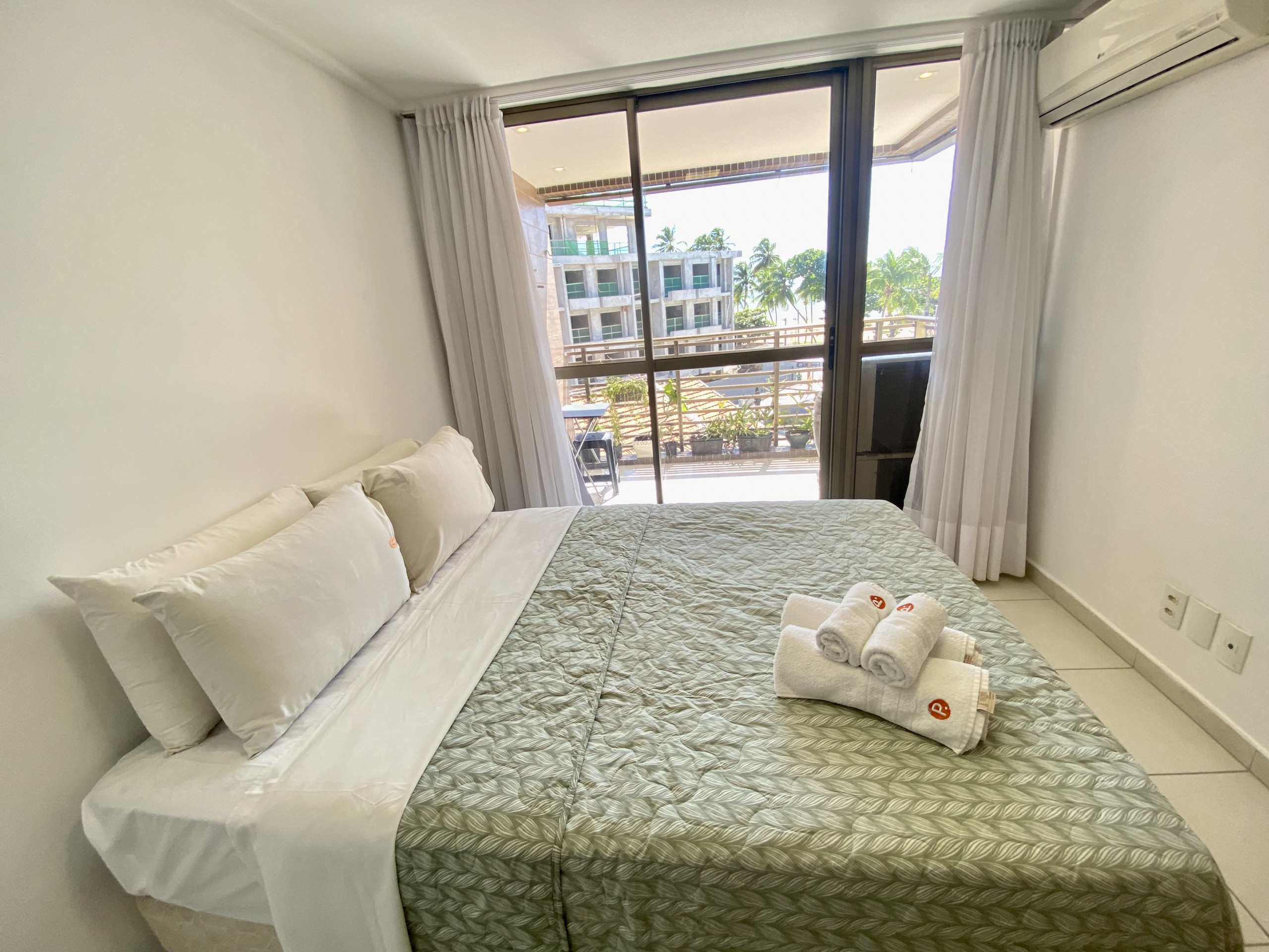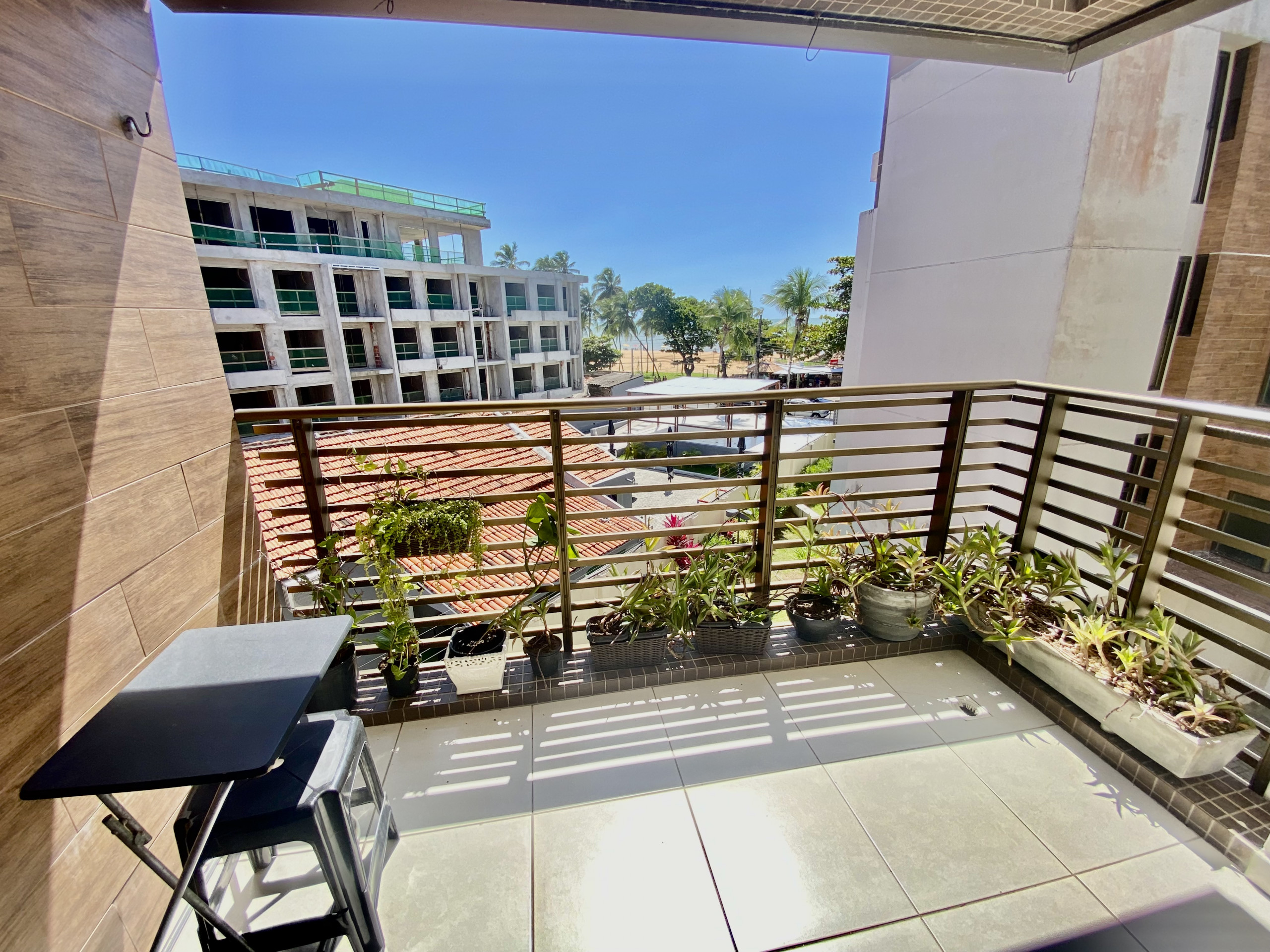 O apartamento conta com um belo balcão, onde você pode apreciar uma xícara de café pela manhã.