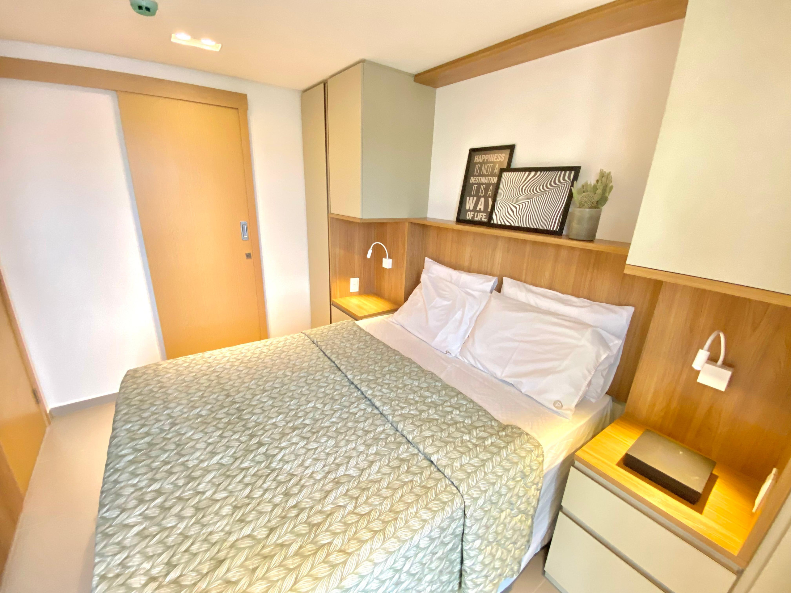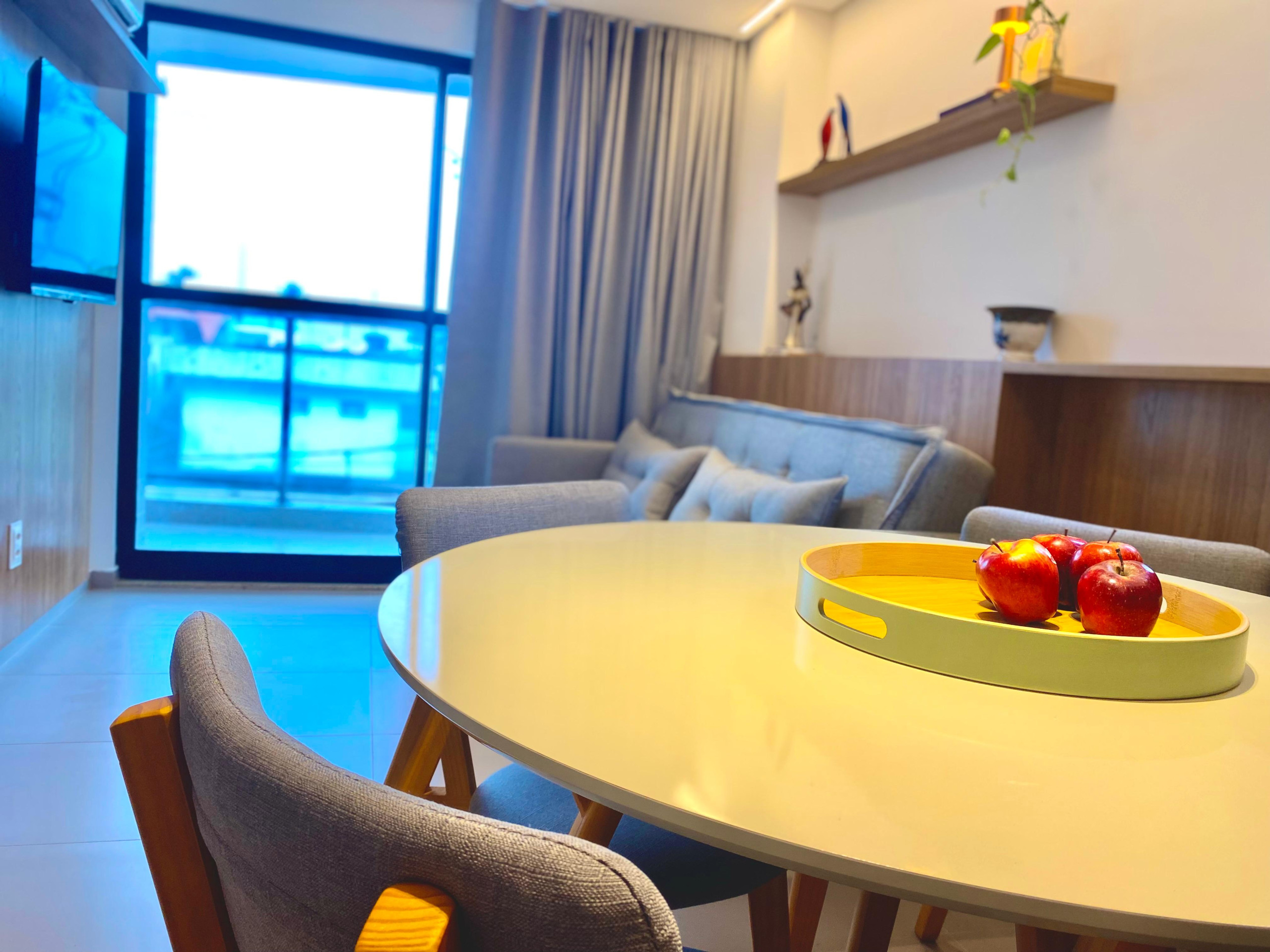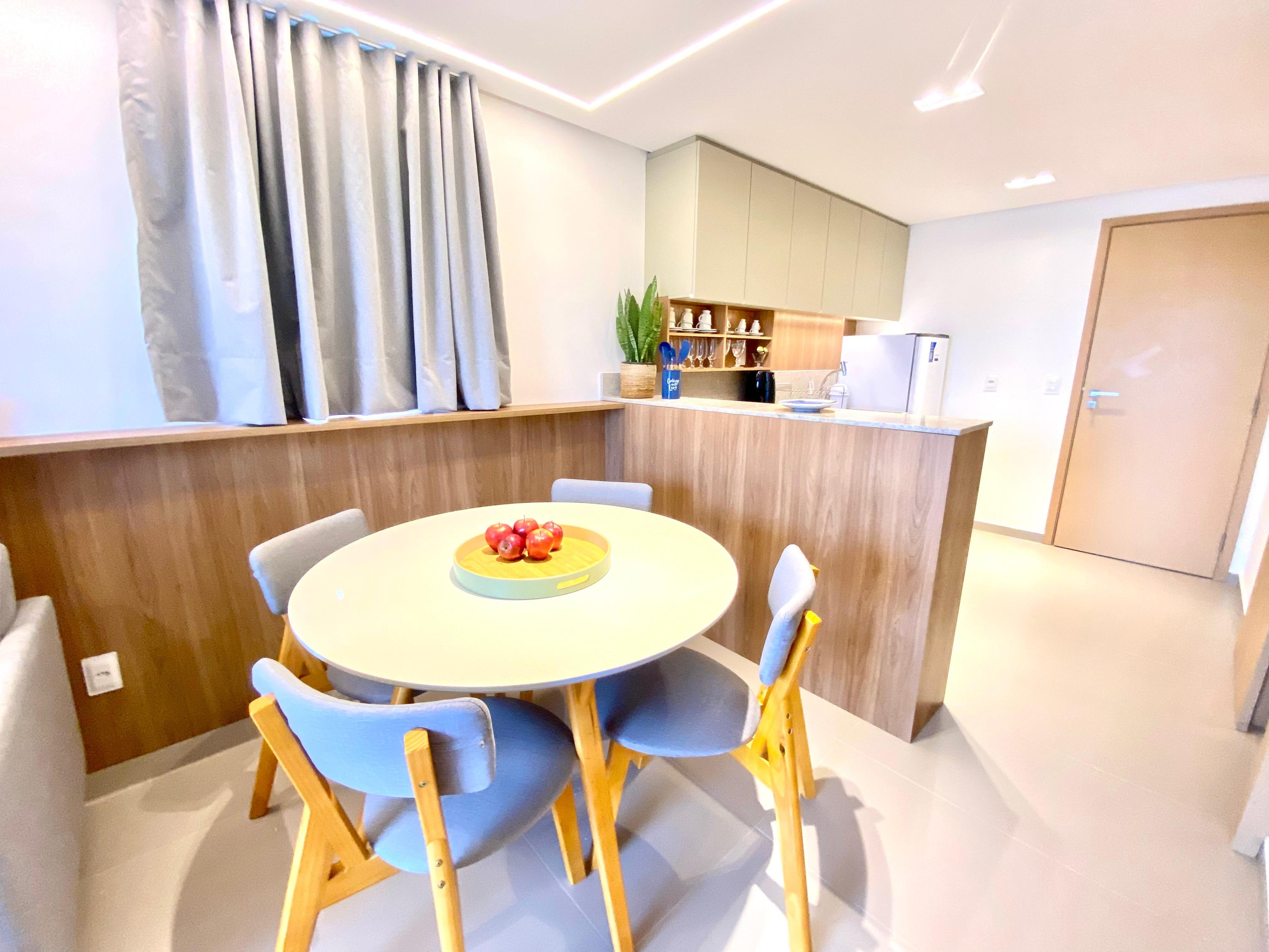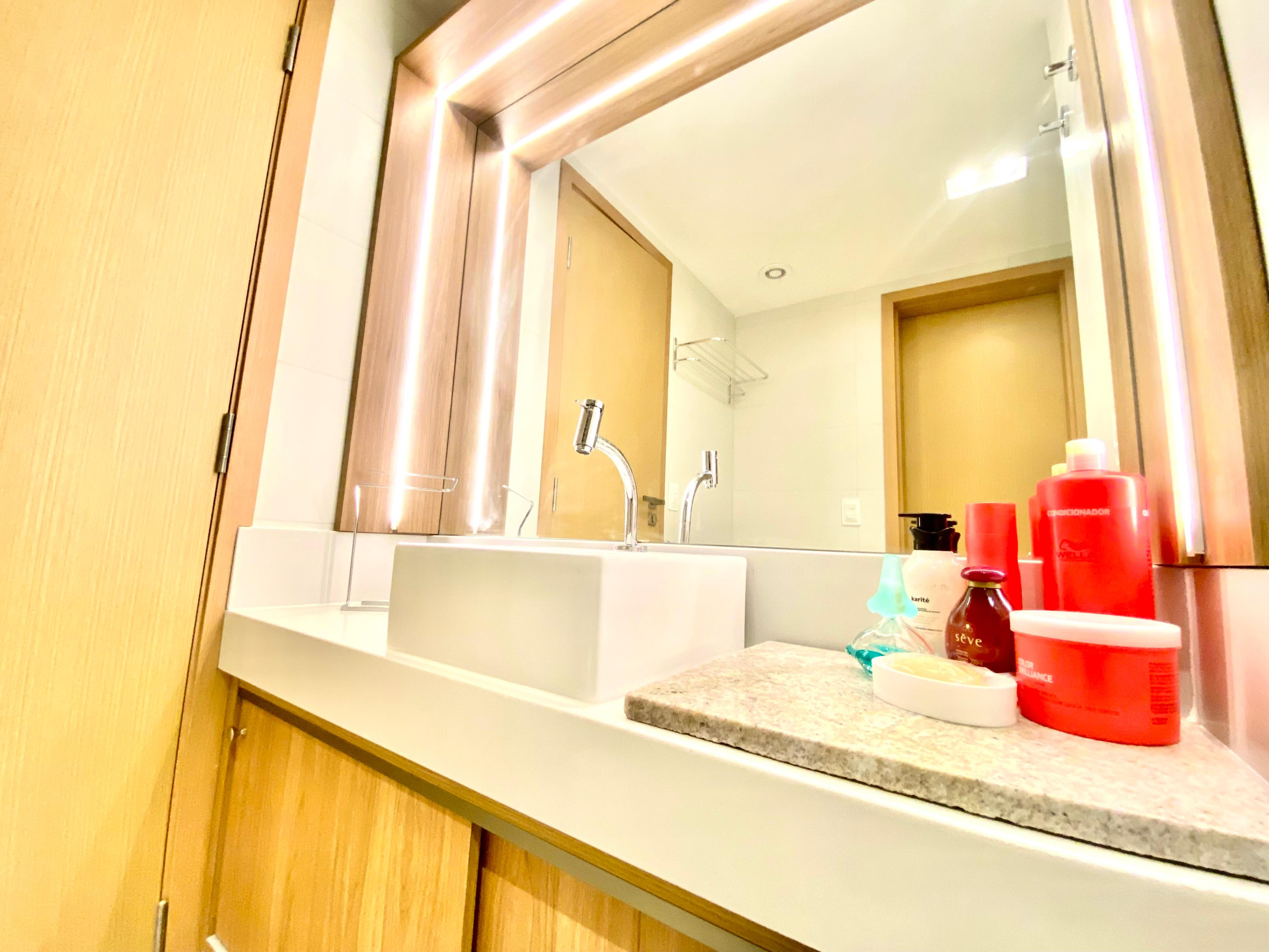 Dispõe de elevador, jardim, mobiliário de jardim, ferro de passar, acesso à internet (wifi), balcão, academia, ar-condicionado, piscina comunitária, garagem no mesmo edifício, 3 Televisores.