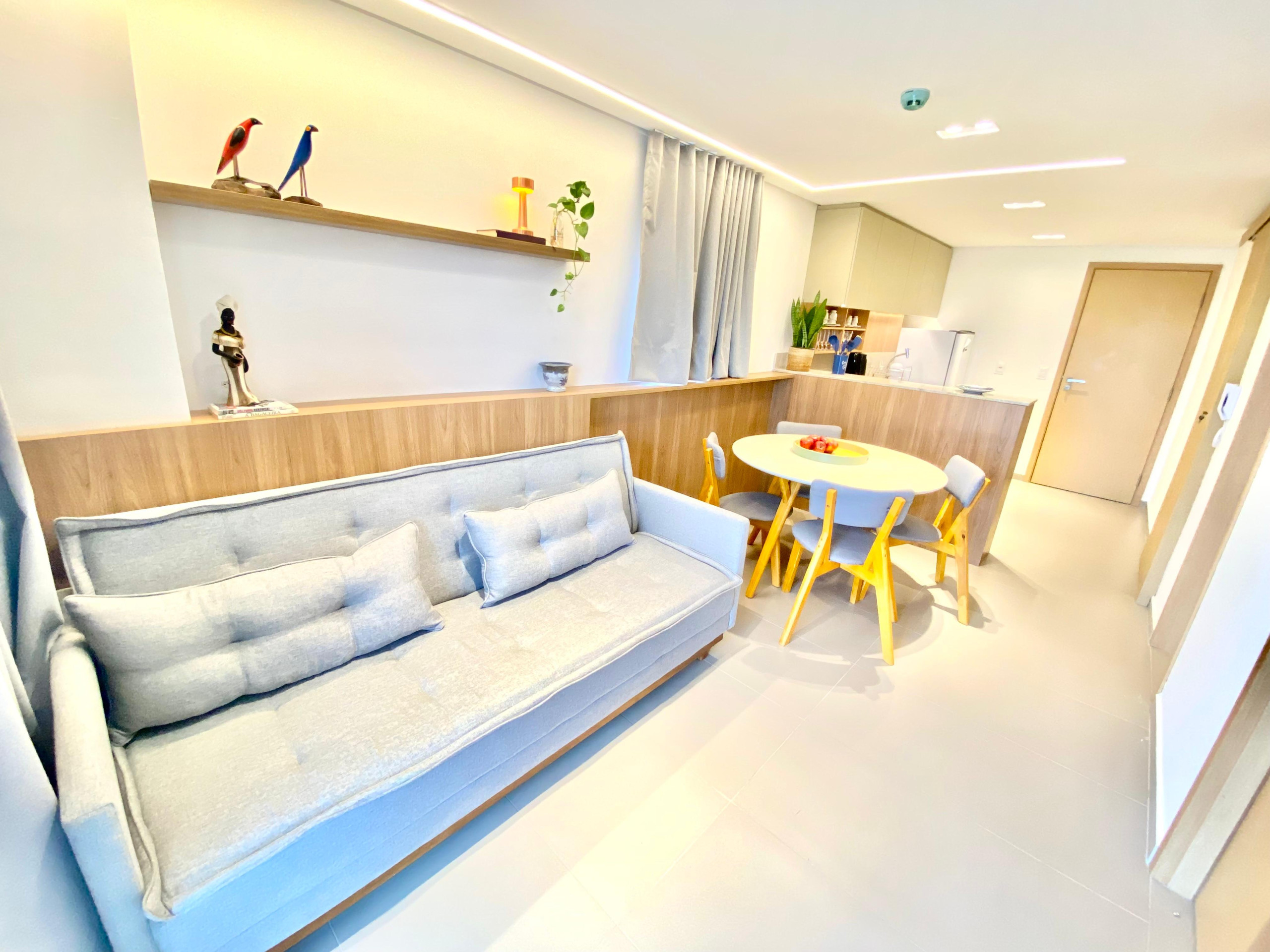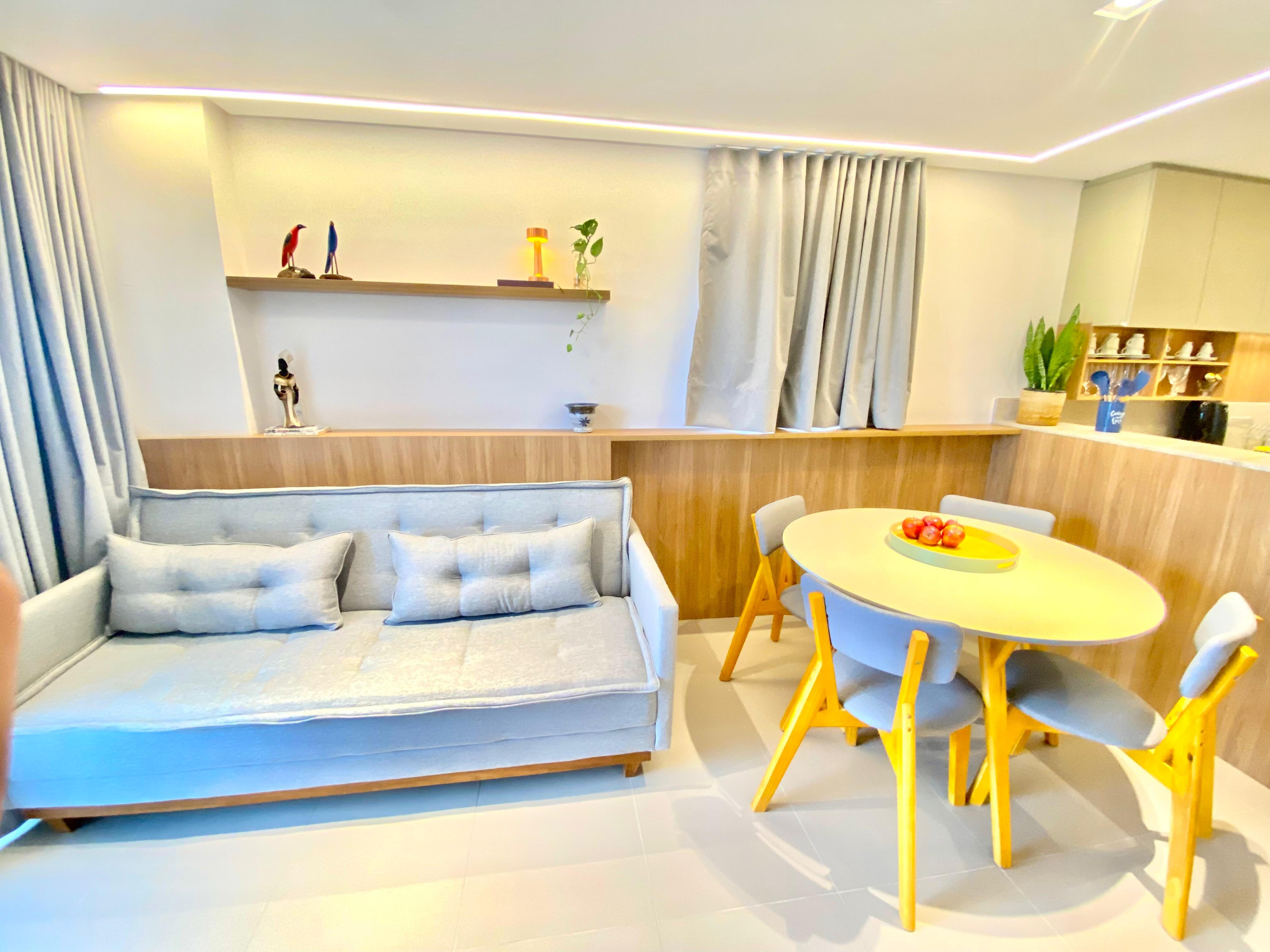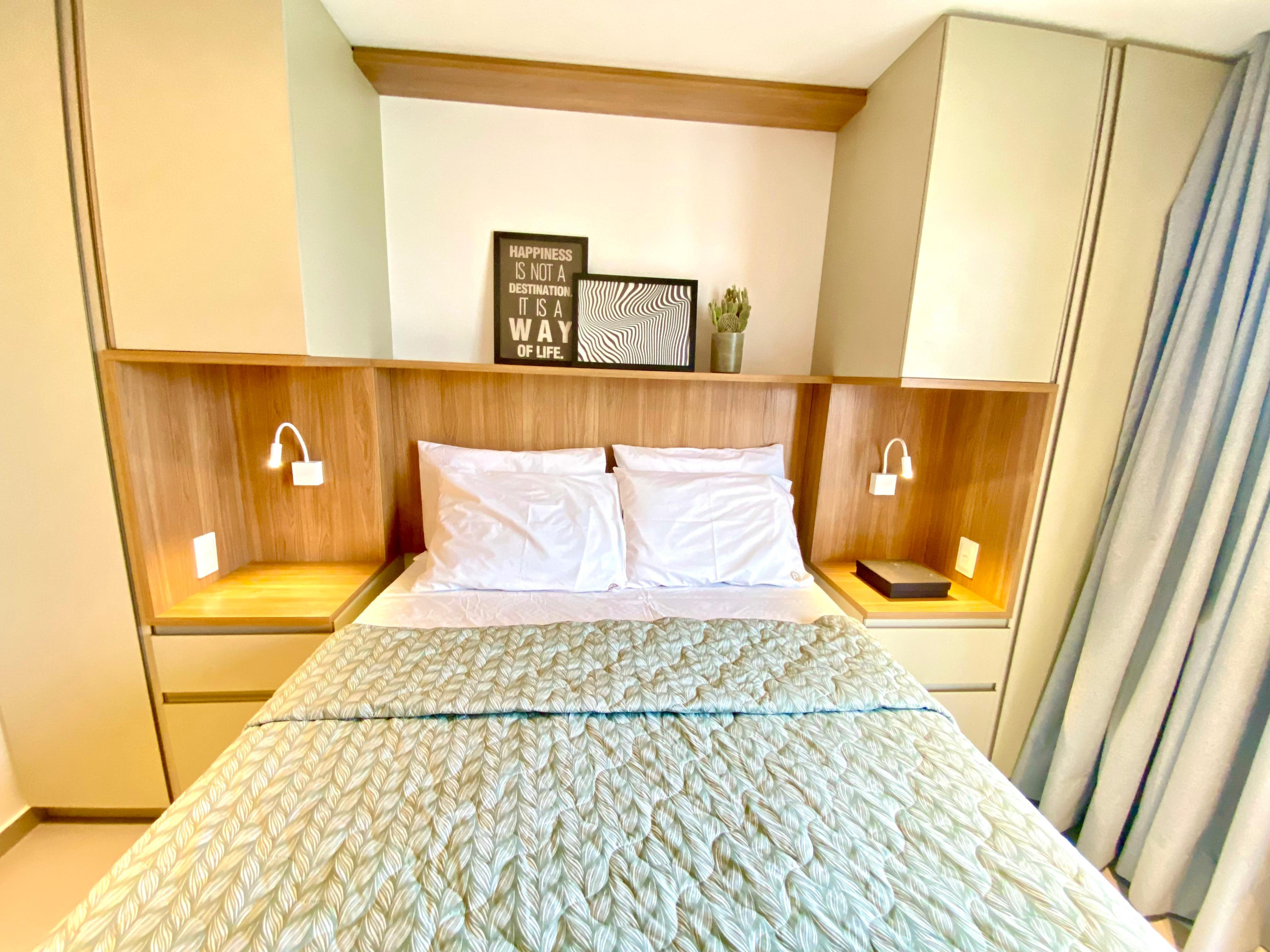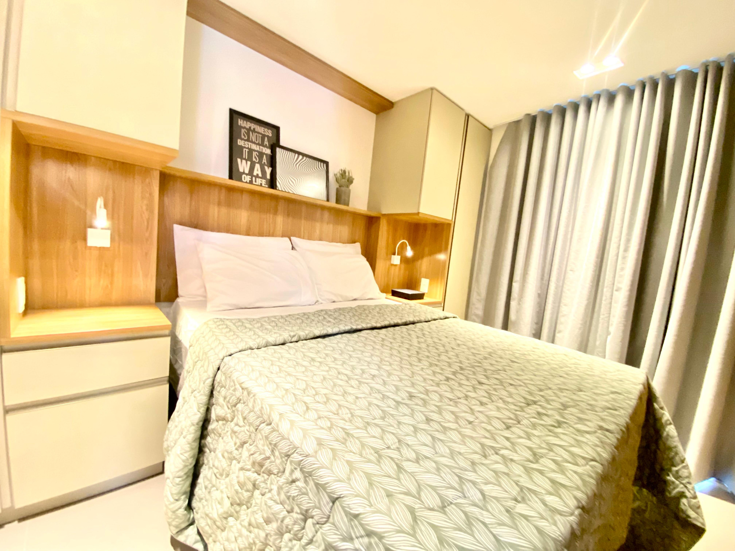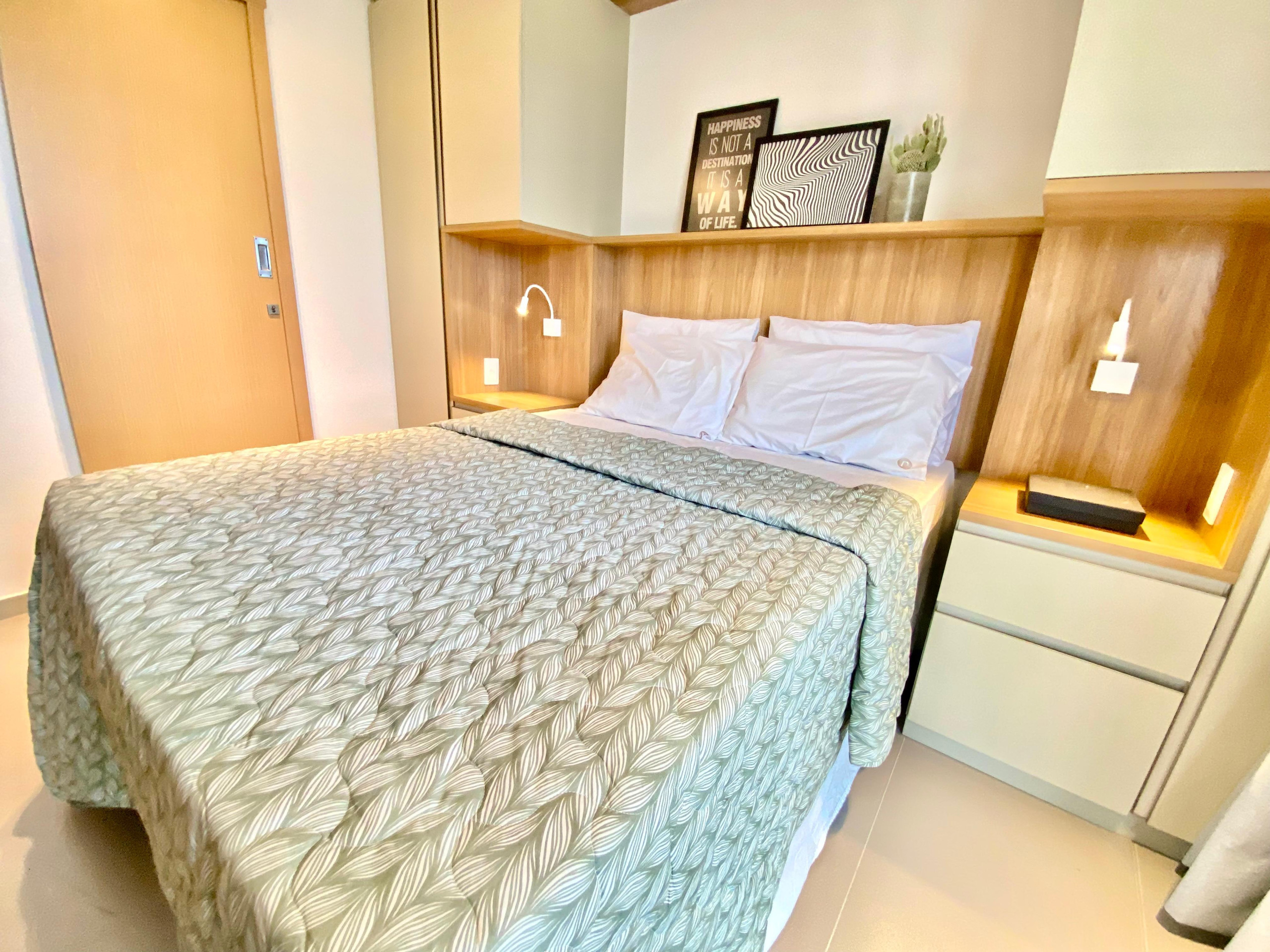 Dispõe de elevador, jardim, mobiliário de jardim, ferro de passar, acesso à internet (wifi), balcão, academia, ar-condicionado, piscina comunitária, garagem no mesmo edifício, 3 Televisores.