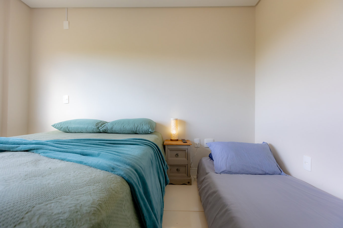 - Quarto 2: Equipado com 2 colchões extra de solteiro e 1 cama queen size, armário, edredom/cobertor e protetor de colchão
